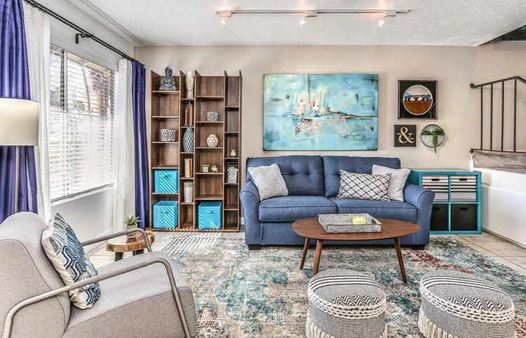 Washable Area Rugs - Perfect for Living Room, Bedroom, Kids Room, Nursery - Stain & Water Resistant Non-Slip, Pet & Child Friendly, Vintage Tribal Area Rugs (Navy, 9' x 12')
