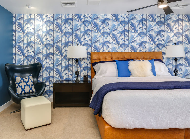 Flipside Blue Palm Leaves Peel and Stick Removable Wallpaper - Each Roll is 18 ft. Long x 18 in. Wide - Safe for Walls - Easy to Apply & Easy to Remove