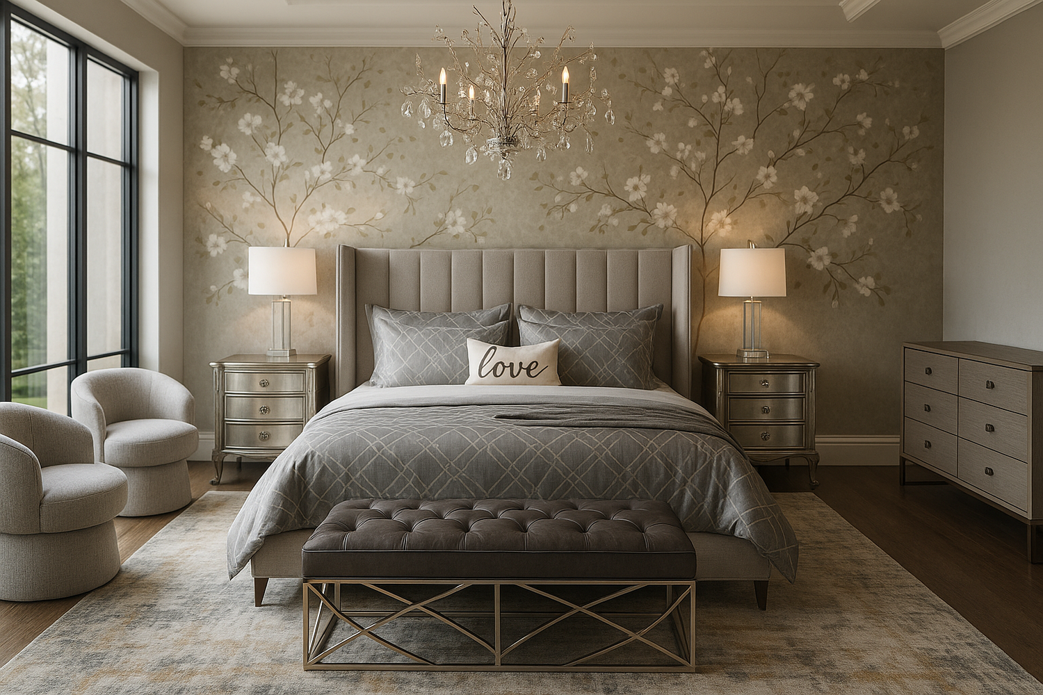 Drift into elegance every night with this timeless navy sanctuary—where plush textures,...