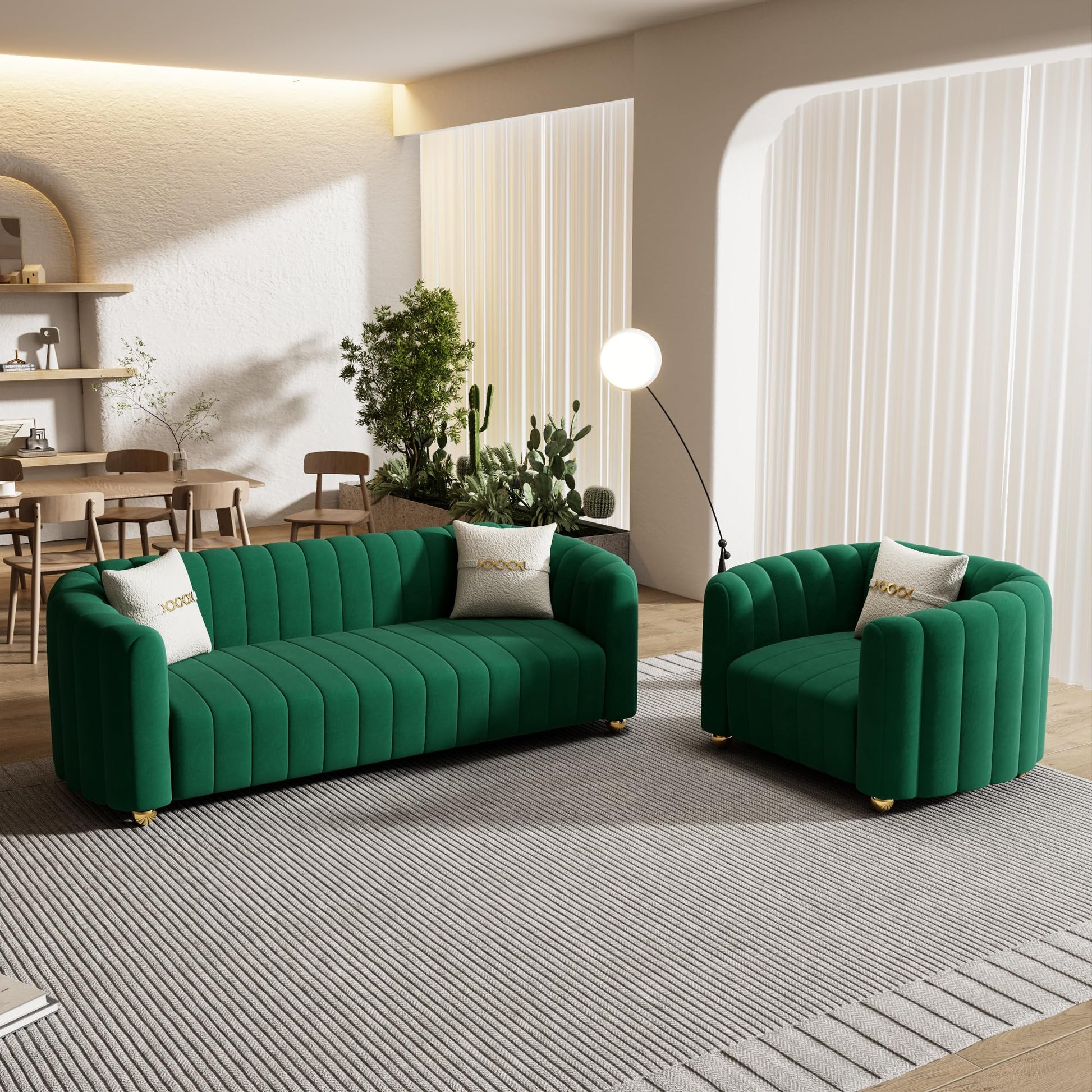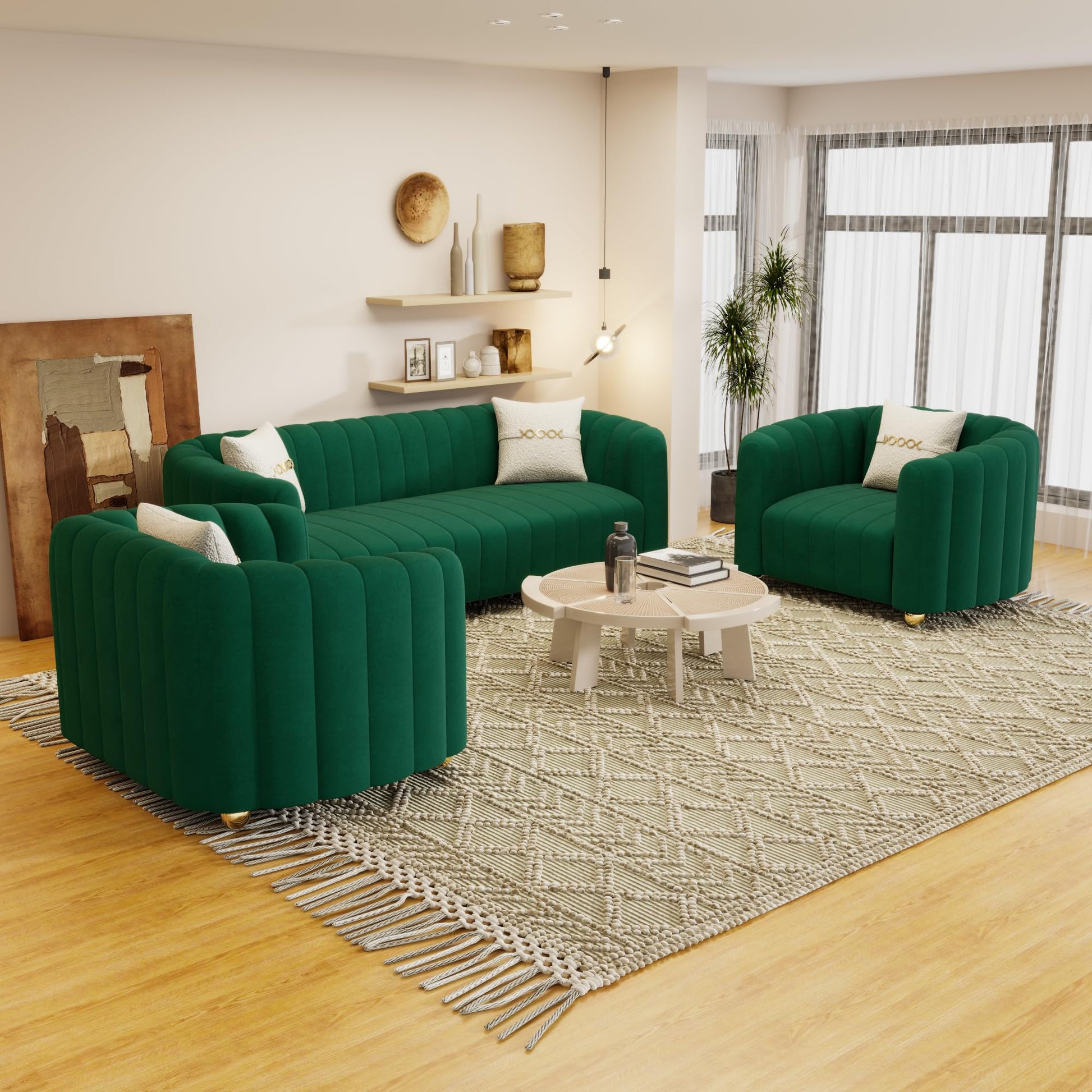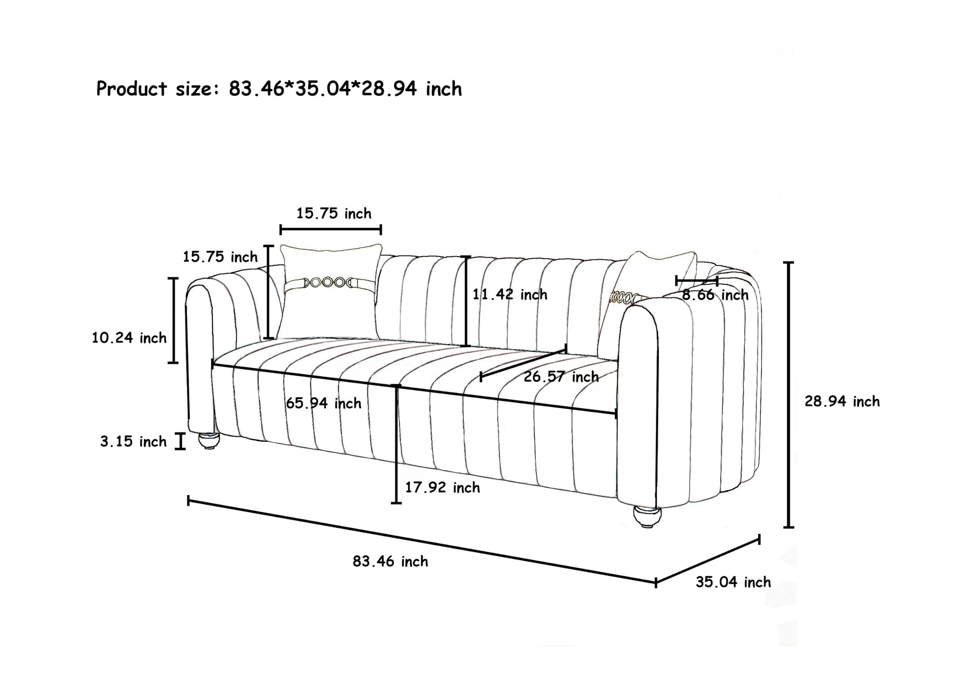 - Luxury Living Room Furniture Velvet Sofa Set: 3 Seater Sofa: 35.04"D x 83.46"W x 28.94"H; Armchair: 35.04"D x 42.13"W x 28.94"H. No pressure, No trouble---assemble your new Art Deco sofa quickly and easily