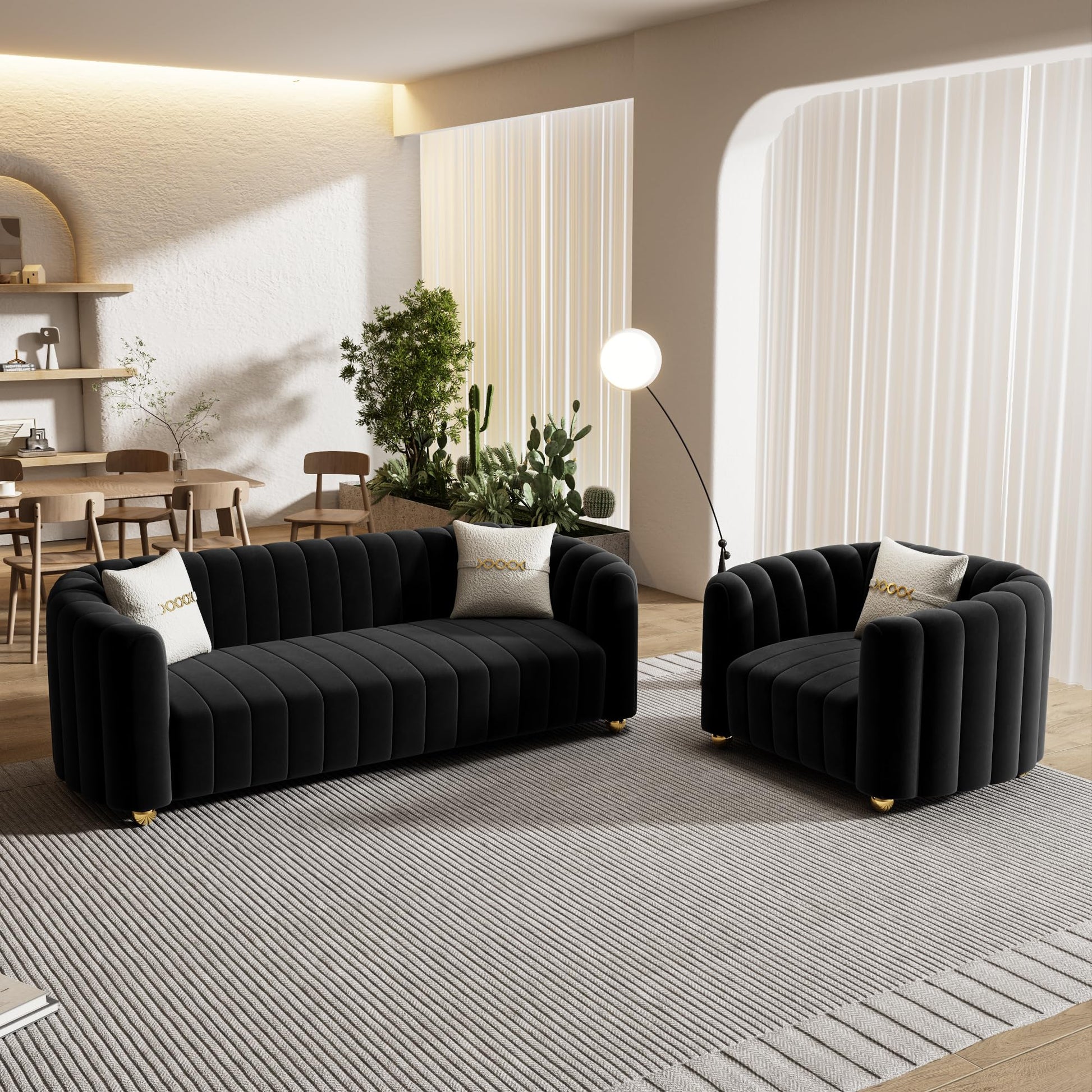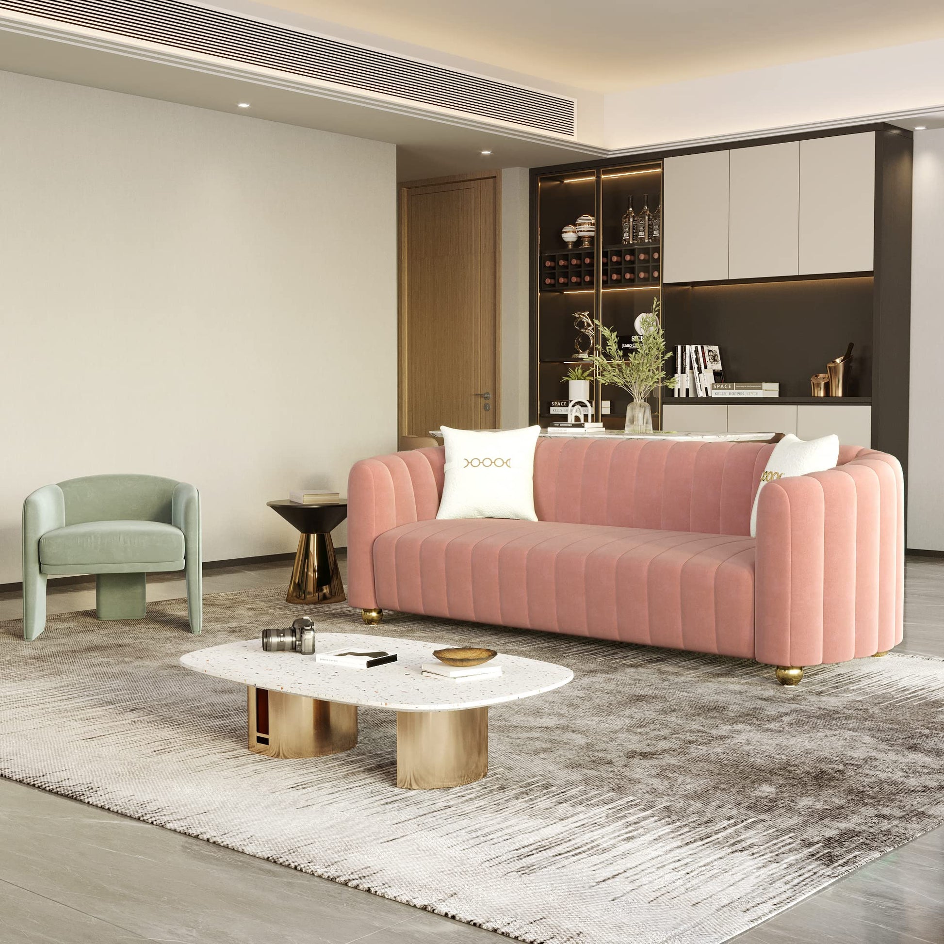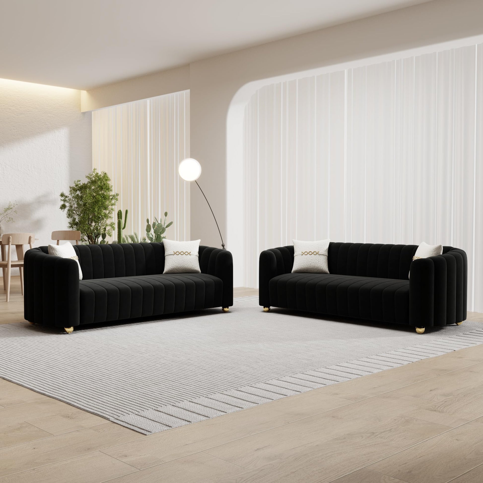 - Luxury Living Room Furniture Velvet Sofa Set: 3 Seater Sofa: 35.04"D x 83.46"W x 28.94"H; Armchair: 35.04"D x 42.13"W x 28.94"H. No pressure, No trouble---assemble your new Art Deco sofa quickly and easily