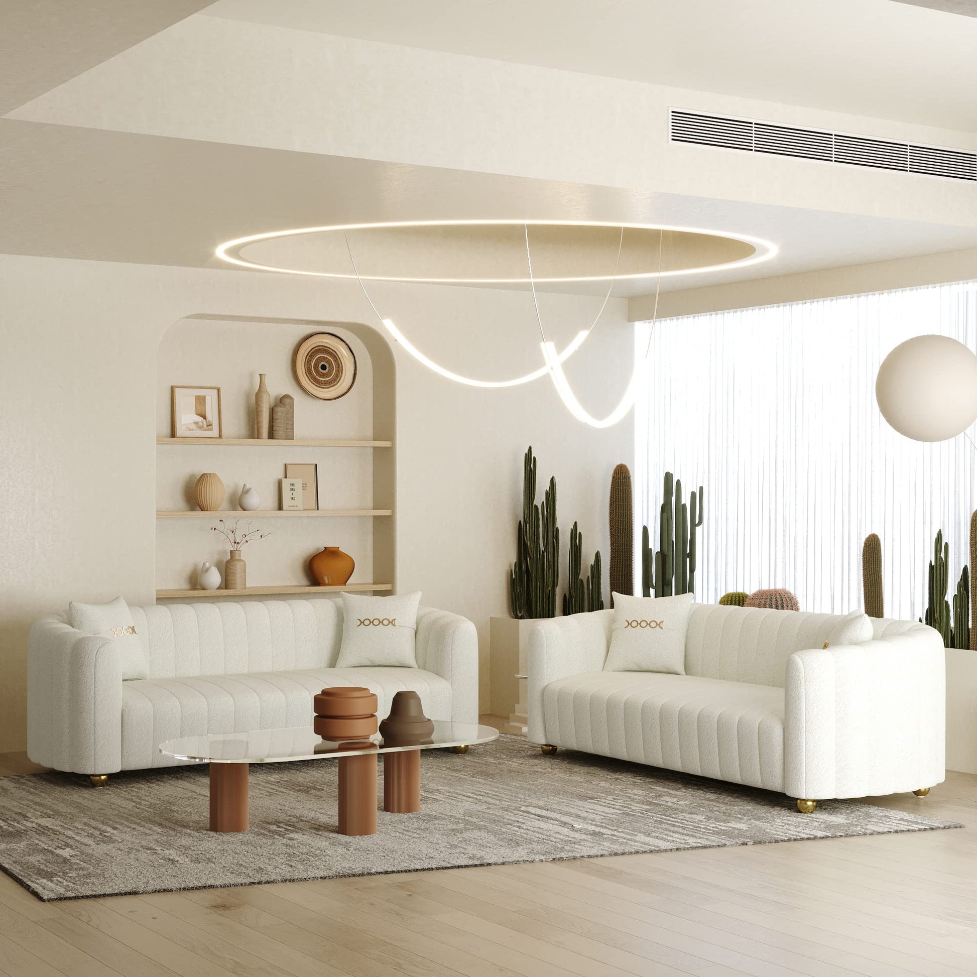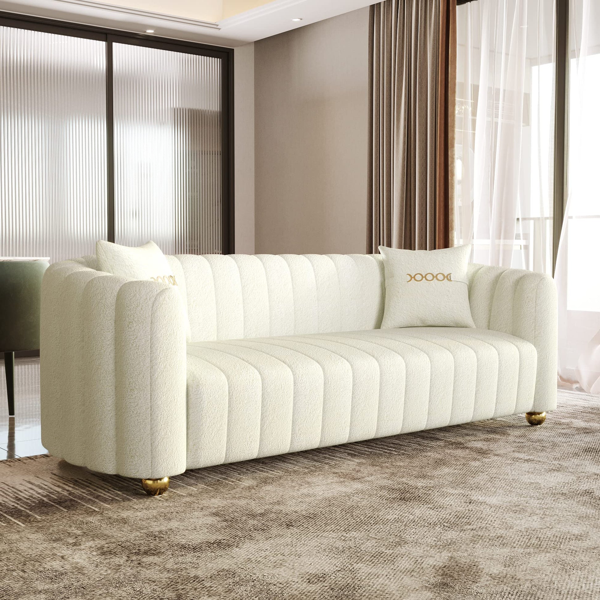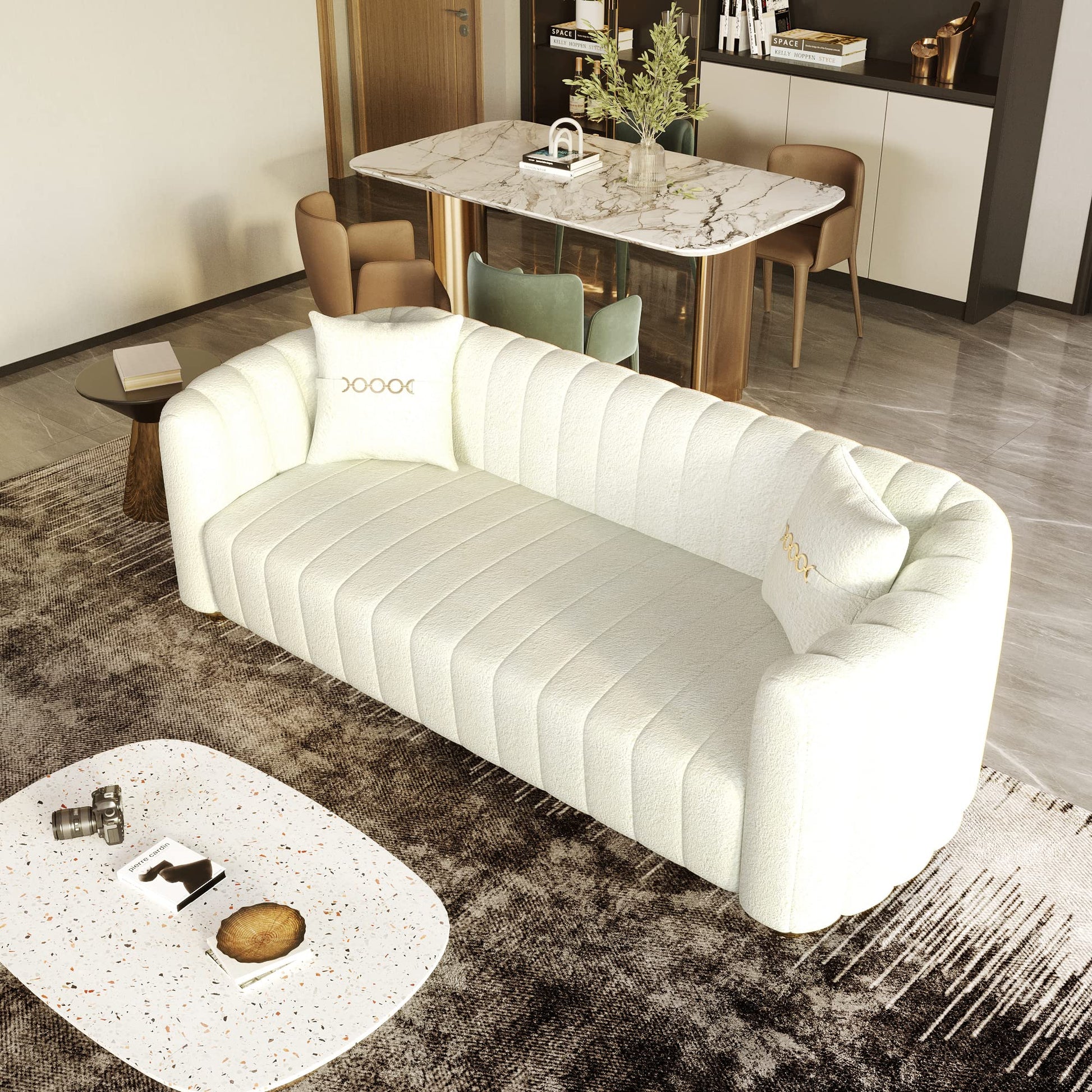 83'' Sofa for Living Room Modern Teddy Short Plush Couch 3-Seater Apartment Sofa with 2 Pillows & Golden Metal Legs