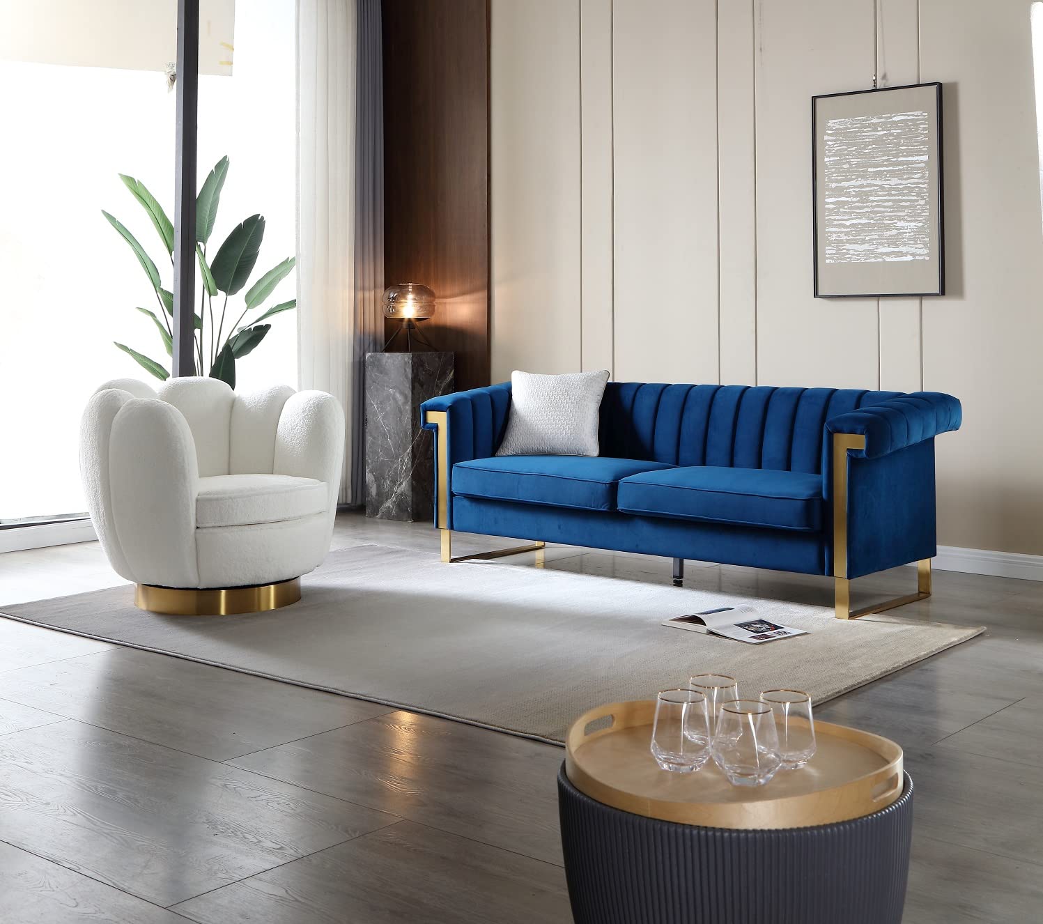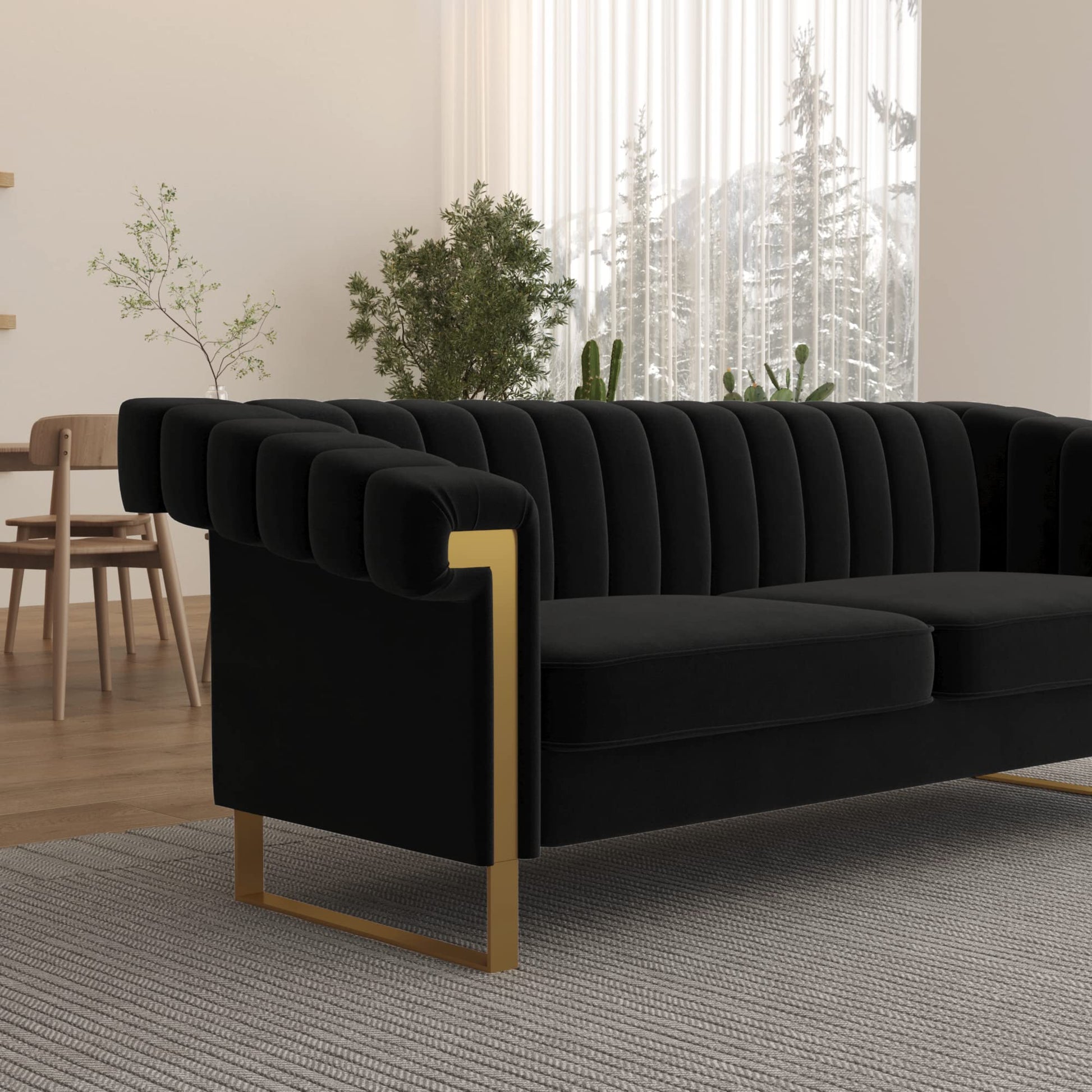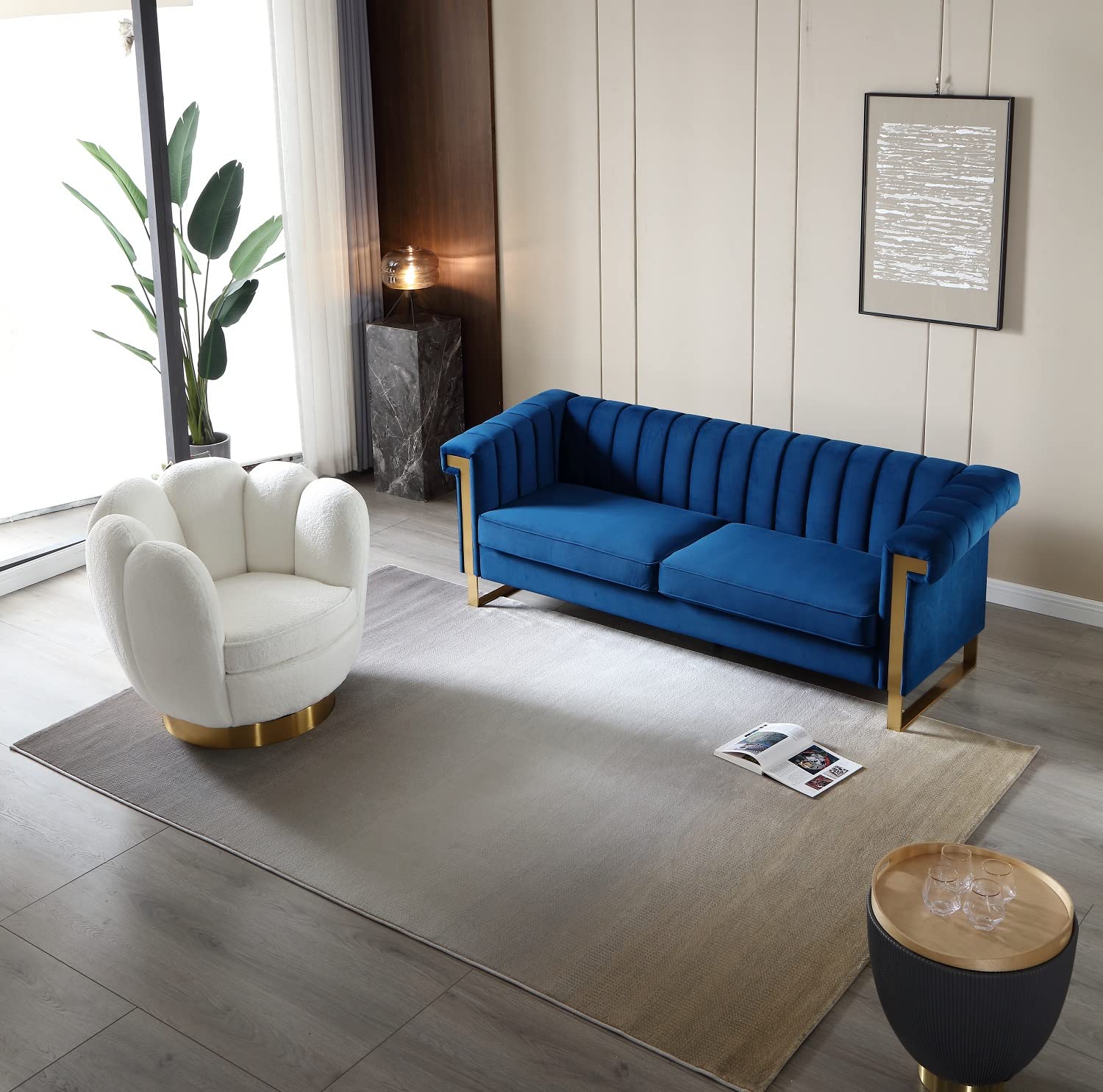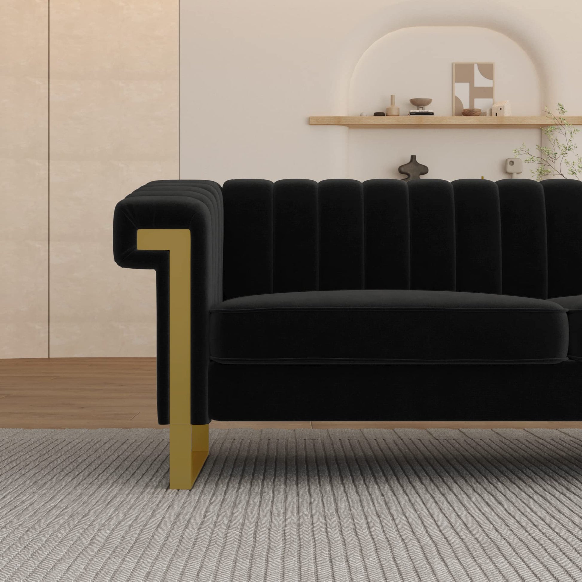 - 【VELVET UPHOLSTERY】: The 3-seater sofa is upholstered with niche velvet fabric used in designing high end clothes and luxury car seats giving it a modern and gorgeous look. The velvet fabric is very soft and breathable, while it also has a high tensile strength preventing tears on the fabric. The sofa is perfect for living room, bedroom, study, apartment and more. The sofa will make you feel comfortable helping you relax and exhume all the stress from your body.