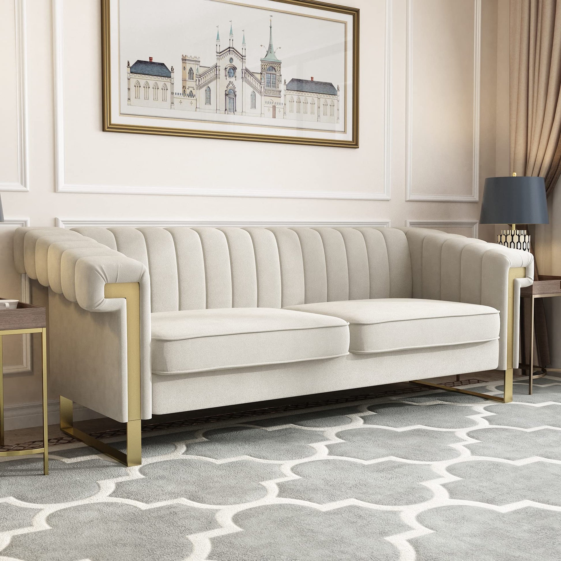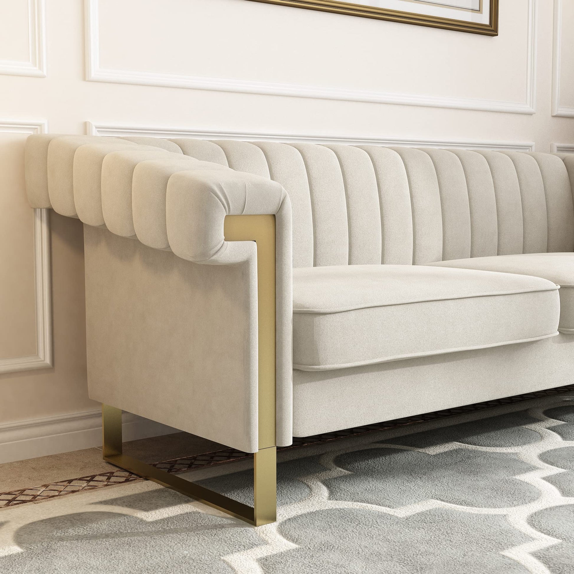 83'' Velvet Couches for Living Room 3-Seater Comfy Sofas Upholstered Modern Couch for Small Spaces Apartment (Cracker Khaki)