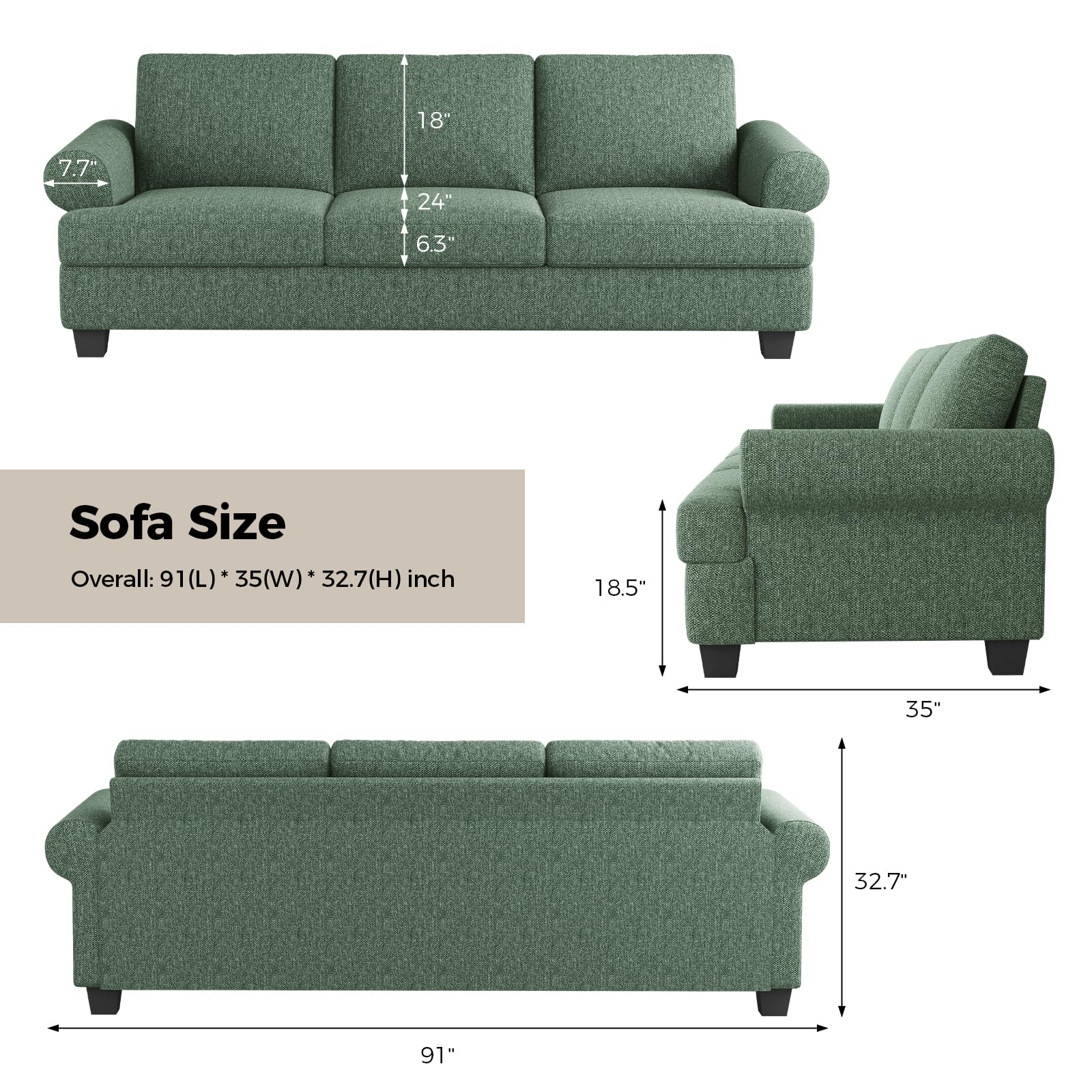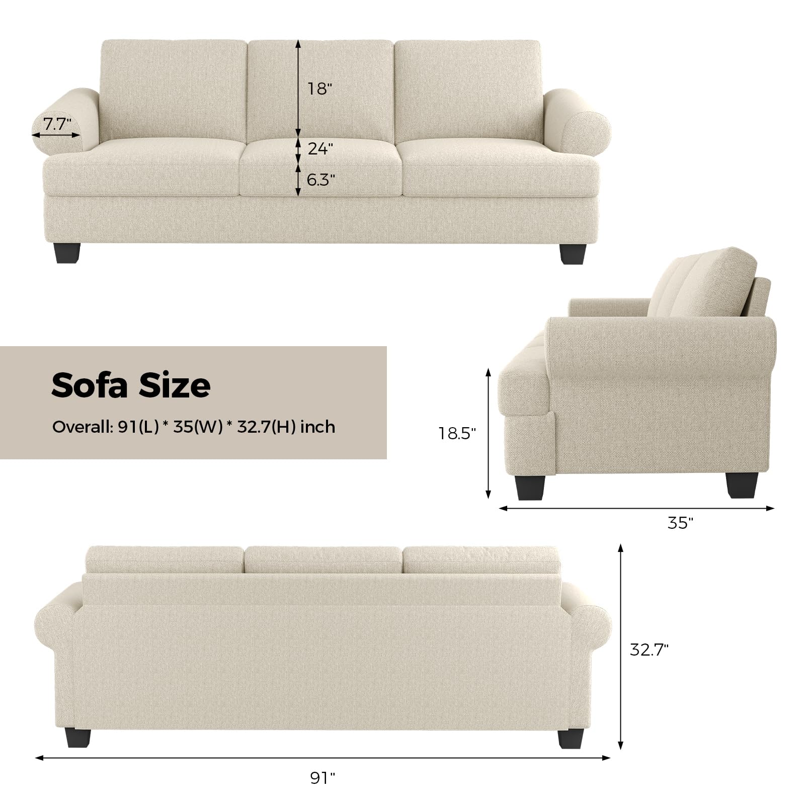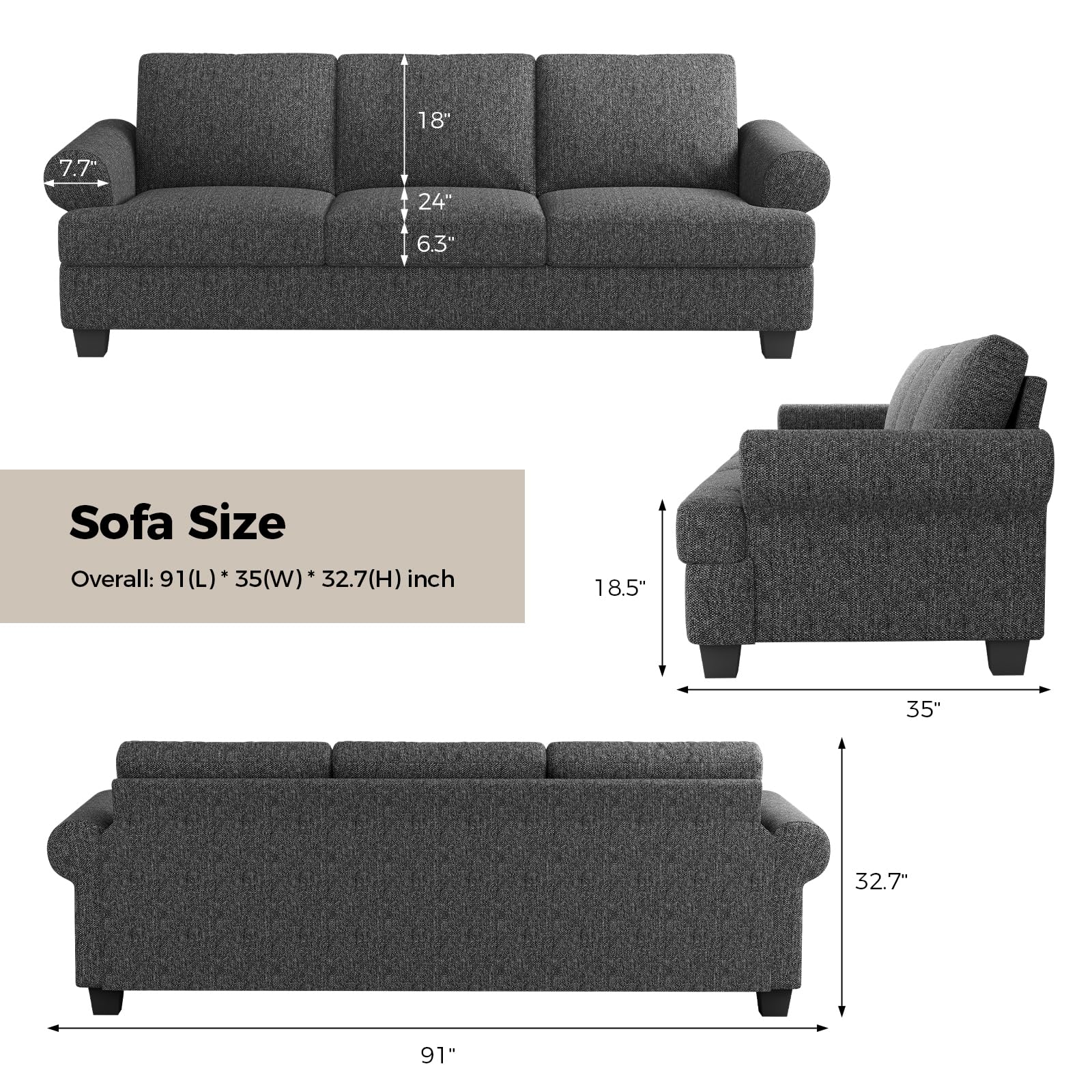 - COPIEA 3-seater sofa brings you quality life and comfortable experience. The sofa has a 24-inch seat depth, movable backrest and thickened seat cushion, giving you the ultimate experience.