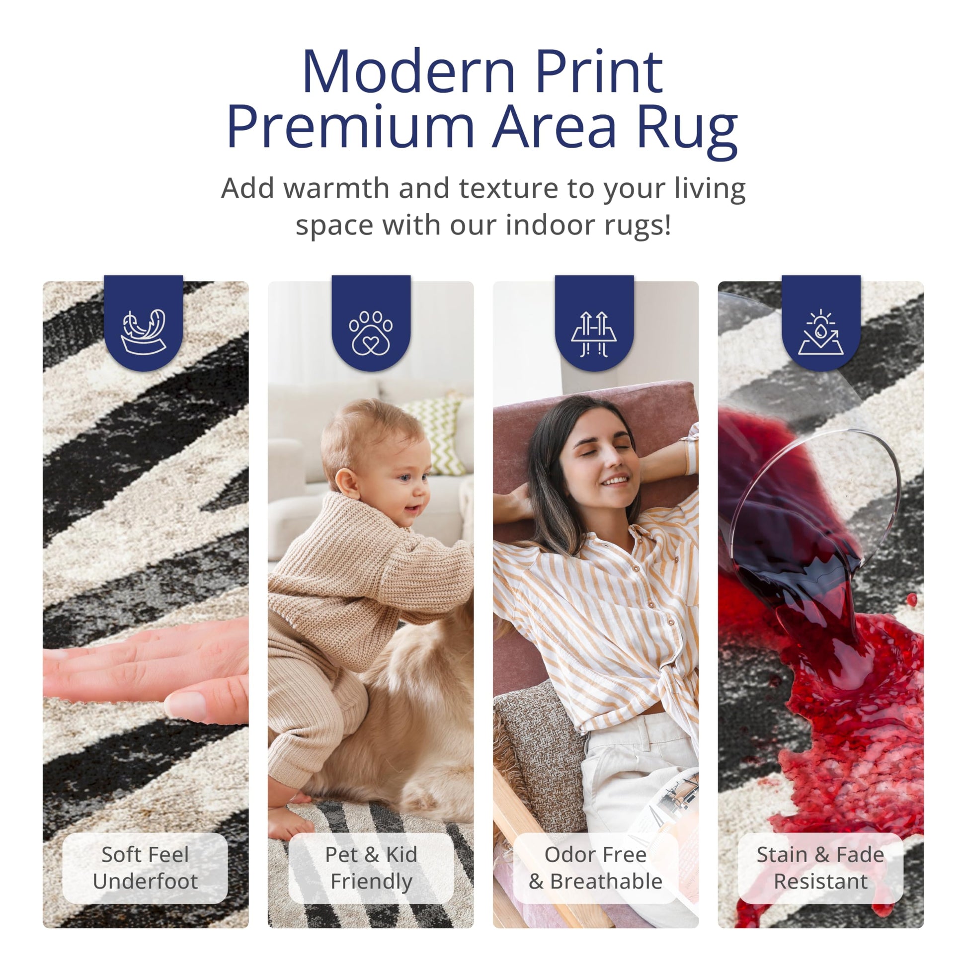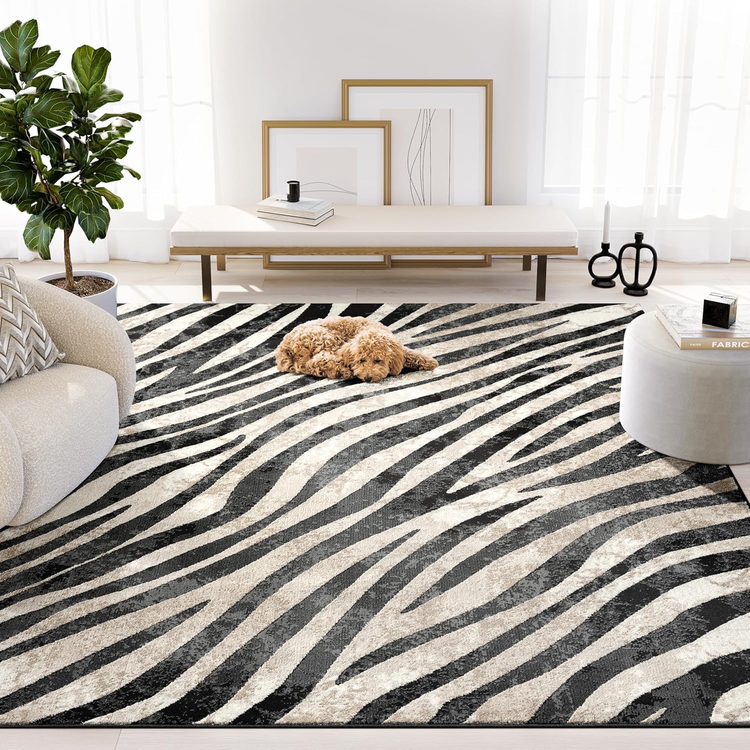 Abani Terra Area Rug for Living Room, Bedroom - Zebra Pattern - Black Cream - 9' x 12' - Durable & Easy to Clean