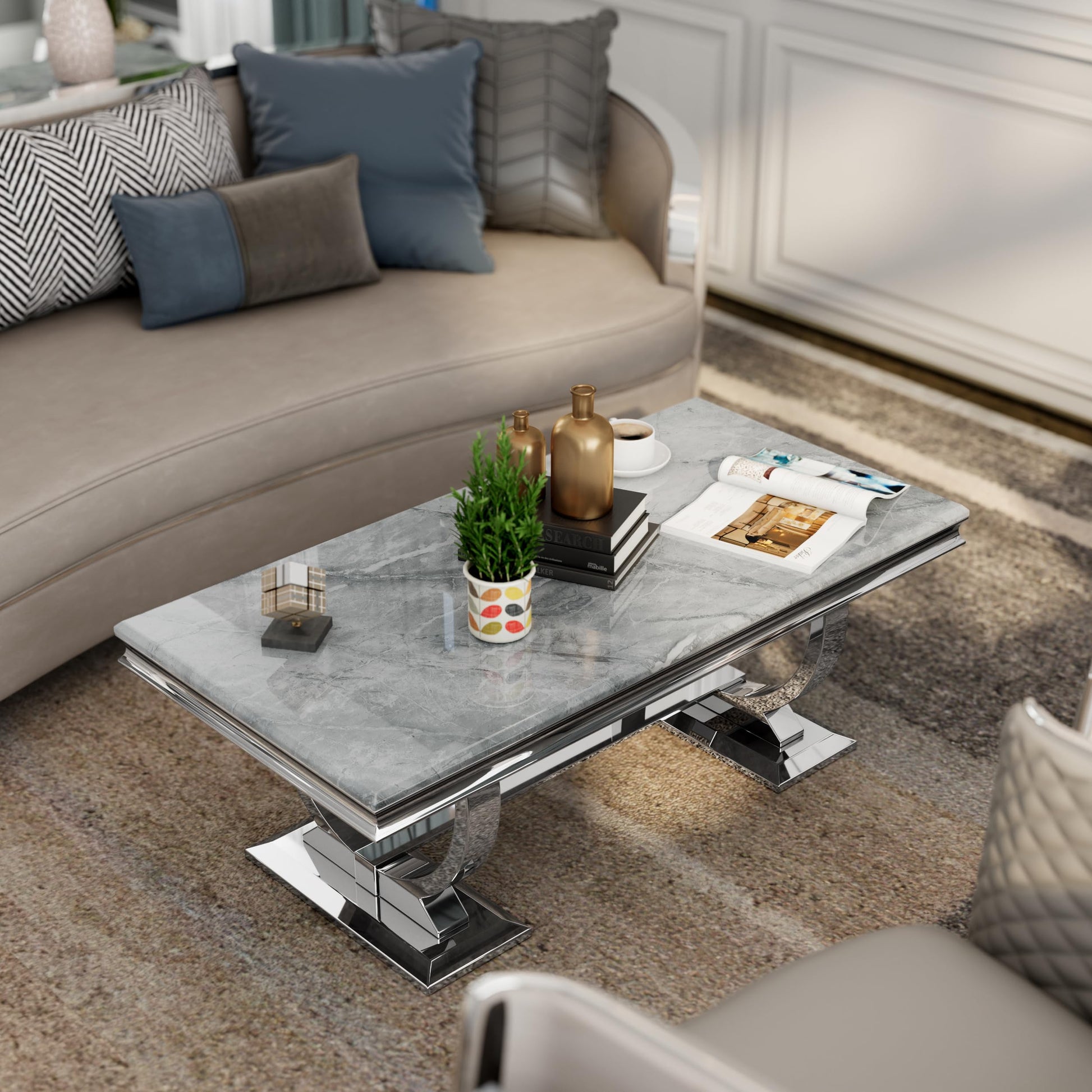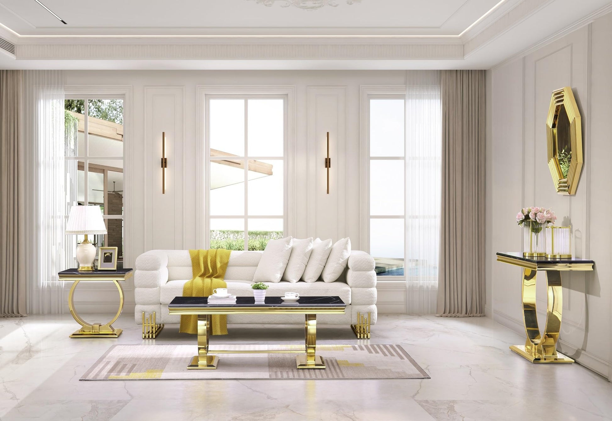 - Asday White and Gold Coffee Table: White exquisite texture tabletop plus unique double U-shaped base, this coffee table is modern and elegant, exquisite craftsmanship with simple shape, it is the most dazzling existence in the living room, creating a warm and comfortable living room atmosphere.