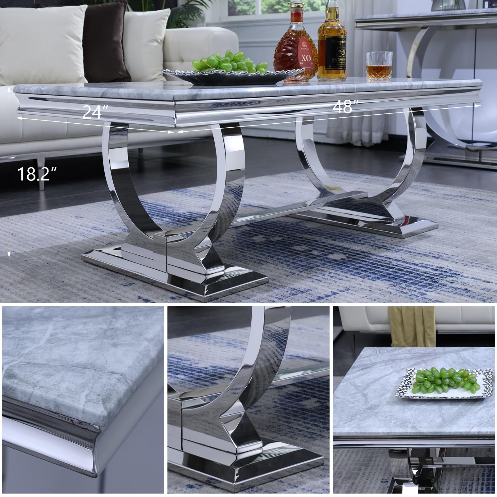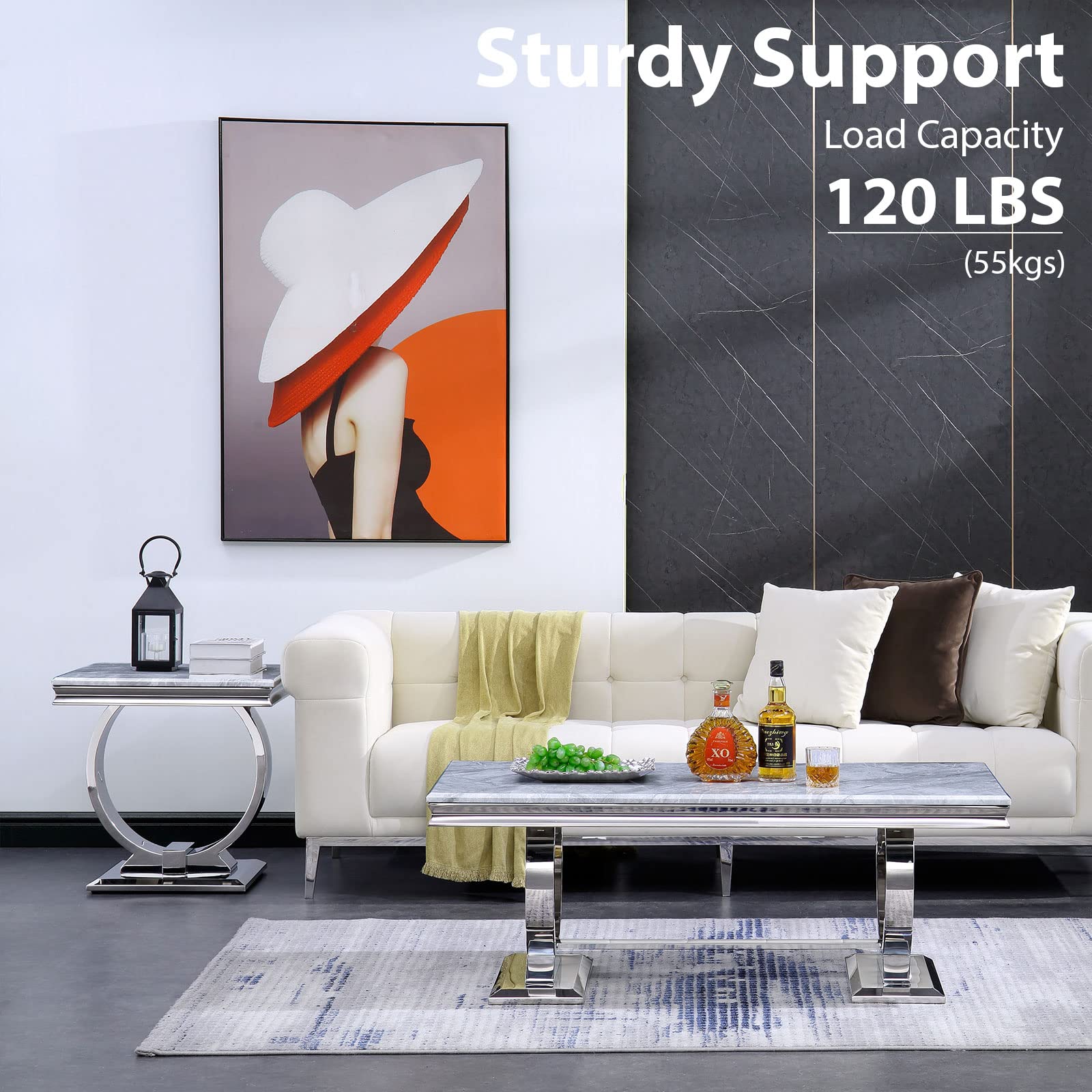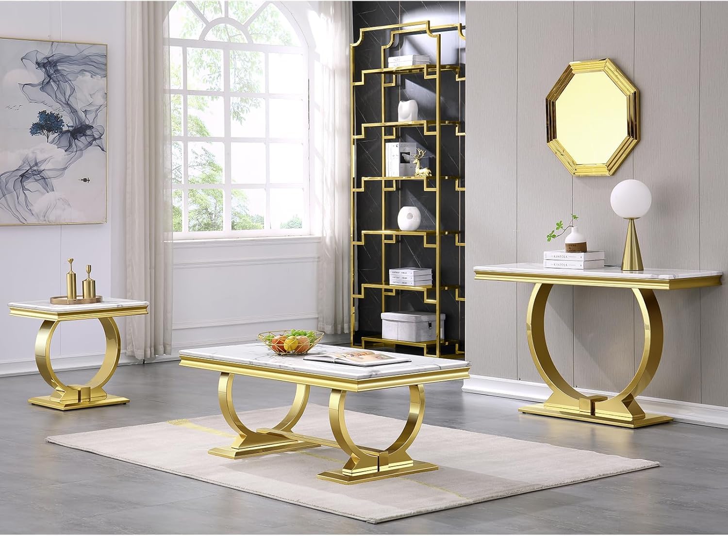 - Modern and Practical: the tabletop material is mdf board, the surface is smooth, with marble texture, waterproof, the table bottom is made of stainless steel, mirror gold, sturdy and durable, the white and gold coffee table is the central table of the small living room, very modern.