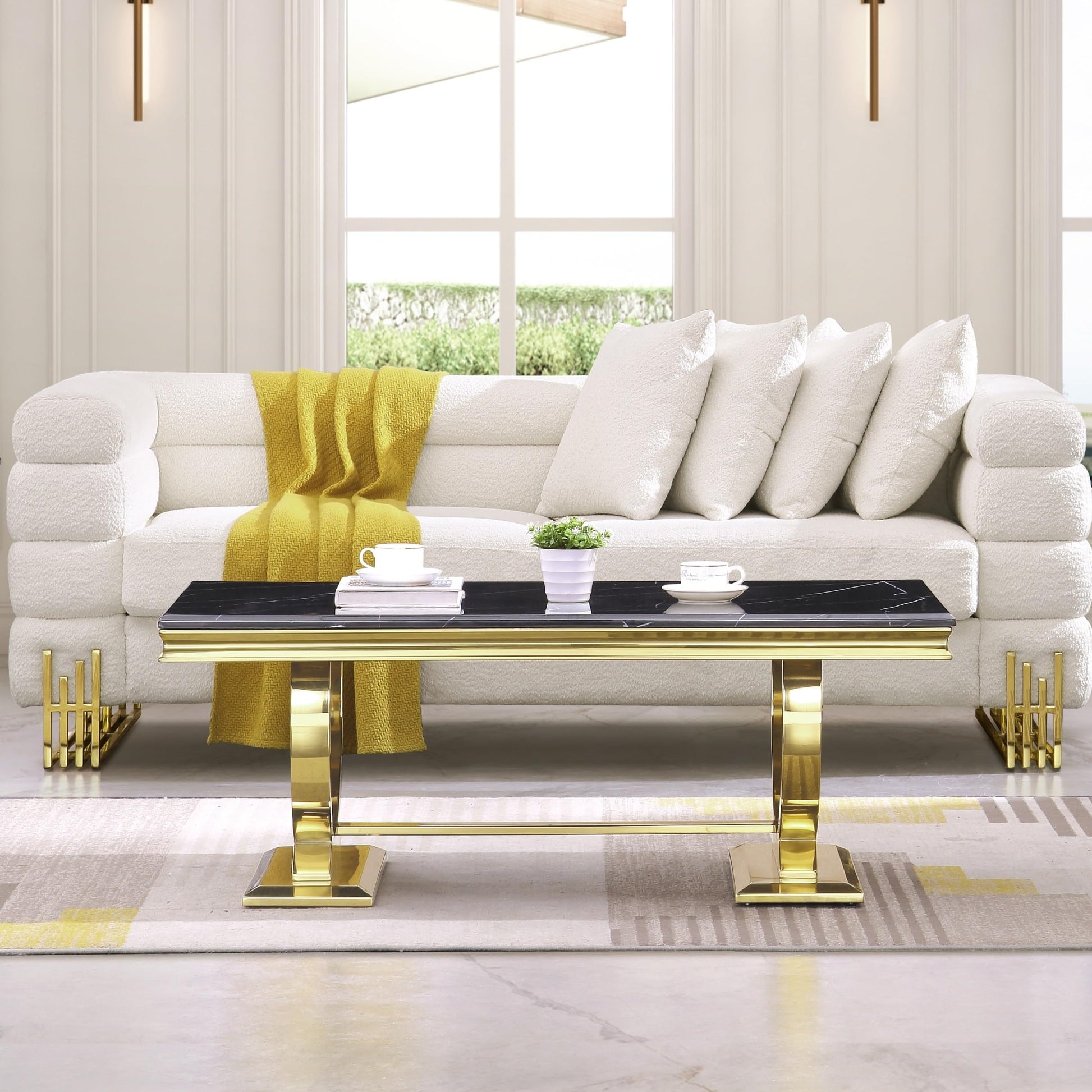 Asday Gold and White Coffee Table, Rectangle Marble Living Room Tea Table, Elegant Coffee Table for Living Room, Guest Hall, Reception Room