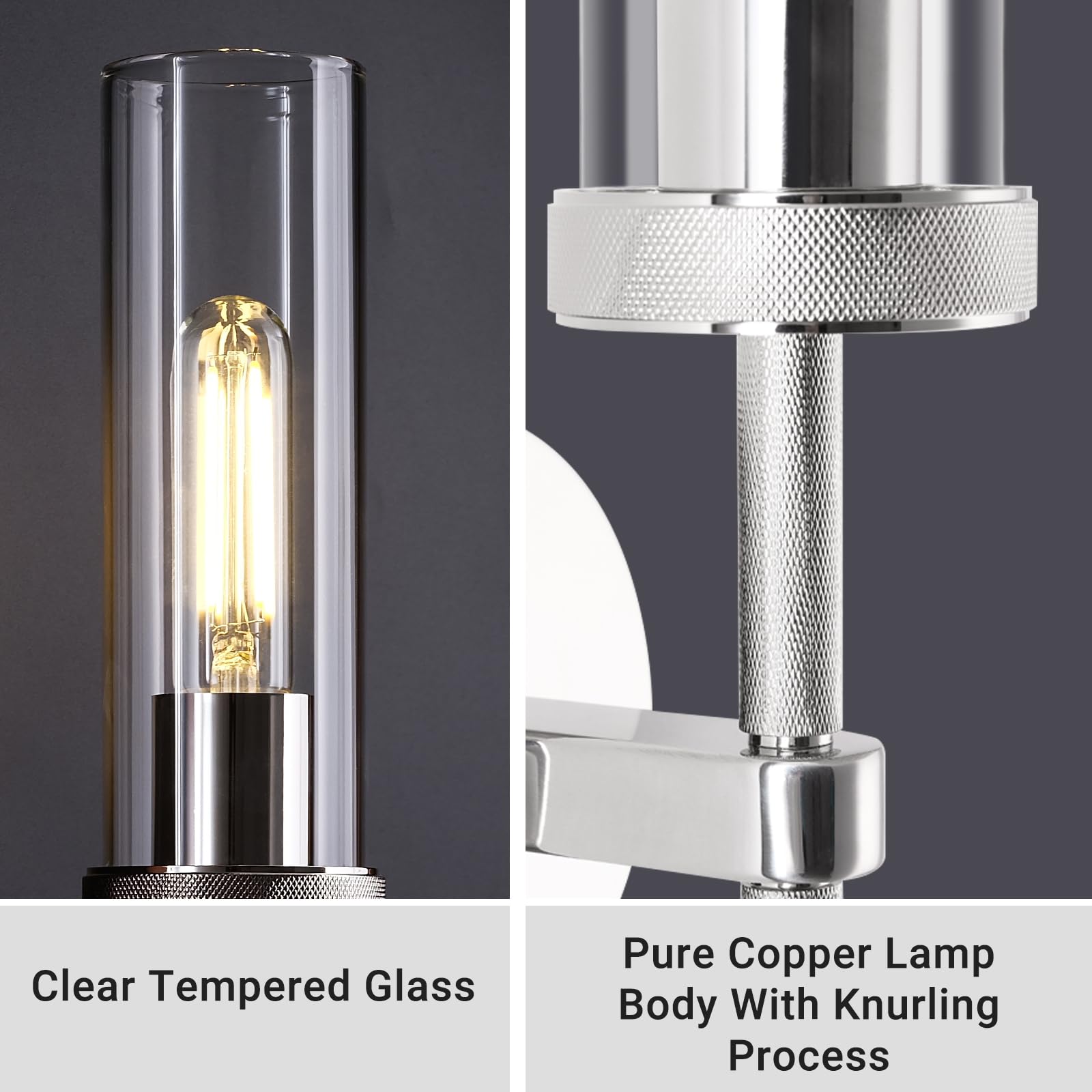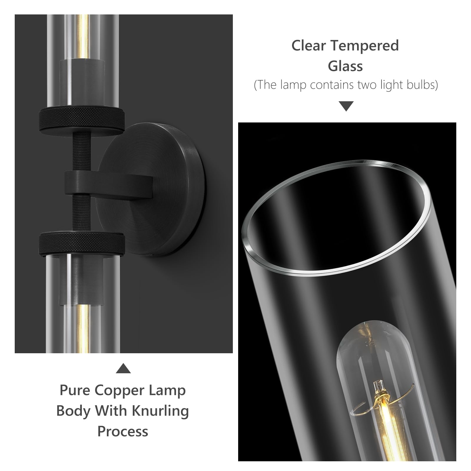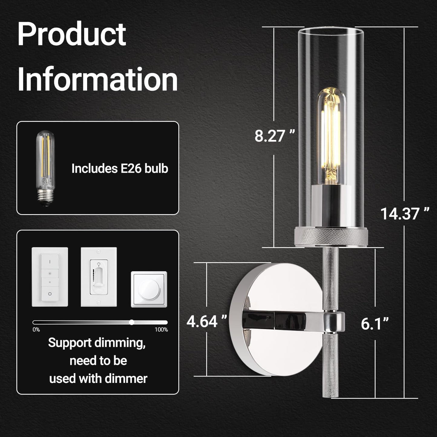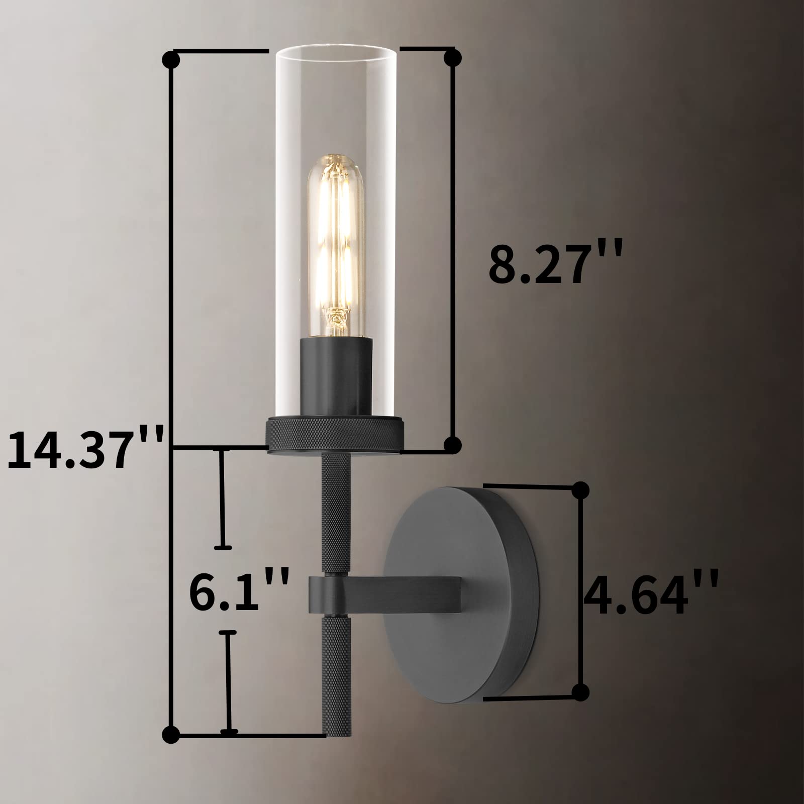- TWO INSTALLATION METHODS: 12.8" Tubular Clear Glass Shade, The Cylinder Wall Sconce'S Bulb Illumination Range Is Up To 360°. During The Wall Sconce Installation, You Can Install The Wall Sconce Next To The Mirror With The Shade Facing Up. You Can Also Install The Wall Sconce Above The Mirror With The Shade Facing Down.
