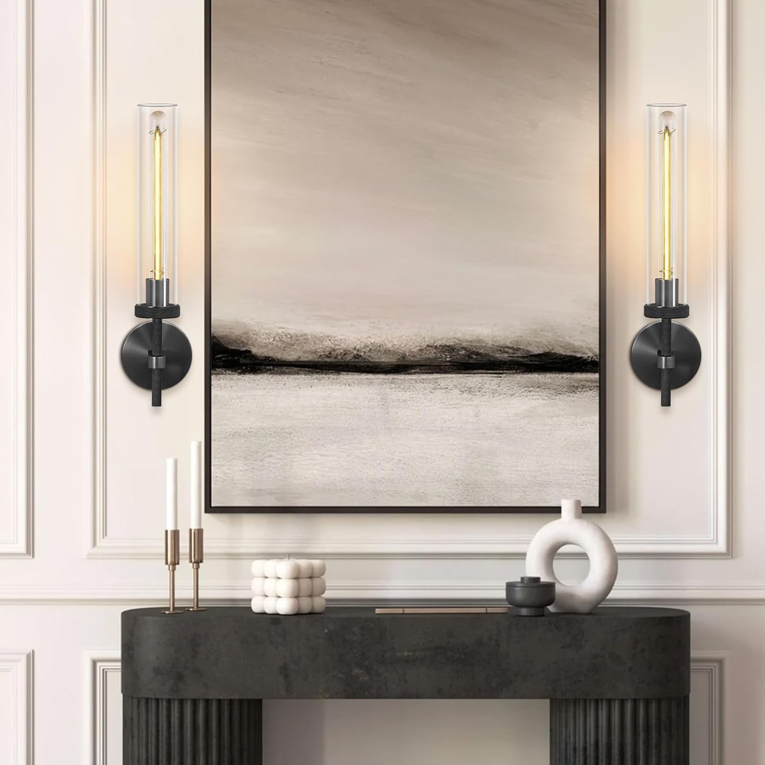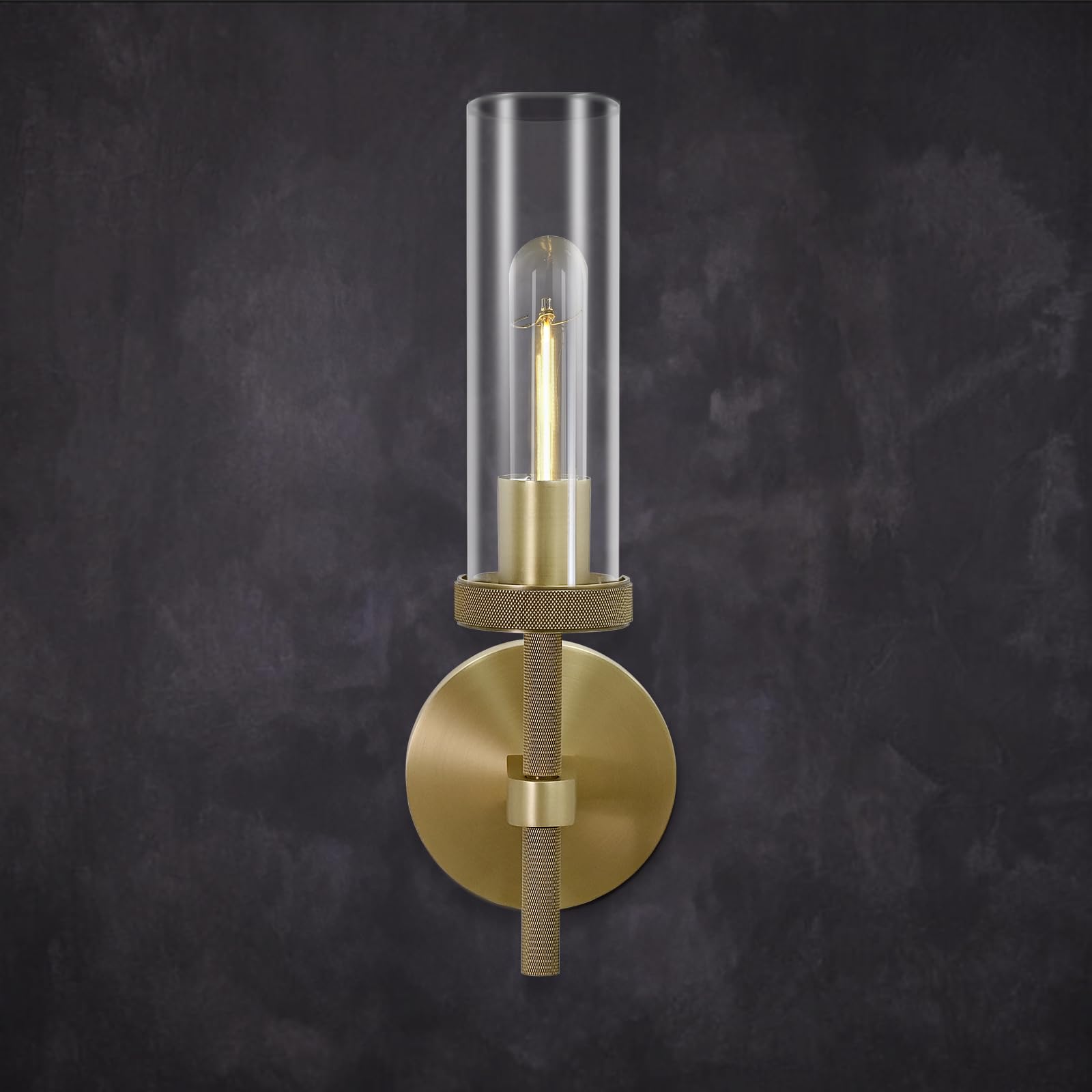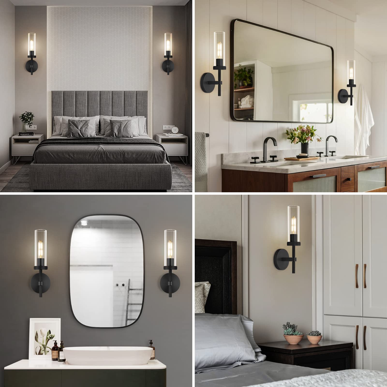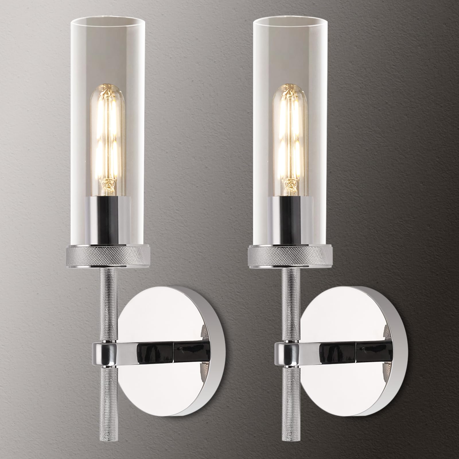 - TWO INSTALLATION METHODS: 12.8" Tubular Clear Glass Shade, The Cylinder Wall Sconce'S Bulb Illumination Range Is Up To 360°. During The Wall Sconce Installation, You Can Install The Wall Sconce Next To The Mirror With The Shade Facing Up. You Can Also Install The Wall Sconce Above The Mirror With The Shade Facing Down.