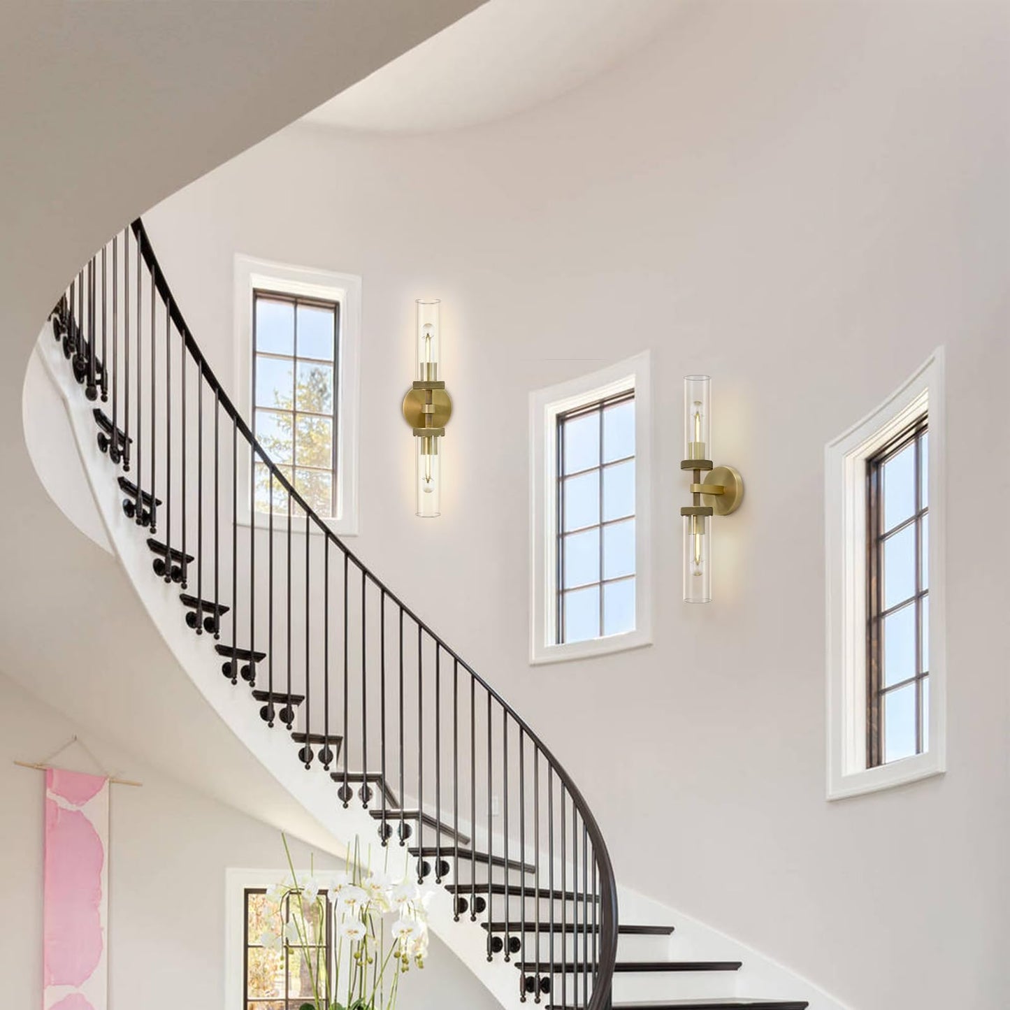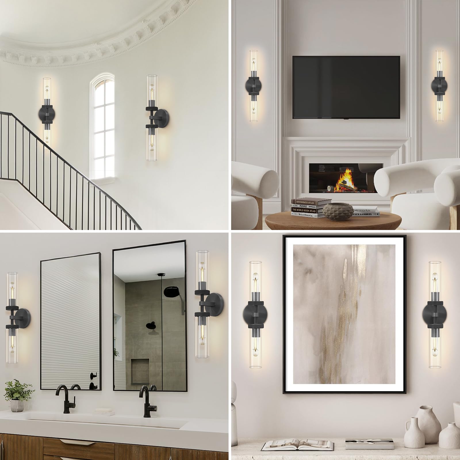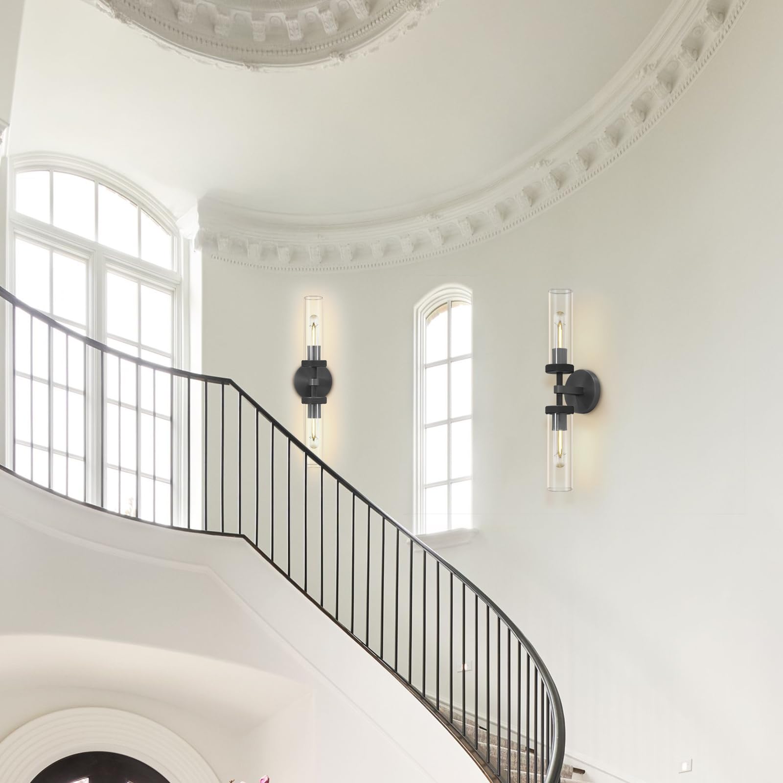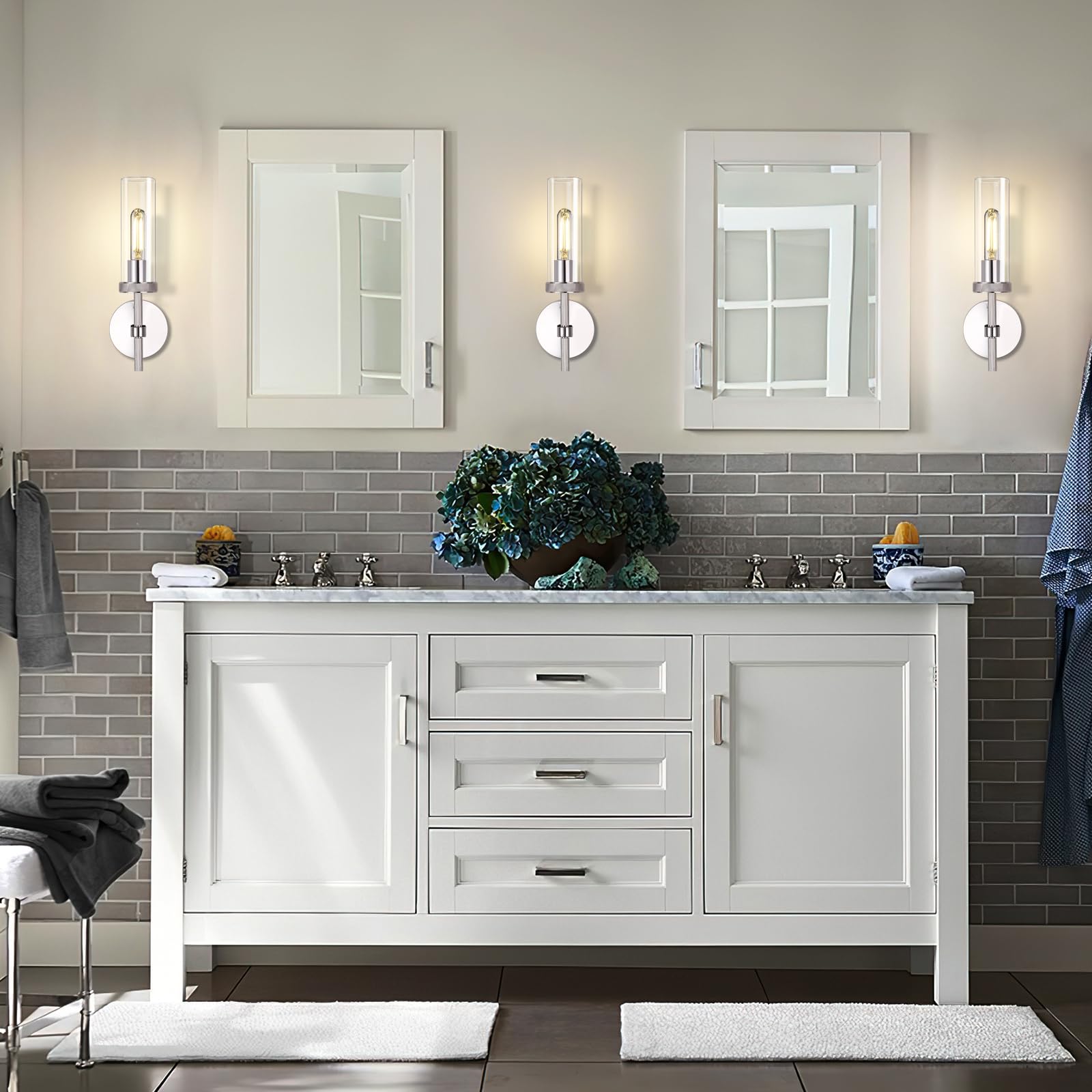 - TWO INSTALLATION METHODS: 12.8" Tubular Clear Glass Shade, The Cylinder Wall Sconce'S Bulb Illumination Range Is Up To 360°. During The Wall Sconce Installation, You Can Install The Wall Sconce Next To The Mirror With The Shade Facing Up. You Can Also Install The Wall Sconce Above The Mirror With The Shade Facing Down.