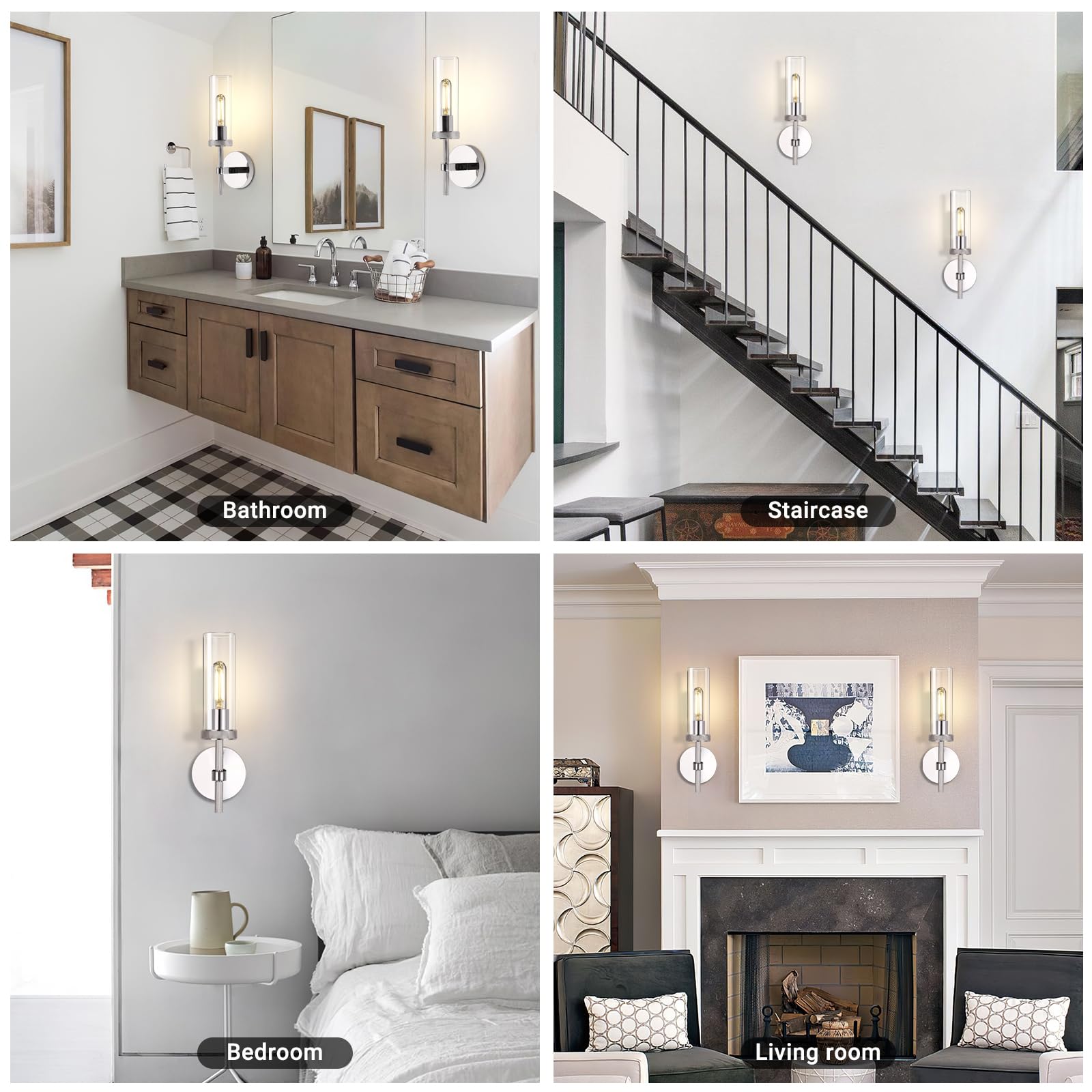 - PERFECT FOR HOME DECORATION: The Glass Wall Sconce Is Designed With An E26 Light Source, And Has A Very Stylish Appearance While Meeting The Lighting Function. The Wall Sconce Is Perfect For The Bathroom Mirror Or Bedroom, Living Room, Dresser, Vanity, Mirror Cabinet, Mirror Cabinet, Doorway Or Entrance, Hallway, Foyer, Staircase, Or Bar Cafe.