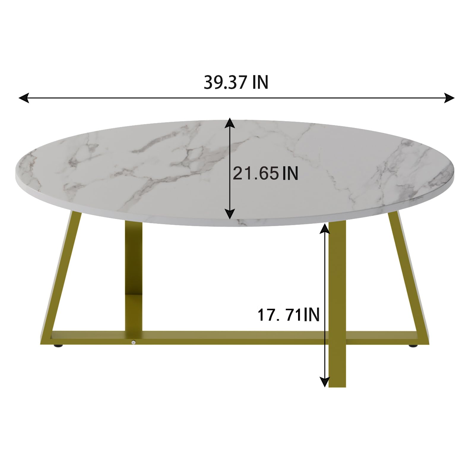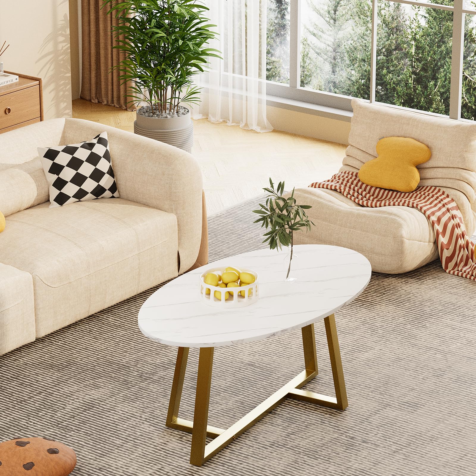 Coffee Table White Faux Marble Coffee Table for Living Room,Oval Center Tables Modern Tea Table for Small Space,Wooden Living Room Tables End Table with Sturdy Gold Metal Leg