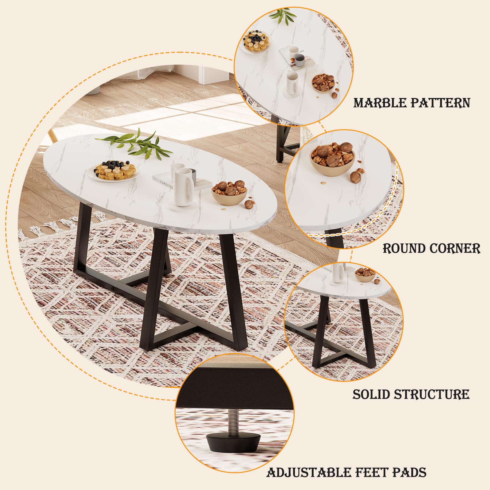 - 【STABLE & DURABLE】This oval coffee table is made up of MDF board with marble grain veneer,that prevent scratches and water resistance. The table legs are composed of sturdy and durable metal frame, with beautiful style and strong load-bearing capacity.