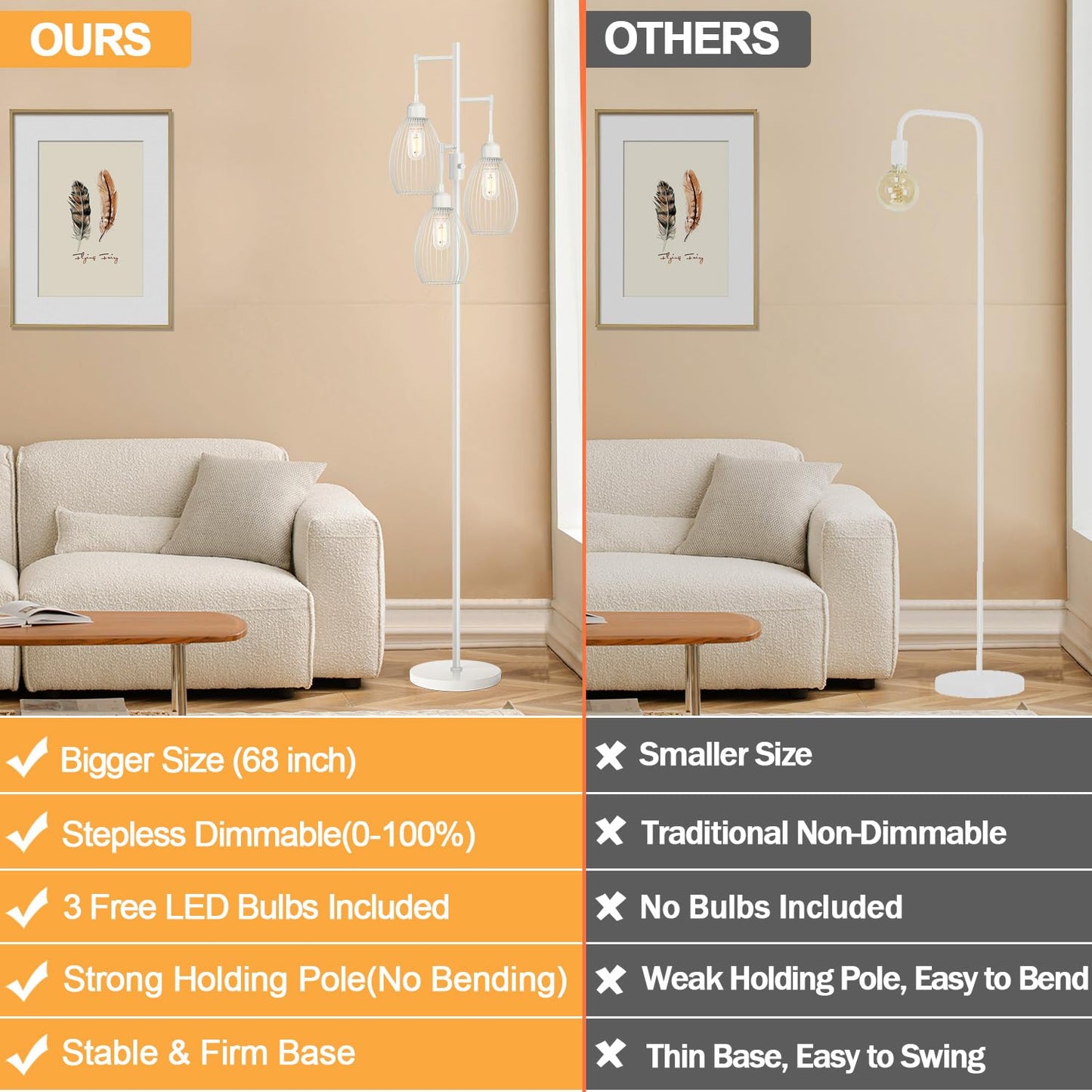 - 3 x 800 lumens LED Bulbs Included: Our floor lamps are designed with 3 E26 lamp holders. Compatible with a variety of normal E26 LED, CFL, incandescent and halogen bulbs etc(Dimmable Bulb Only). This set comes with an E26 base bulb, 25,000 hour bulb life, 8W(60W equivalent), 800 lumens, 2700K (warmwhite), No flicker or buzzing.