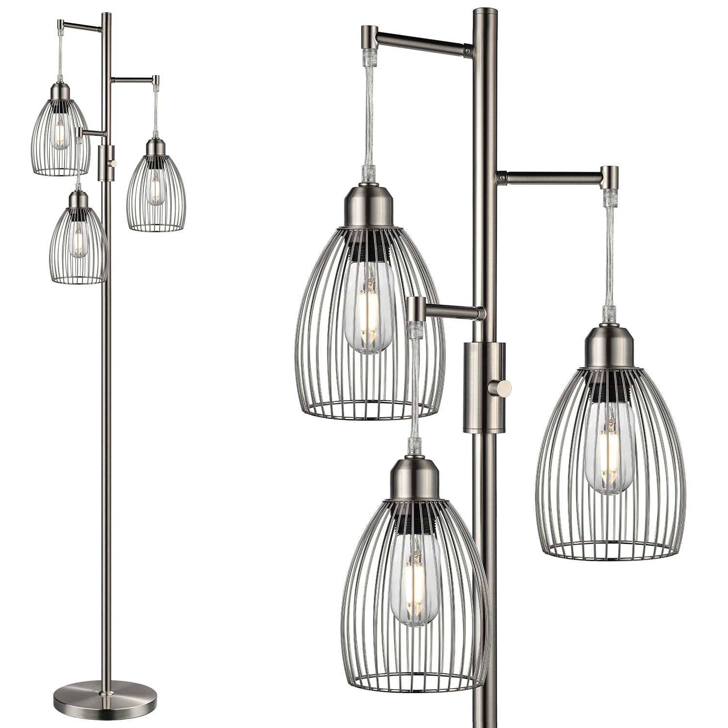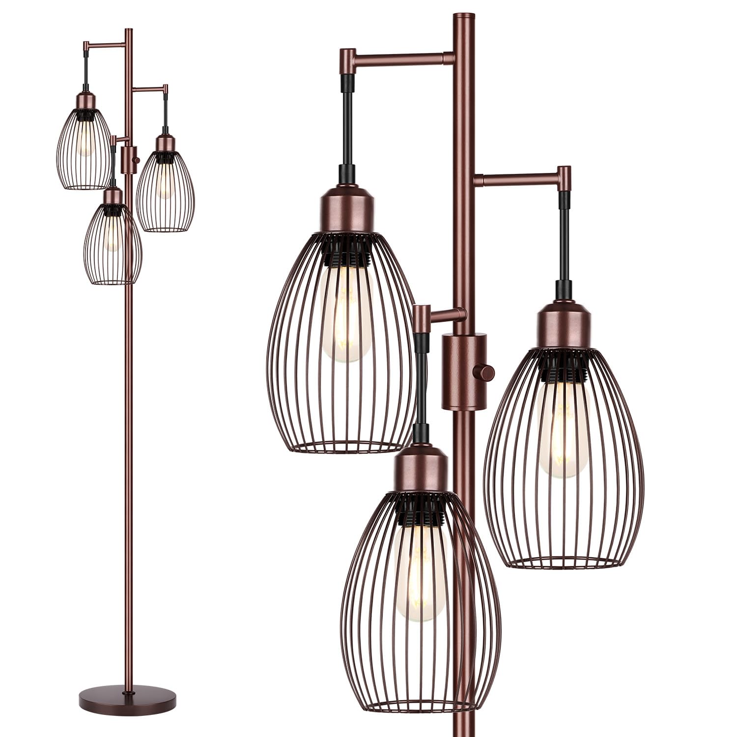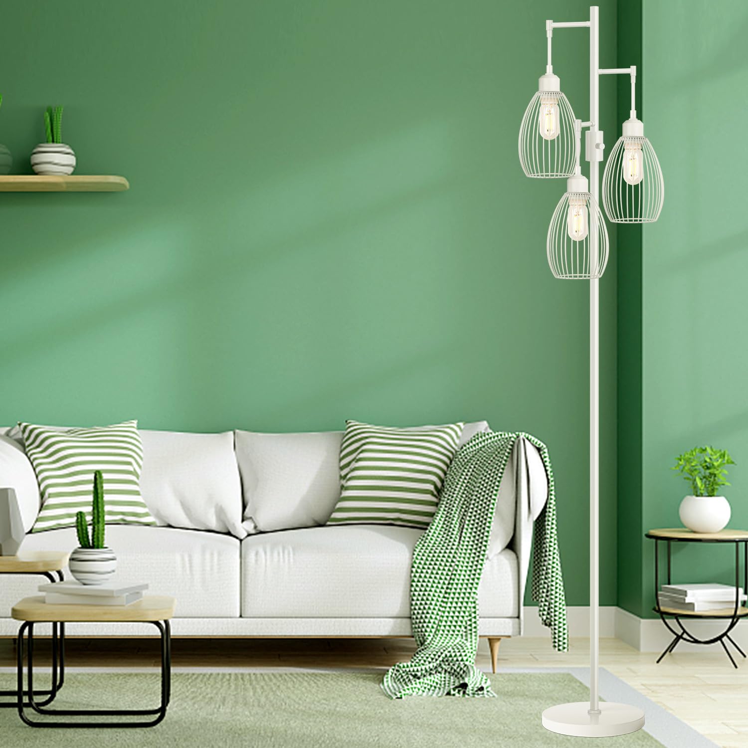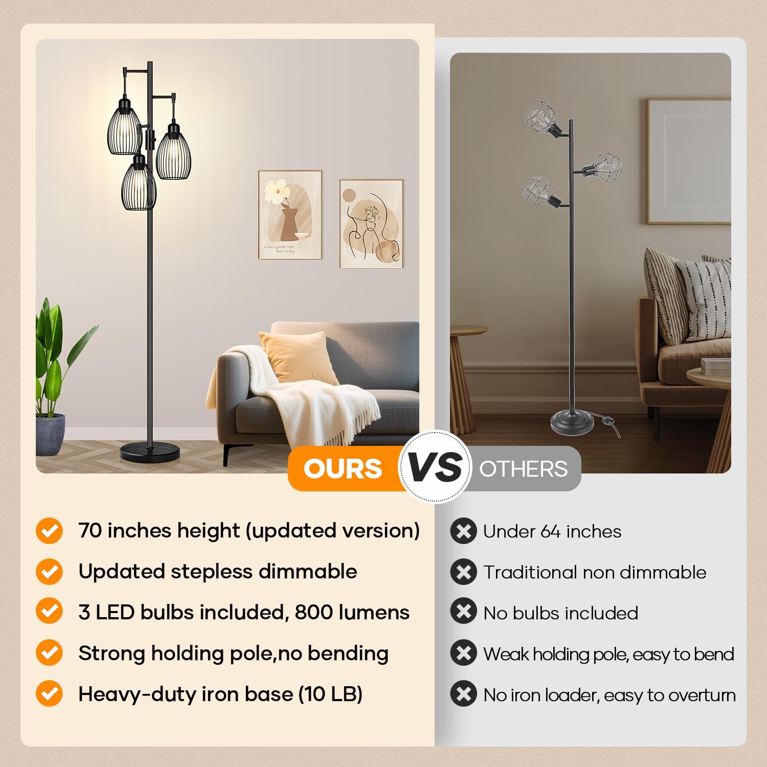 Dimmable Floor Lamp, 3 x 800LM LED Edison Bulbs Included, Farmhouse Industrial Floor Lamp Standing Tree Lamp with Elegant Teardrop Cage Tall Lamps for Living Room Bedroom Office Dining Room-Black