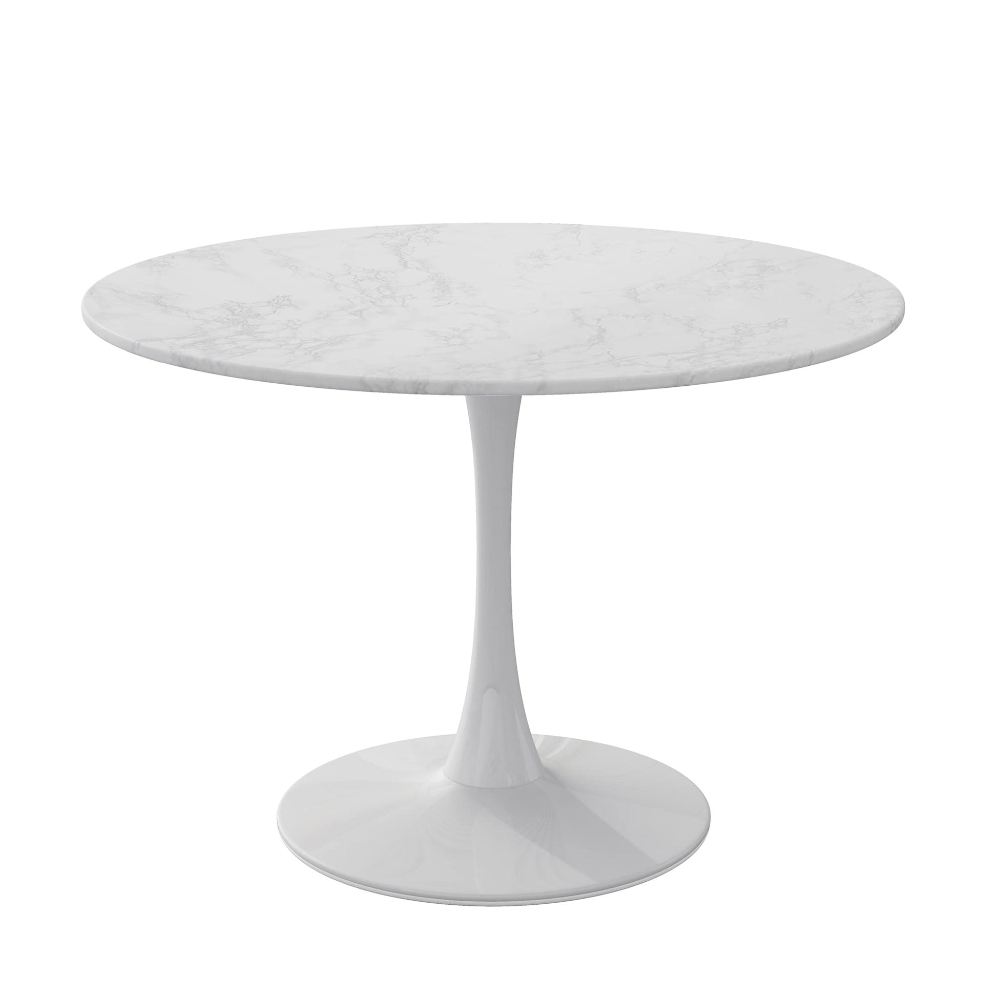 - 【Fits 4-6 People】The modern round dining tabletop is 42.12" in diameter and seats 4-6 people comfortably. This white round dining table creates a romantic nook for four in a small space, and you can add two chairs to invite your friends and family to chat around the kitchen table. As a white tulip table, small dining table, casual table, office desk, 42 inch white round table, or coffee table.