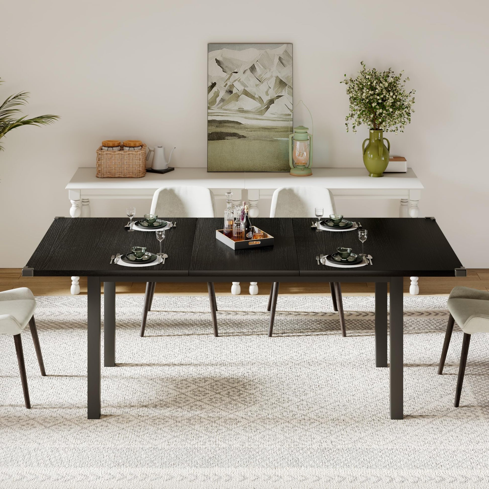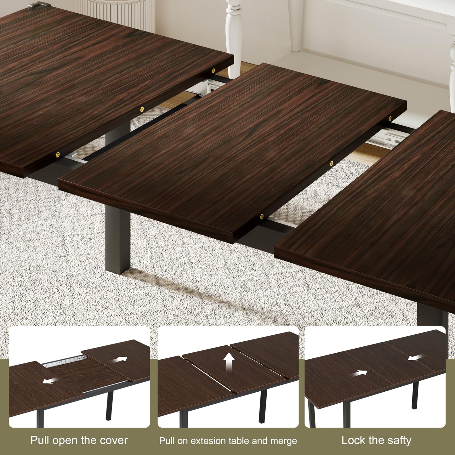 Feonase 63" Extendable Dining Table, Modern Farmhouse Dining Room Table for 4-8, Wooden Kitchen Table for Small Space, Dining Room, Home Office, Living Room Furniture, Walnut