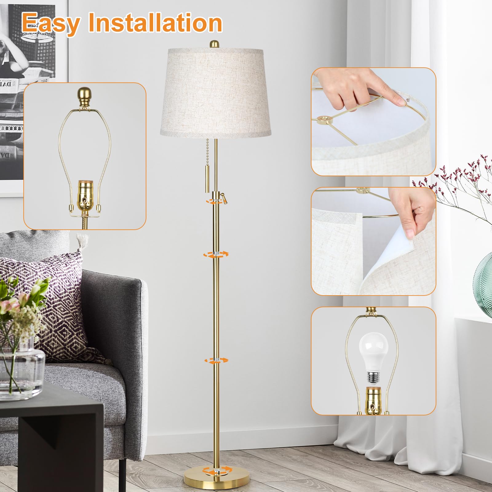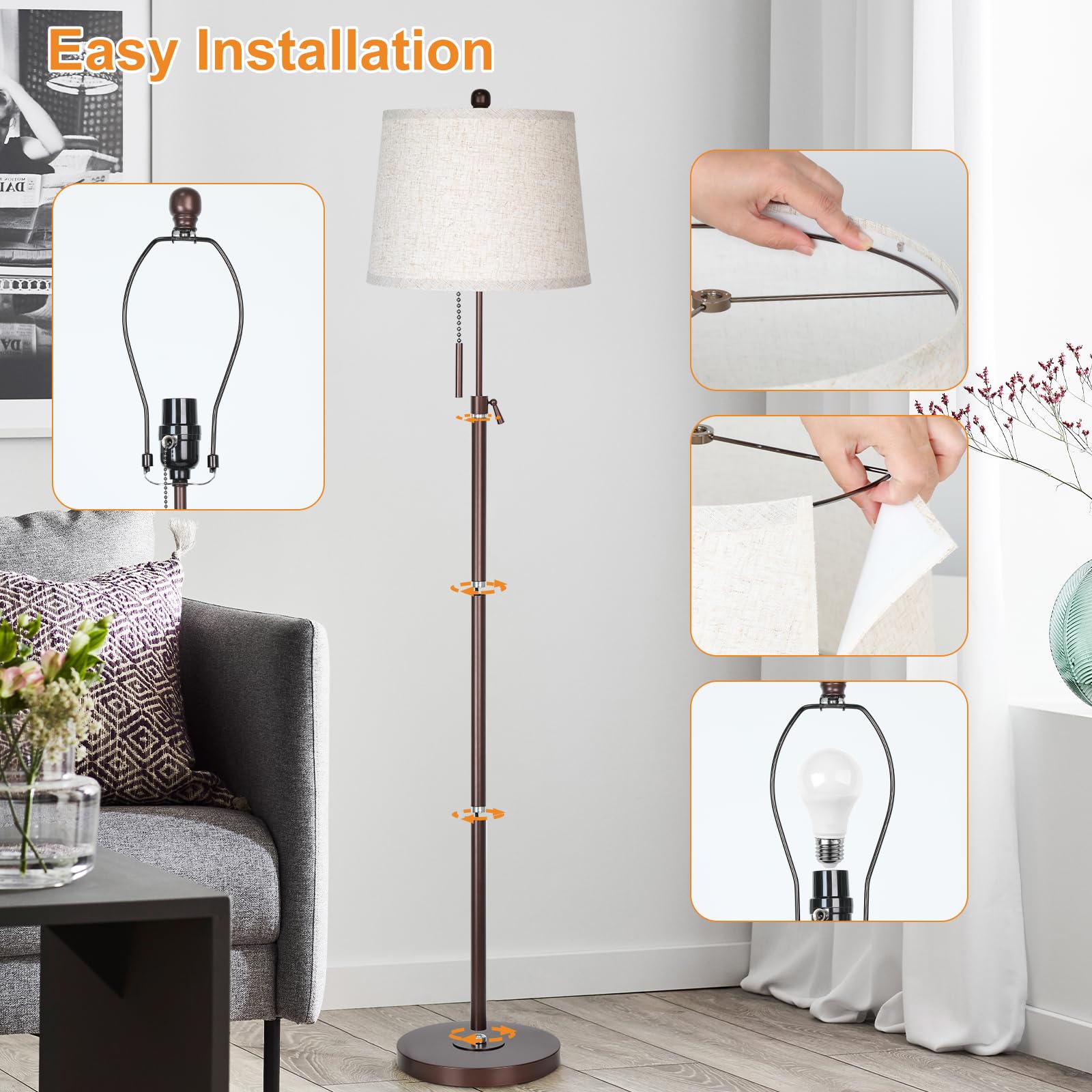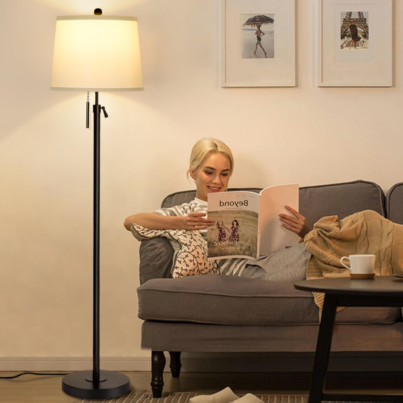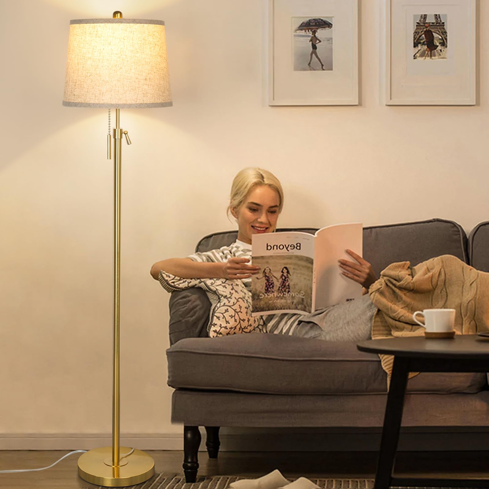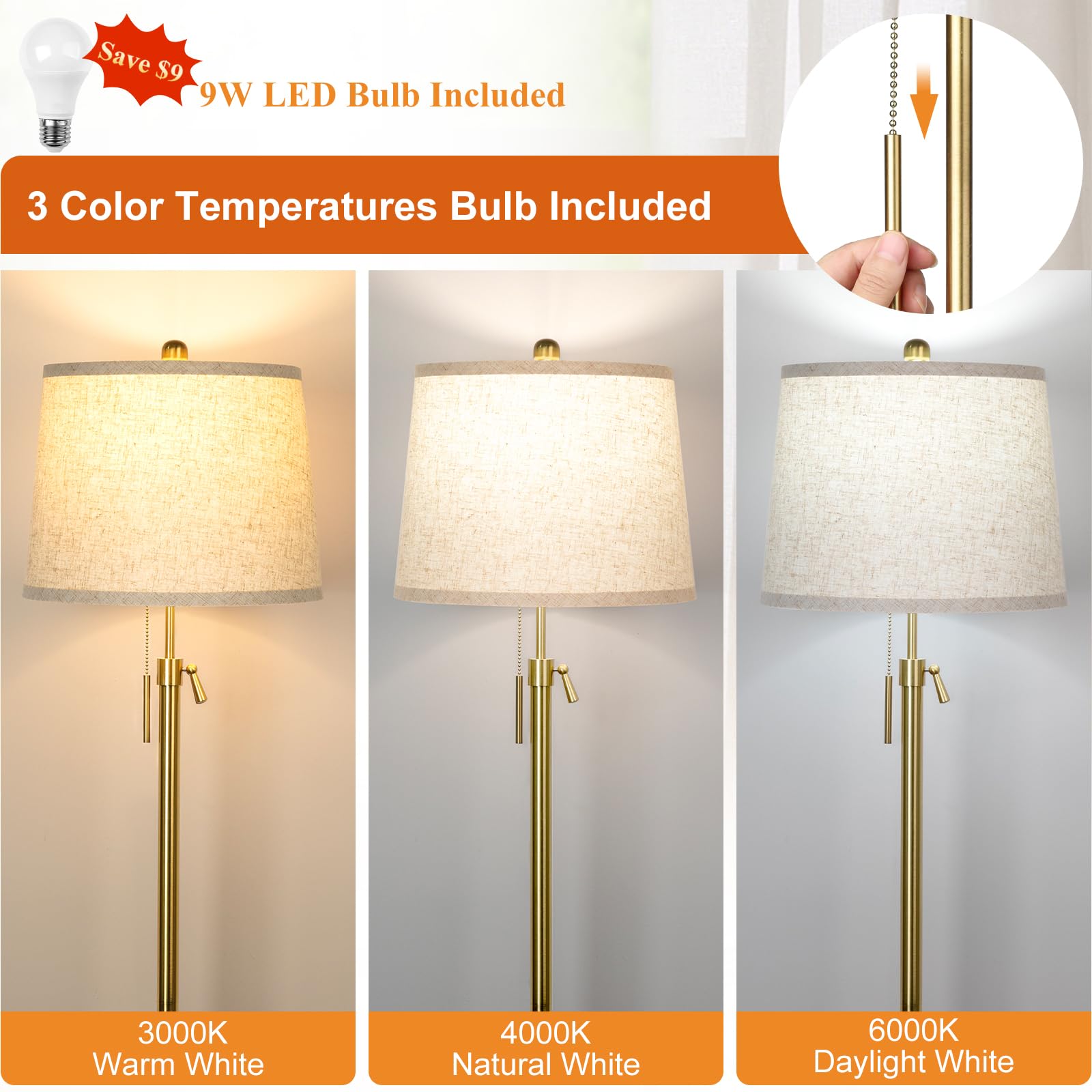 - Customized 3-Way Dimmable LED Bulb: the living room lamp comes with an 8W bulb that feature the handy 3 levels of brightness that works with the chain pull On-Off cycling easily rather than a typical 3-way lamp. Each time you pull the chain, the brightness changes accordingly (High-Mudium-Low). This LED floor lamp emits eye-protecting soft 3000K warm white light, creating a comfortable atmosphere and allowing you to read work or relax