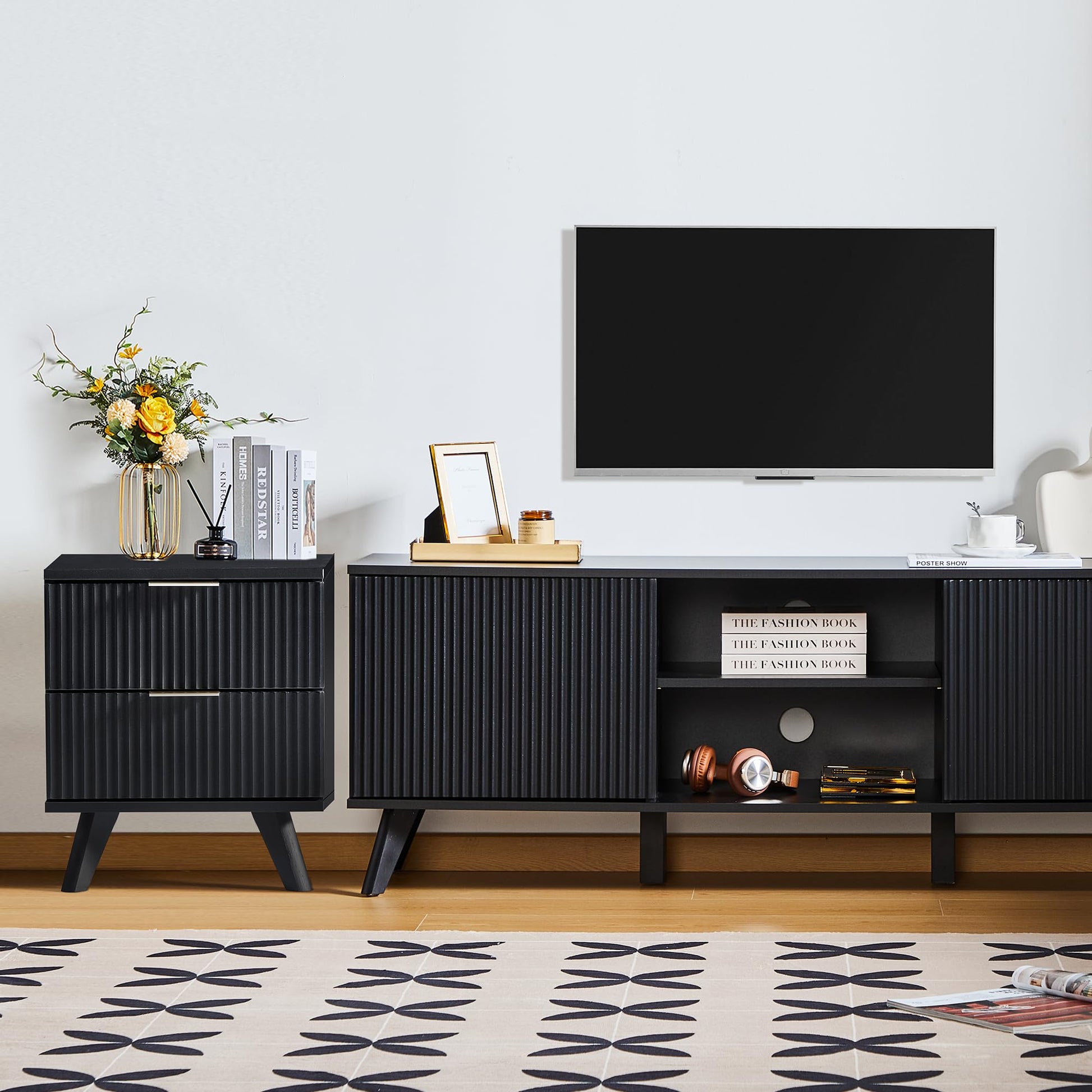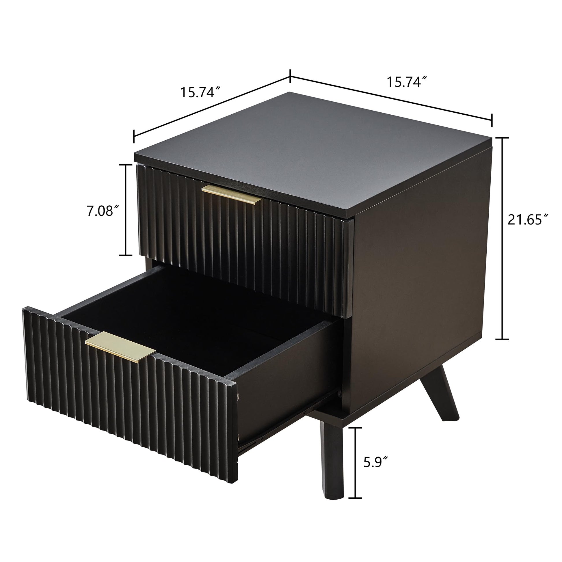 - STYLISH DESIGN: The wood 2 drawers nightstand is fabricated through a special technology, the fluted waveform panel with sleek curved profile design is unique and elegant. Complete with aluminum handles, the smooth metal guide rail allows the drawer to be pulled out and closed easily and silently.The simple and modish design of the bedside furniture matches perfectly with any furnishing style
