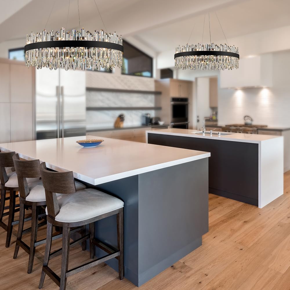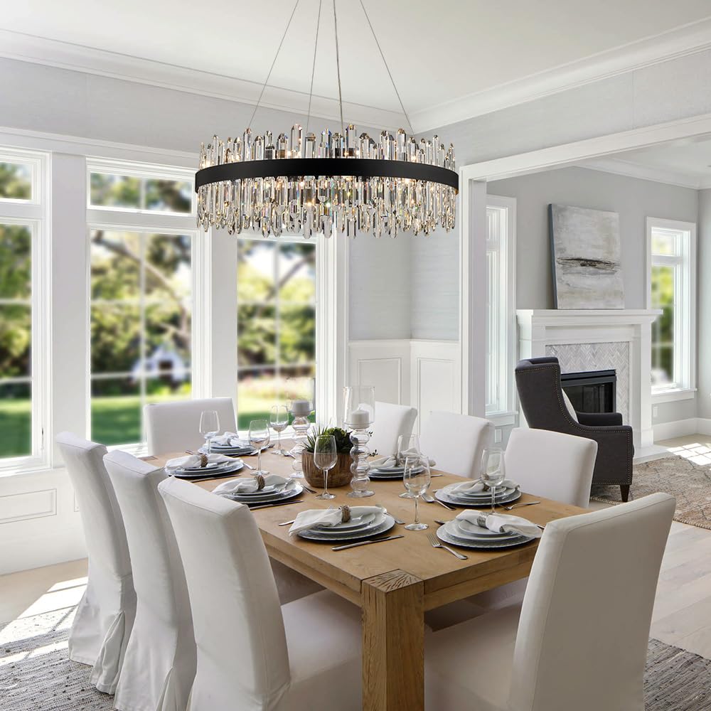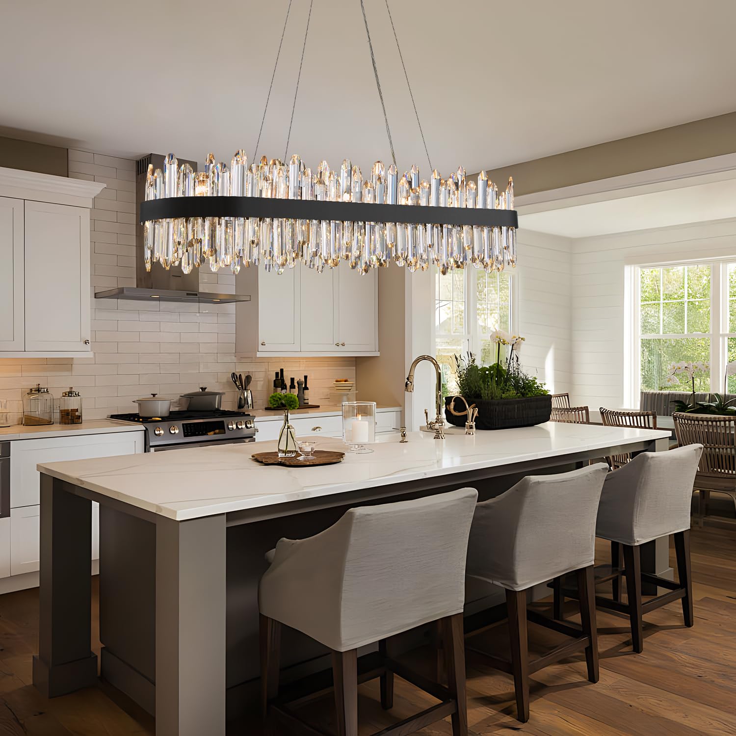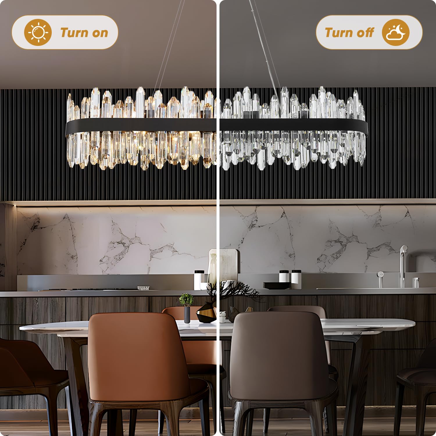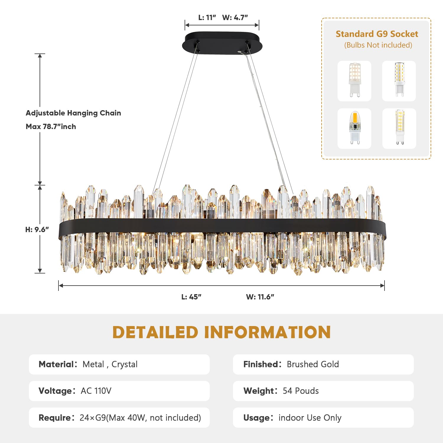 - 【Modern Gold Chandelier】: This Gold Oval Crystal Chandelier Created with K9 crystal and quality metal which is suitable for any decoration styles. Creates warm & soft light atmosphere.Suitable for dining room, living room, kitchen island, bedroom, hallway, office, entry, foyer, staircase, etc