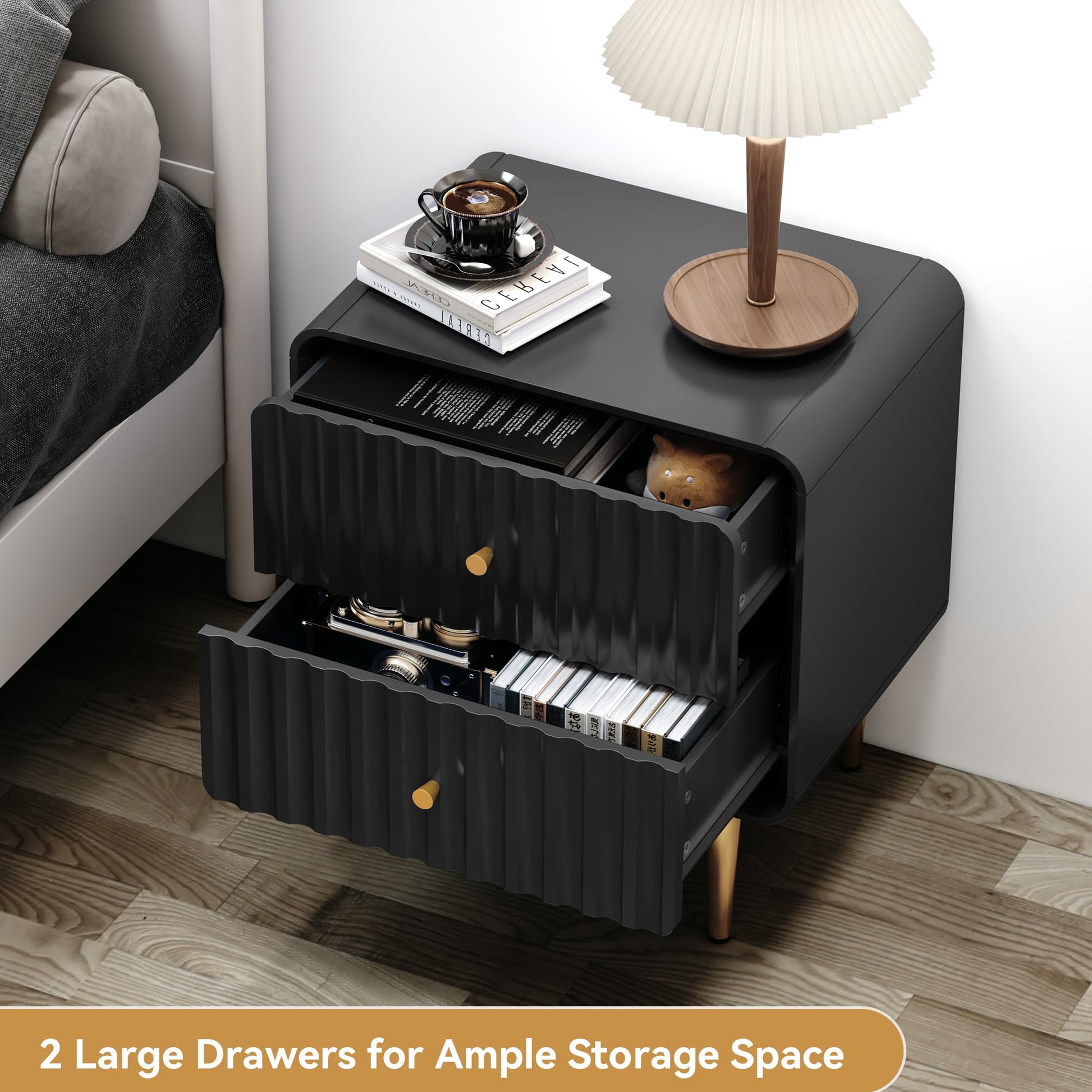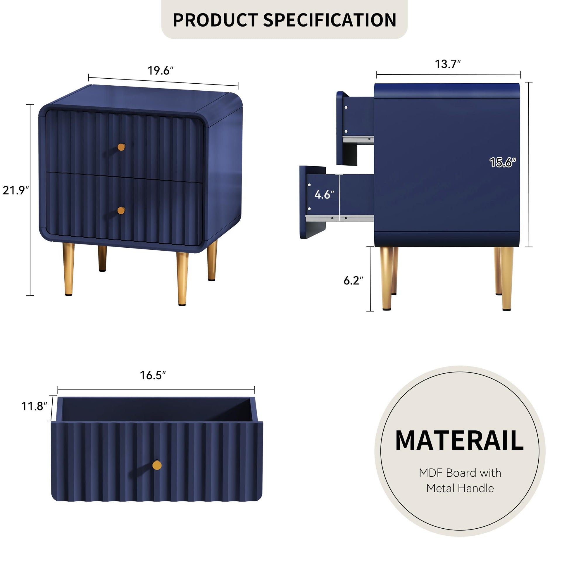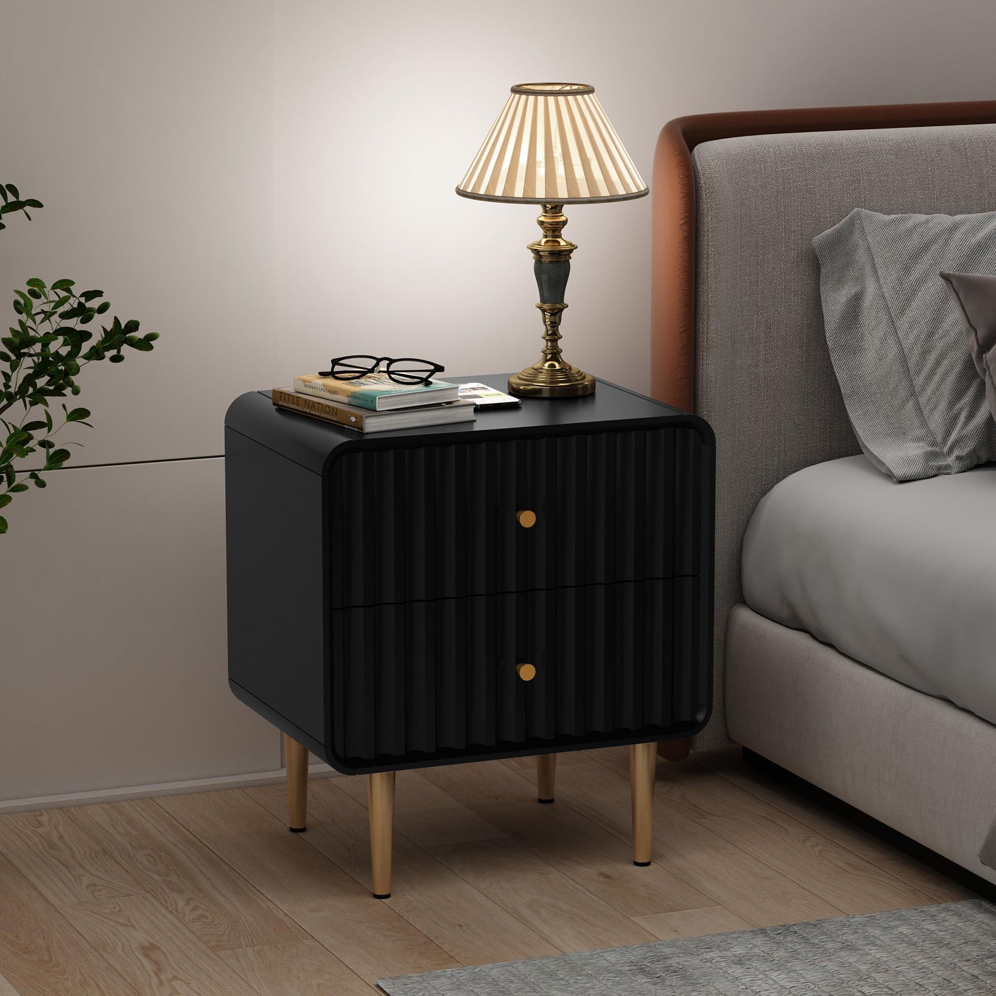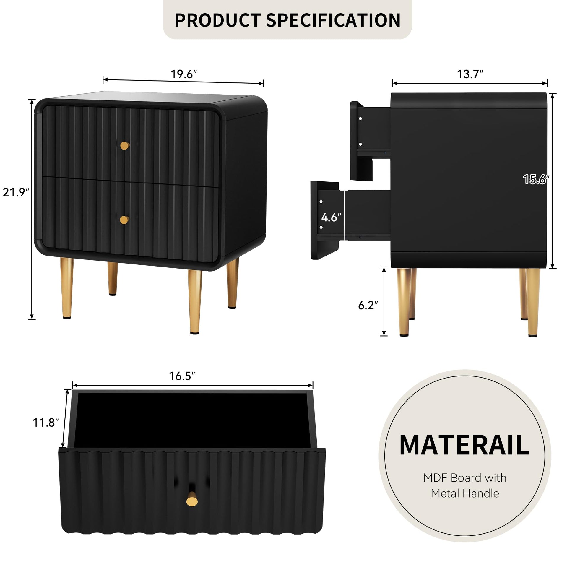 - 【Attractive Modern Design for Various styles of Decoration】 The classic white with simple fluted water ripple pattern and combination with matte gold handle and legs design, this Night Stand brings charming to any room. Whether you prefer a modern or vintage style, it effortlessly blends with your bedroom decor.