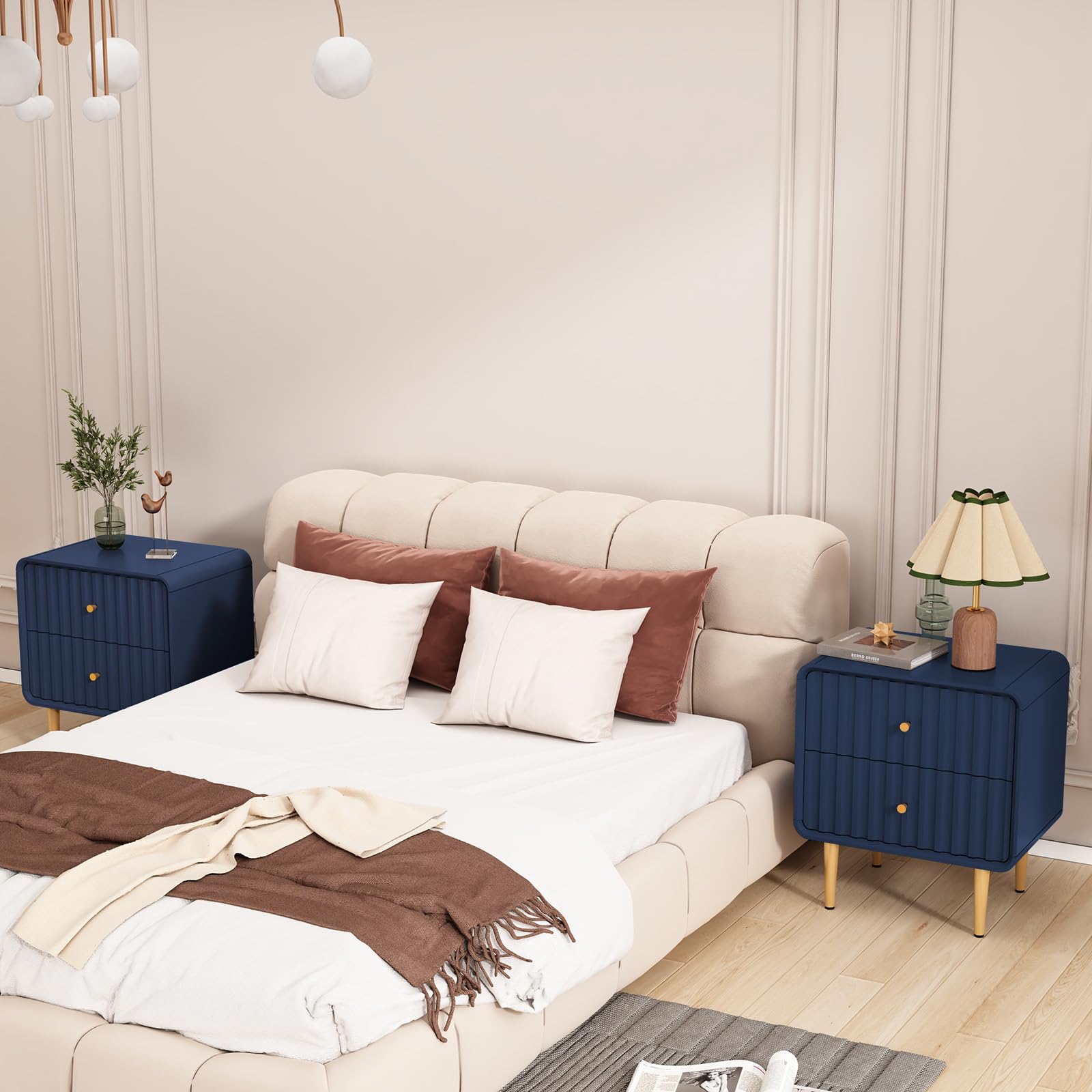 HLR Modern Nightstand Set of 2, Fluted Bed Side Table with 2 Drawers Storage, Wood End Table with Gold Metal Handle, White Night Stands for Bedroom