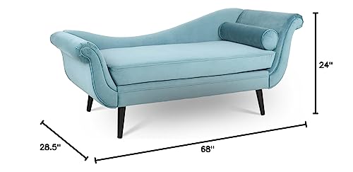 HomSof Modern ArmLess Chaise Lounge Indoor Black Upholstered Reclining Chair with Rolled Accent Pillow and Solid Wood Legs