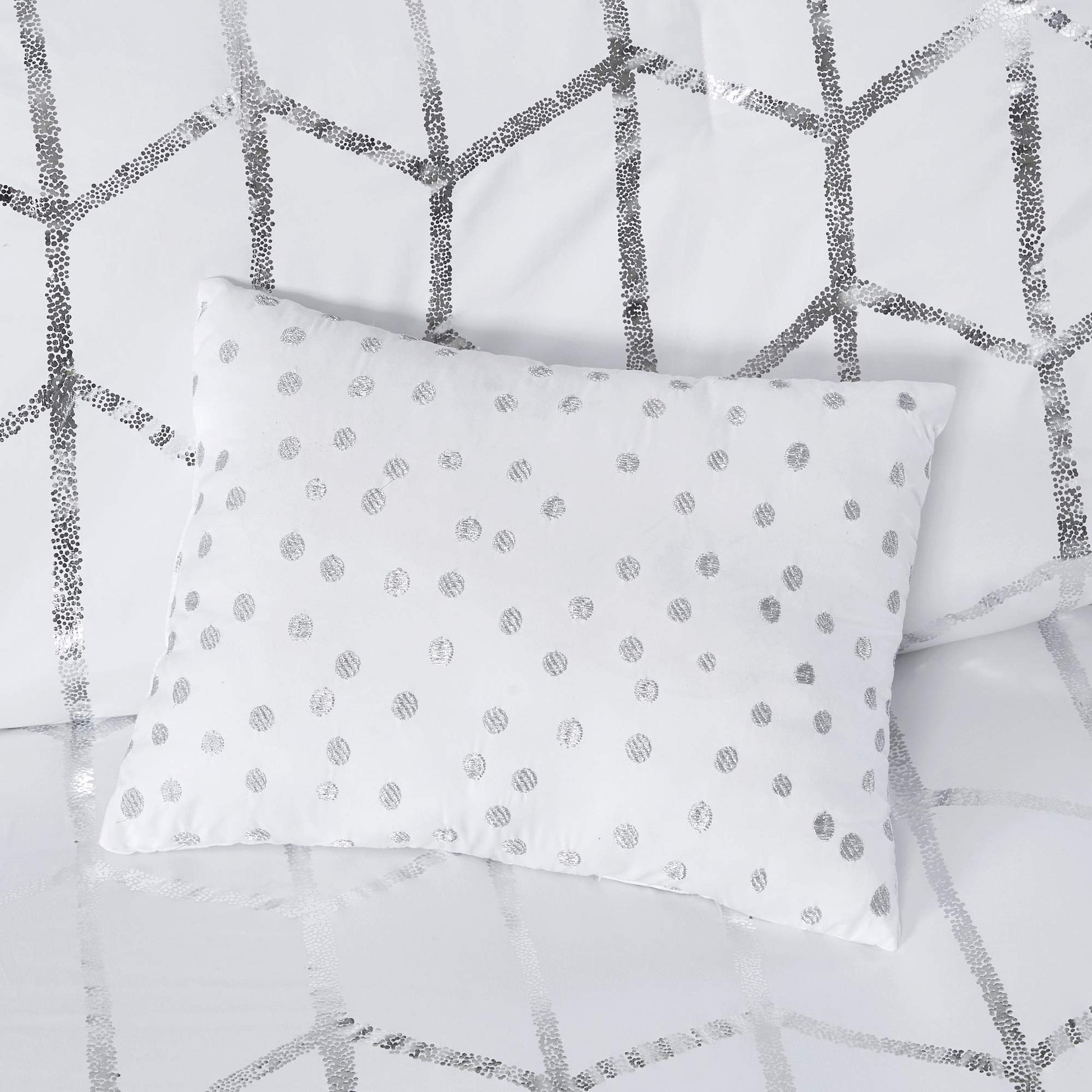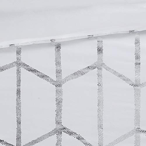 Intelligent Design, Soft Microfiber Comforter Modern Geometric Metallic Bed Set, Full/Queen, Grey/Silver