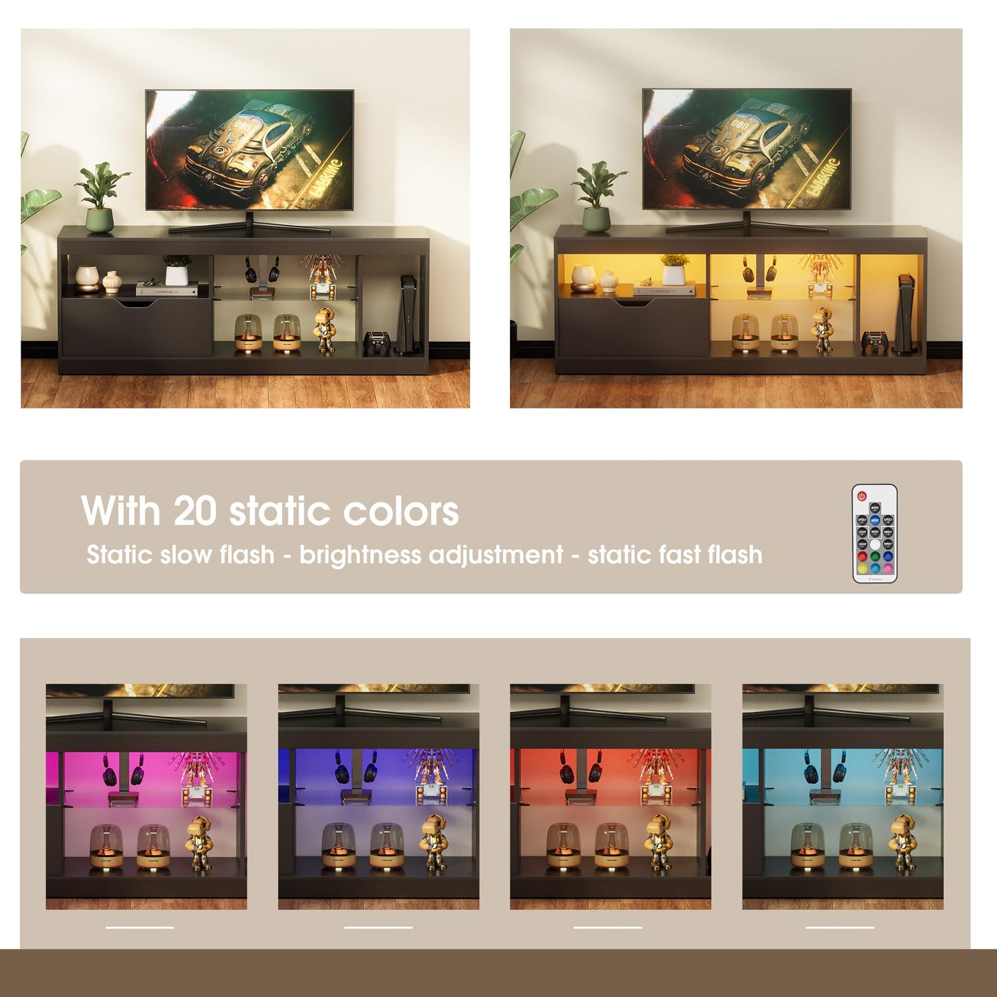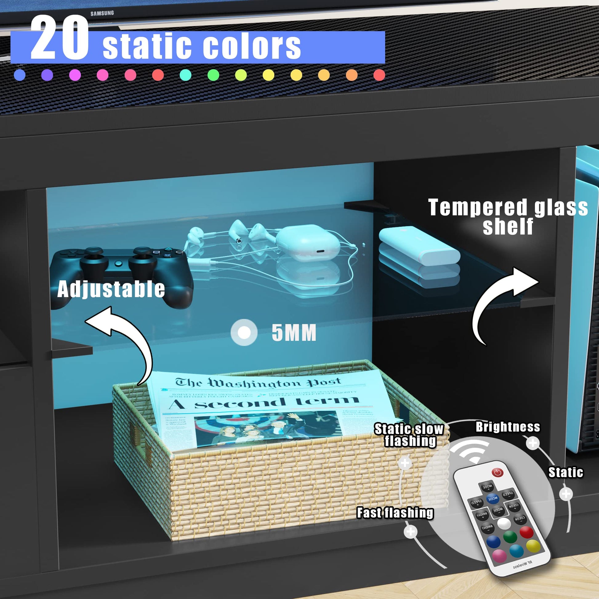 - Remote Control LED: This LED TV Cabinet with 20-color LED lights and 22 dynamic modes is ideal for home lovers. It is compatible with various places and adjusts the lights of different colors according to different preferences, making the whole home show different styles of charm.