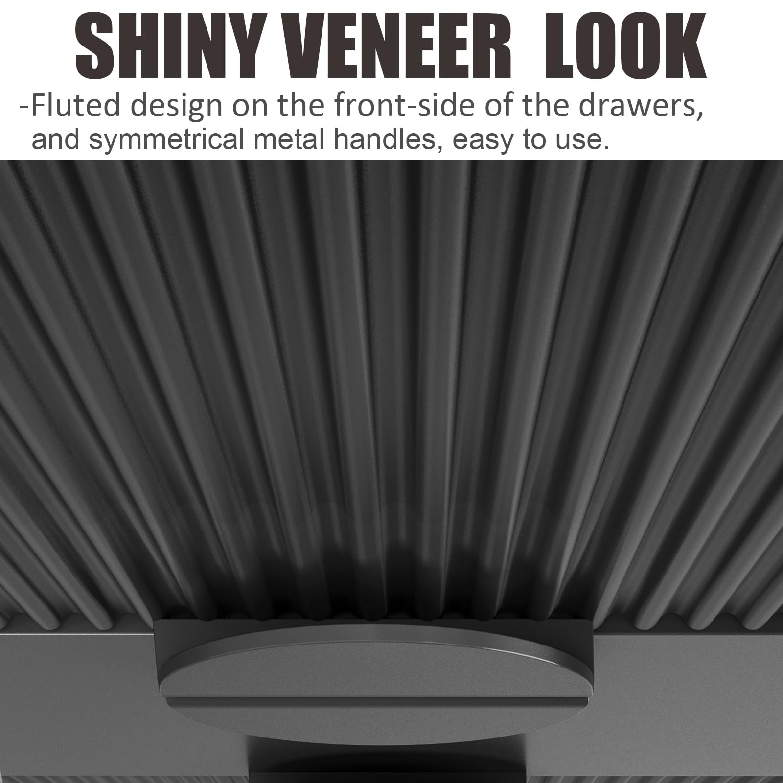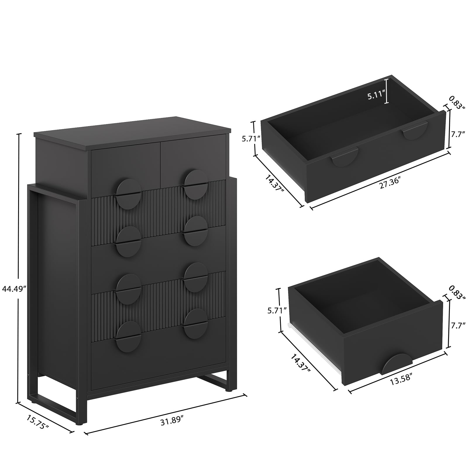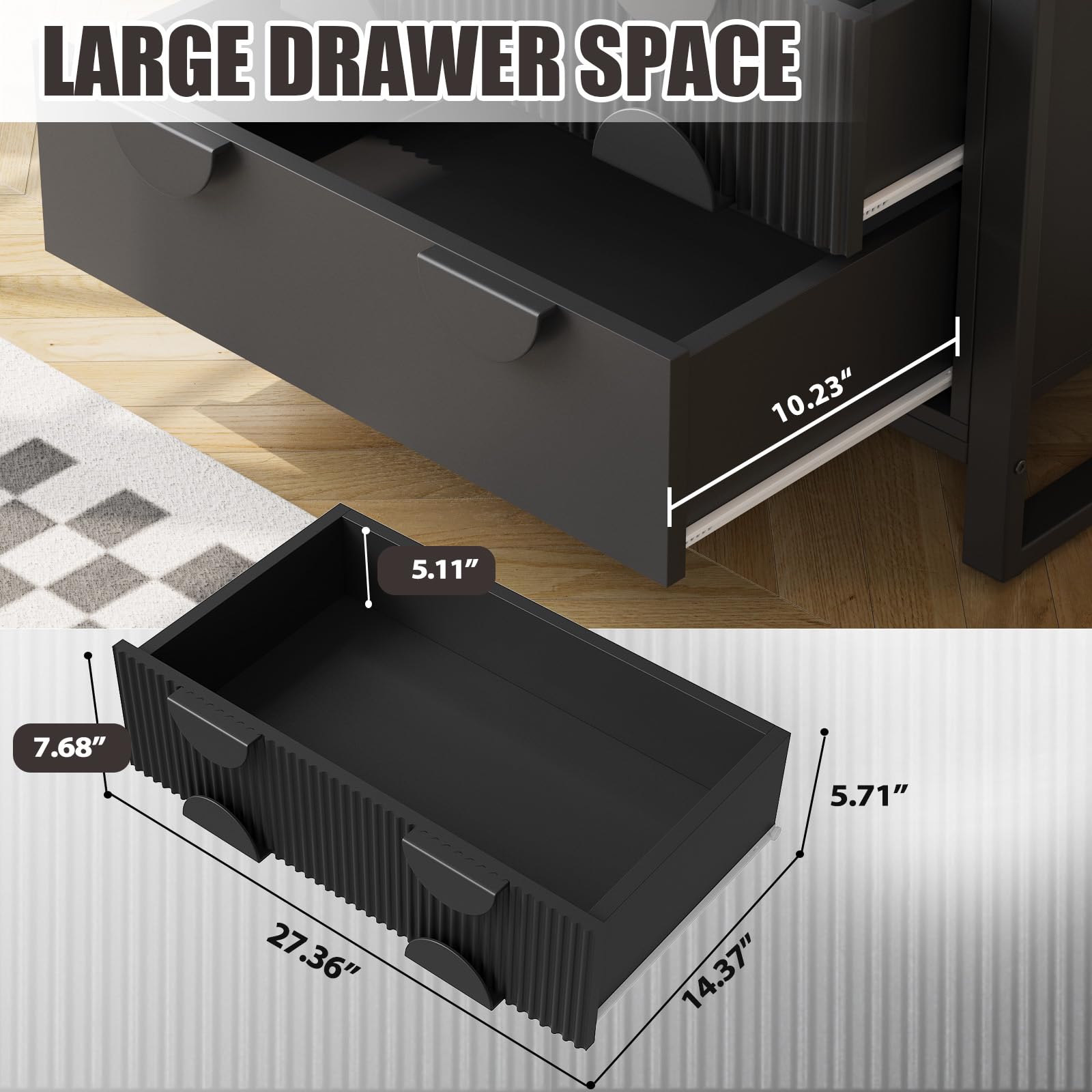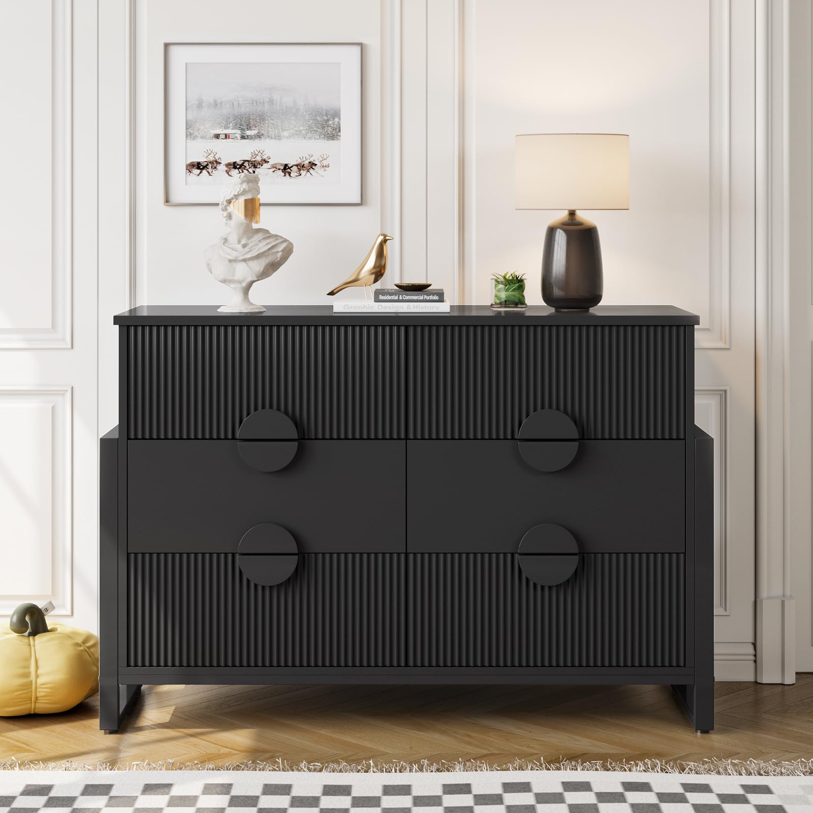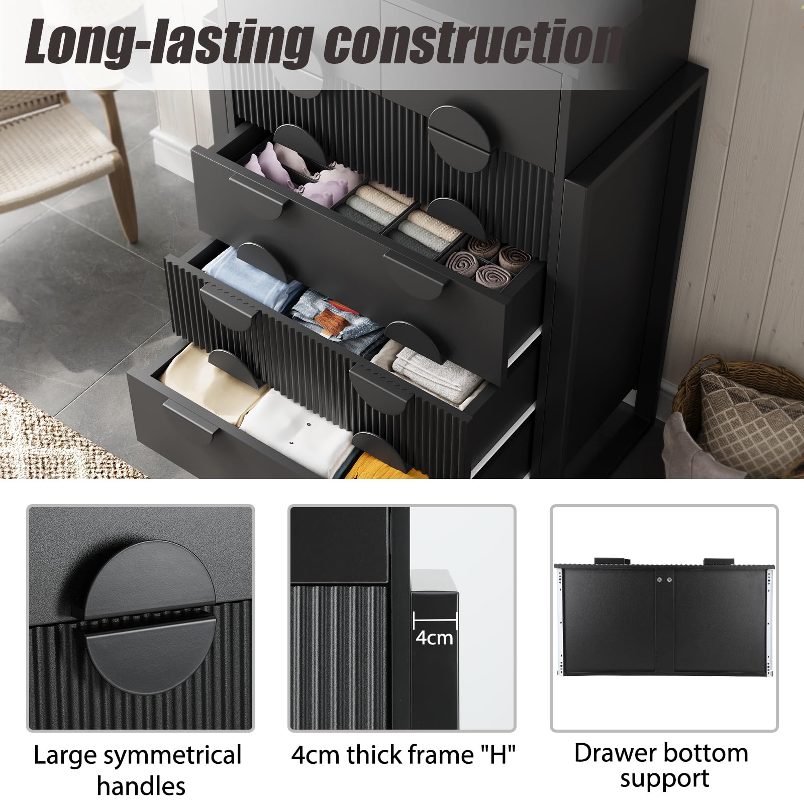 - 【Timeless Elegance Meets Modern Chic】The dresser showcases a distinctive wave-like fluted panel that significantly enhances its texture and spatial presence, making it a truly outstanding piece. Its wide round metal handle and raised thick frame "H" legs infuse a contemporary vibe, while also ensuring a safe environment for children,and won’t snag your sleeves.