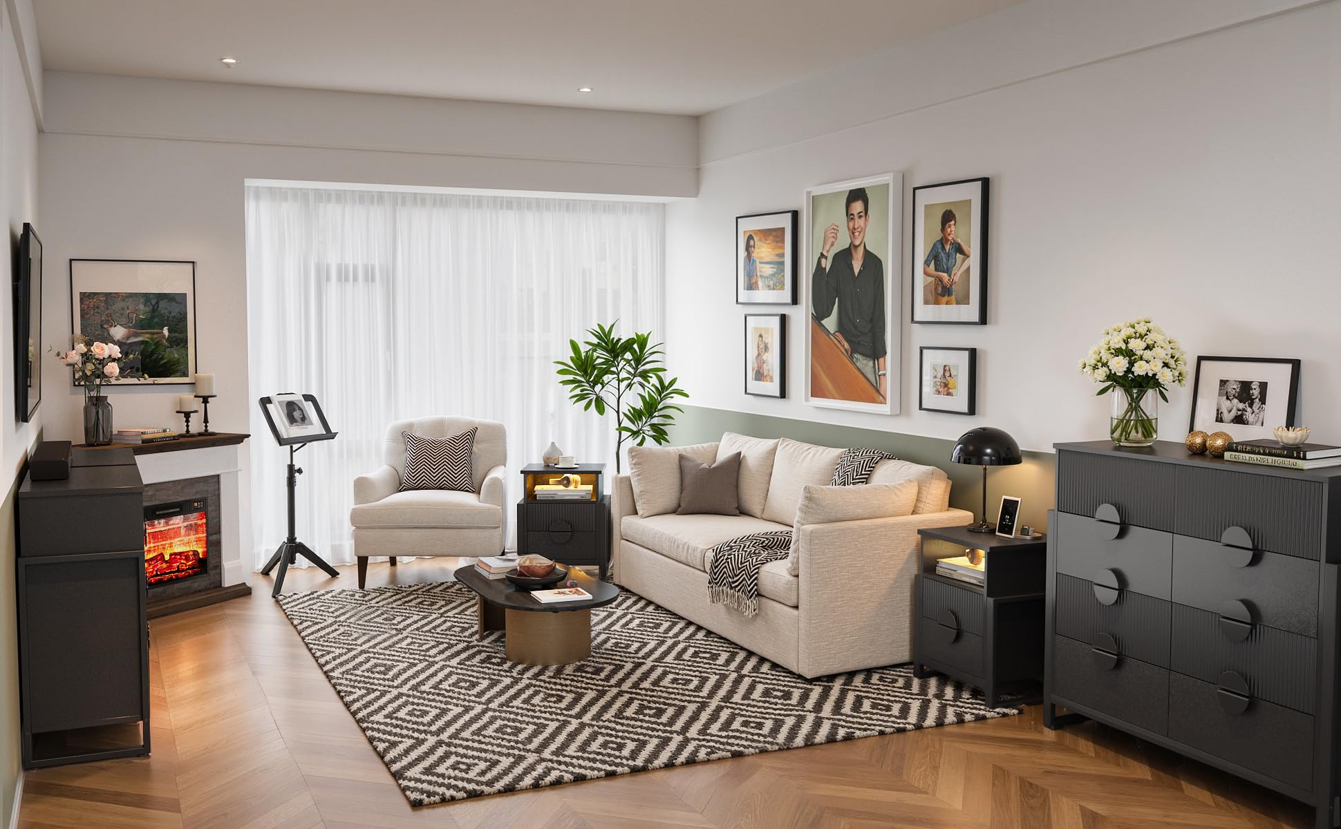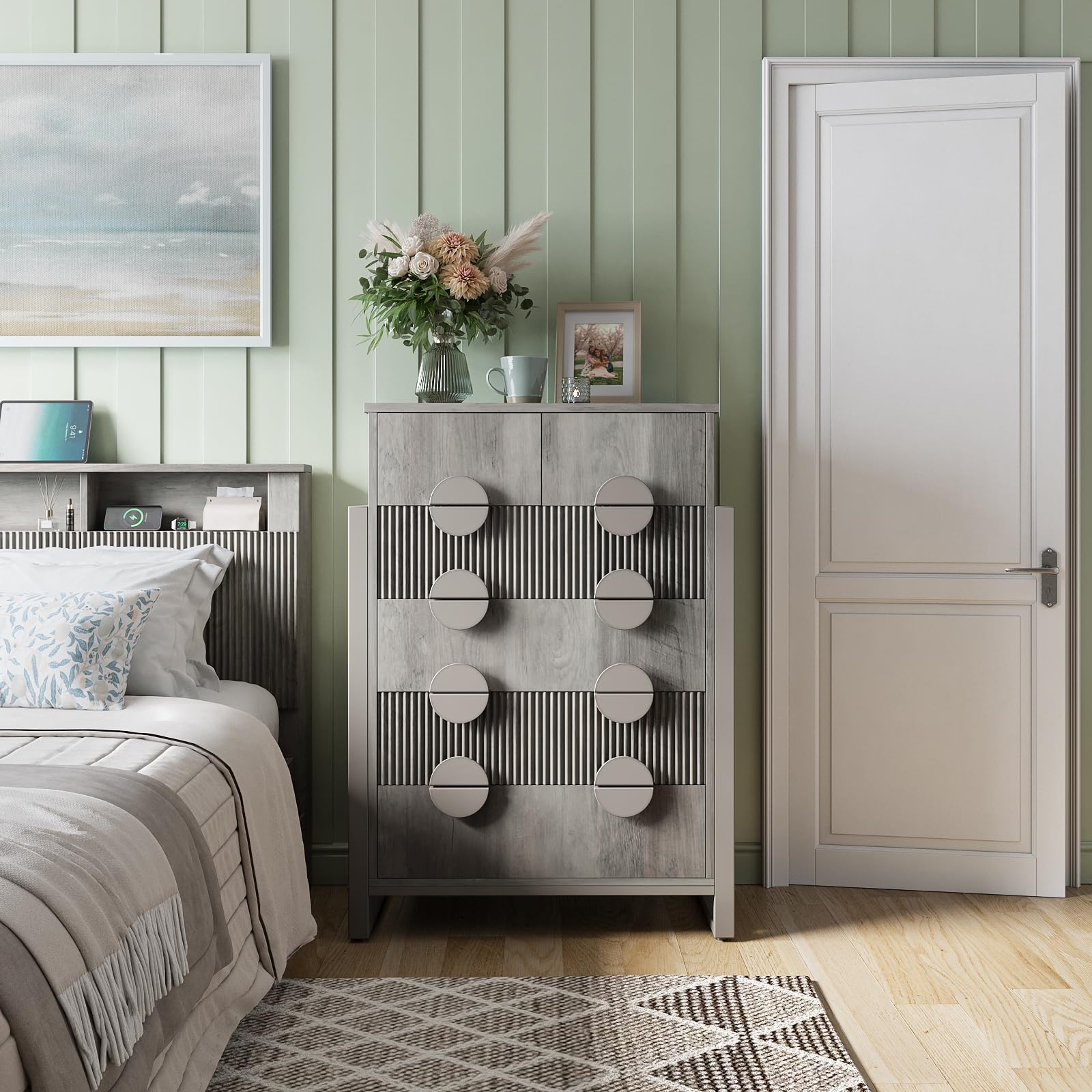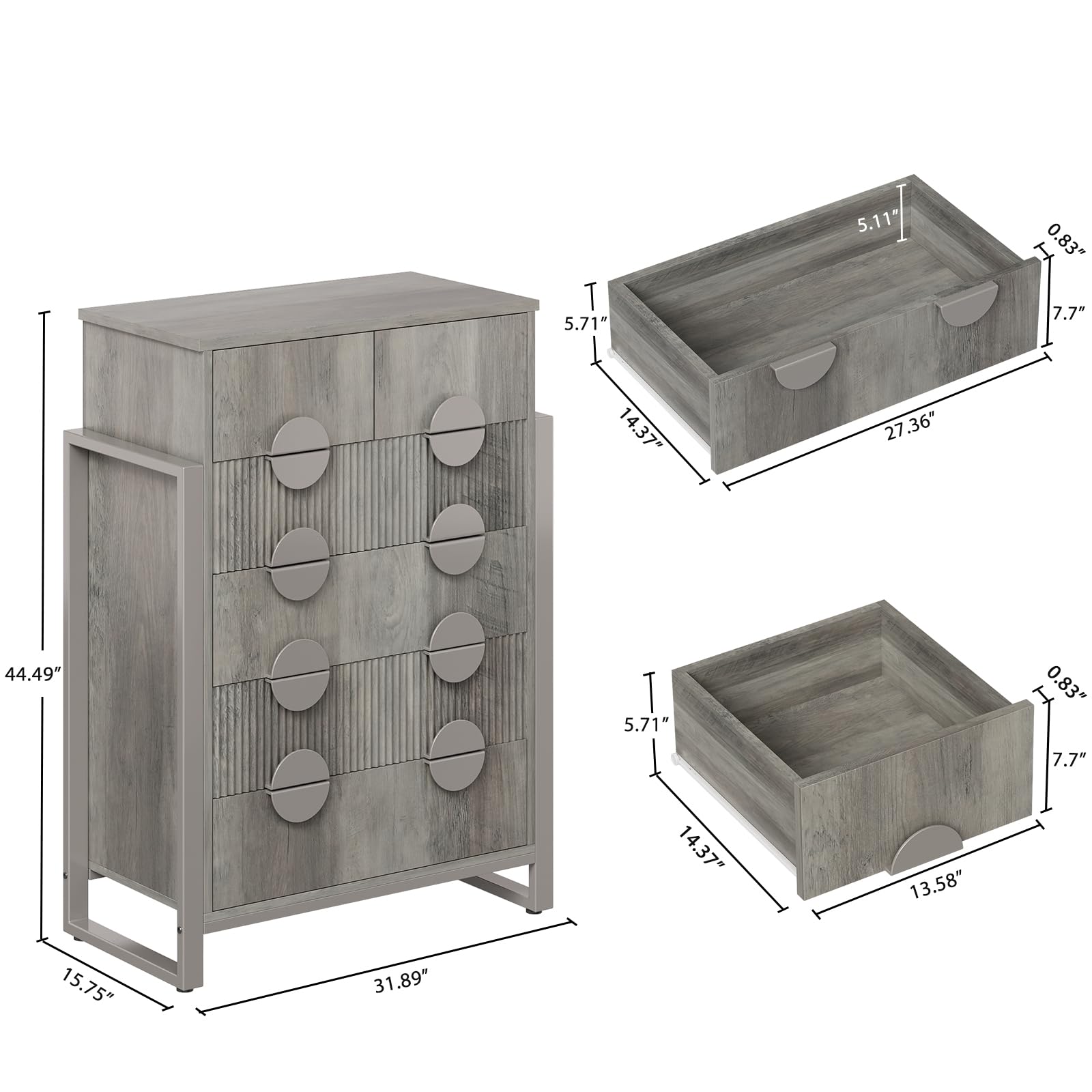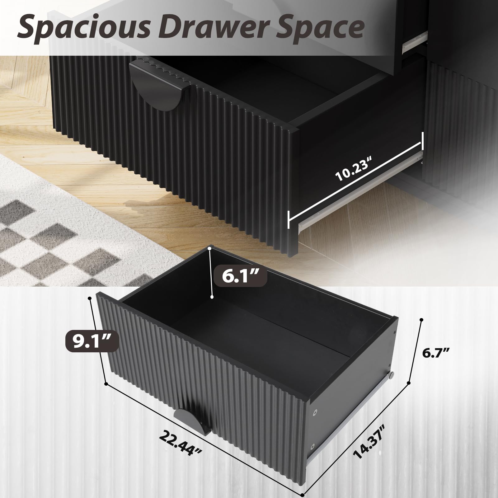 - 【Timeless Elegance Meets Modern Chic】The dresser showcases a distinctive wave-like fluted panel that significantly enhances its texture and spatial presence, making it a truly outstanding piece. Its wide round metal handle and raised thick frame "H" legs infuse a contemporary vibe, while also ensuring a safe environment for children,and won’t snag your sleeves.
