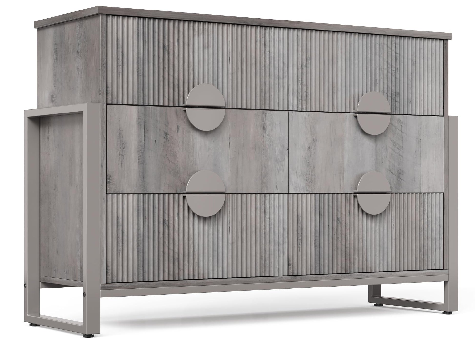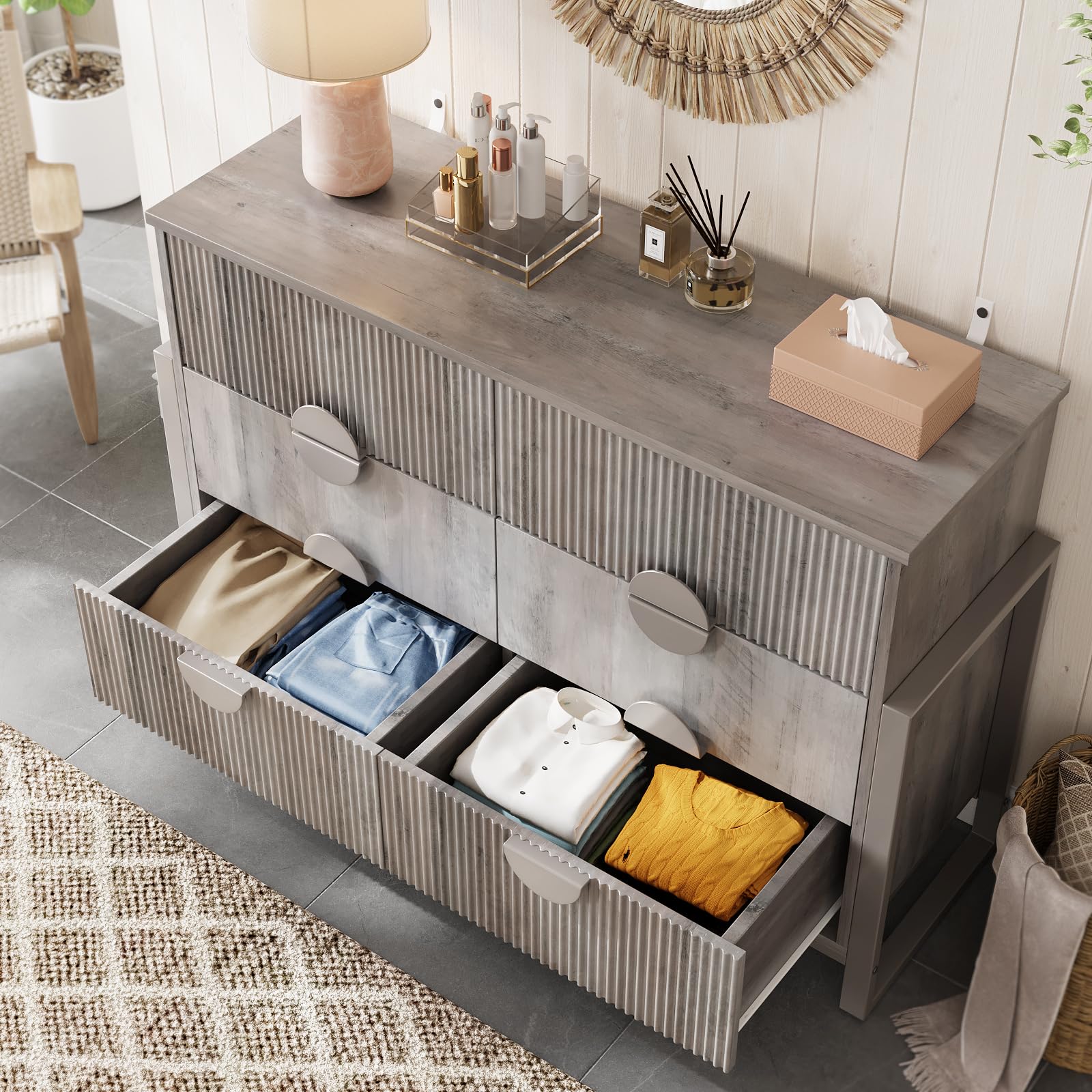 LGHM Fluted Gray Dresser for Bedroom, 50" Wide Chest of Drawers, Modern 6 Deep Drawers Dresser with Raised H Legs -Curved Profile Design, Easy Round Handles for Bedroom,Livingroom, Hallway, Gray