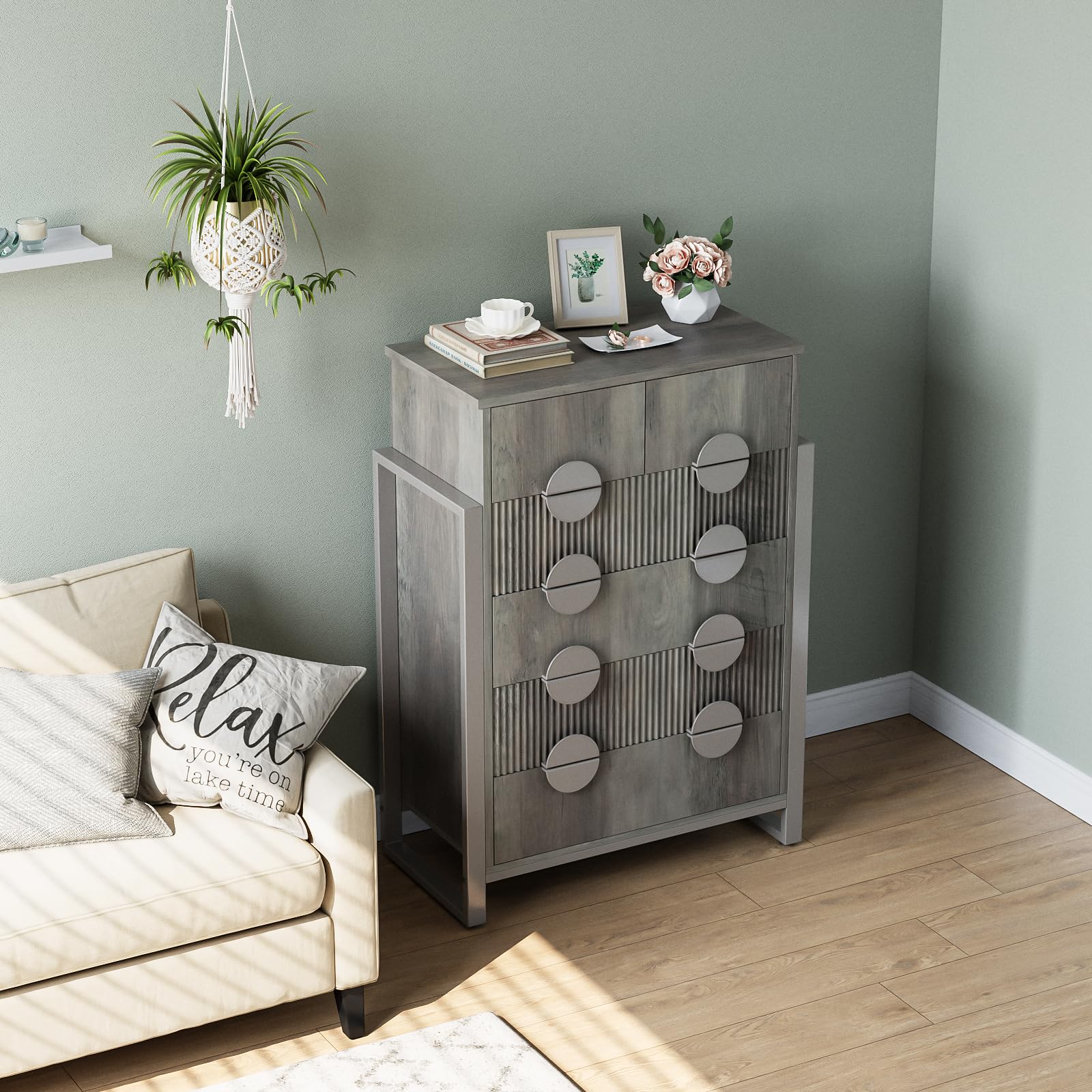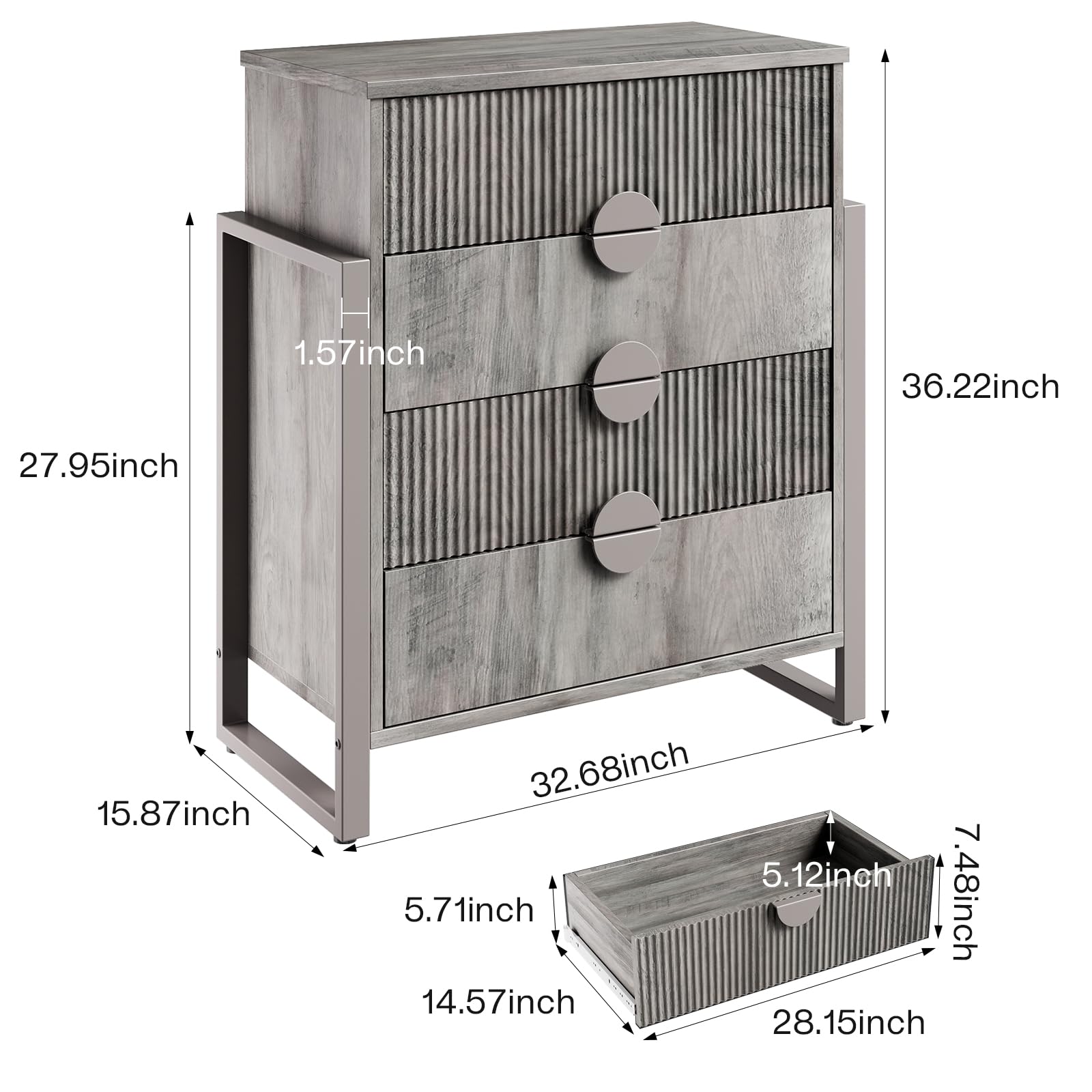 - 【Stable, Durable and Textured】 Constructed from optimal MDF, P2 engineered wood and coated metal pull. Specially, the fluted panel uses blister molding tech. Notably, both outside and inside,the cabinet's stability is reinforced by the innovative inclusion of a steel support frame, guaranteeing a reliable and sturdy piece of furniture.