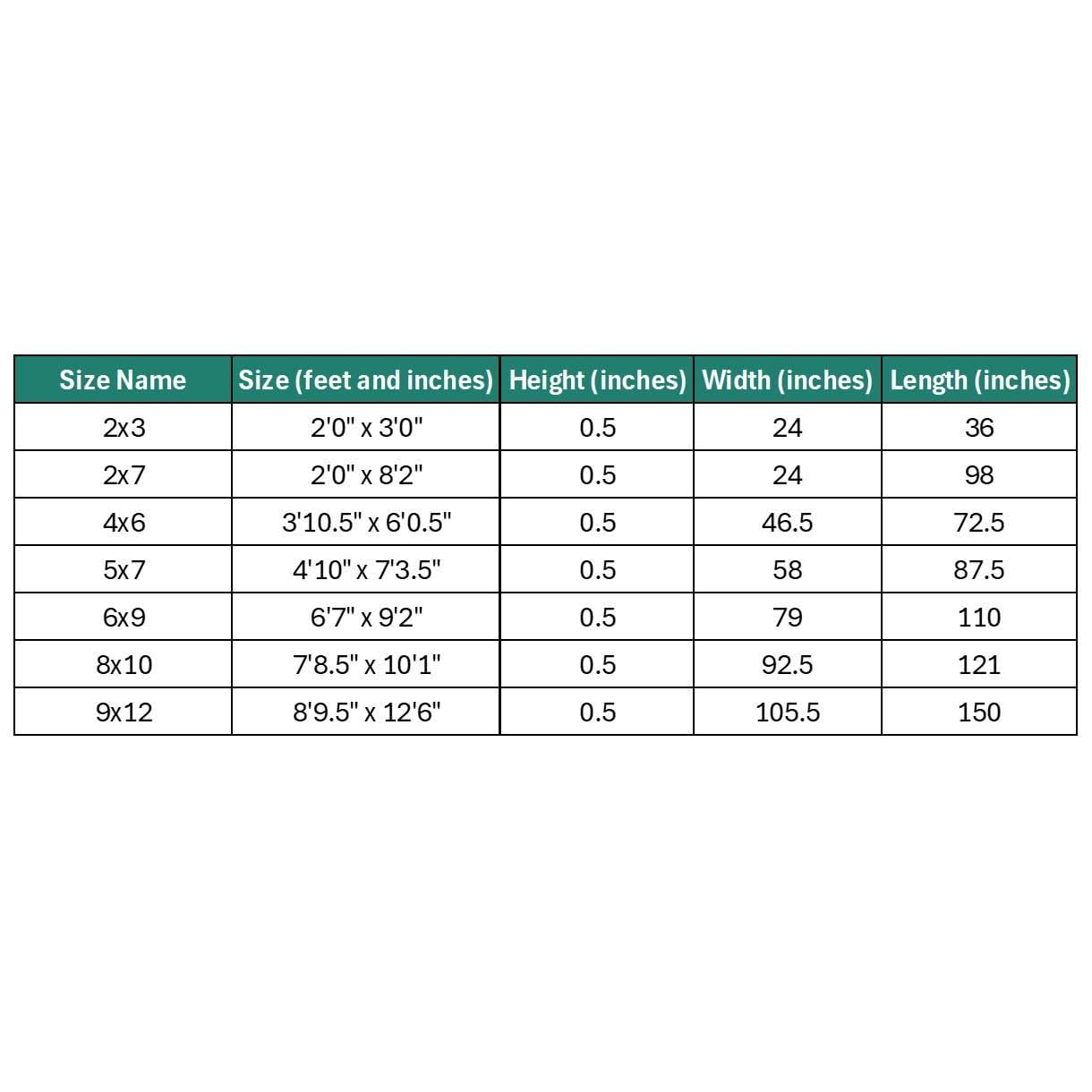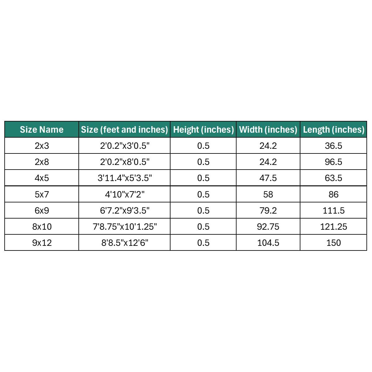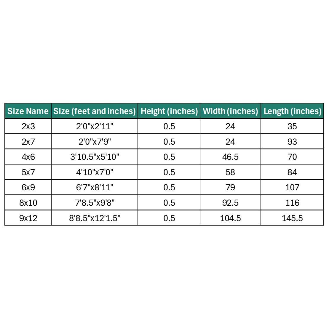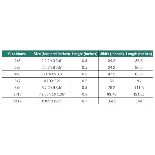 - Actual dimensions of 5x7 rug: 4 feet 10 inches width by 7 feet 3 inches length. Based on where you are standing, colors may appear darker, lighter, or muted. Brush the fibers with your hand in one direction for your desired effect.