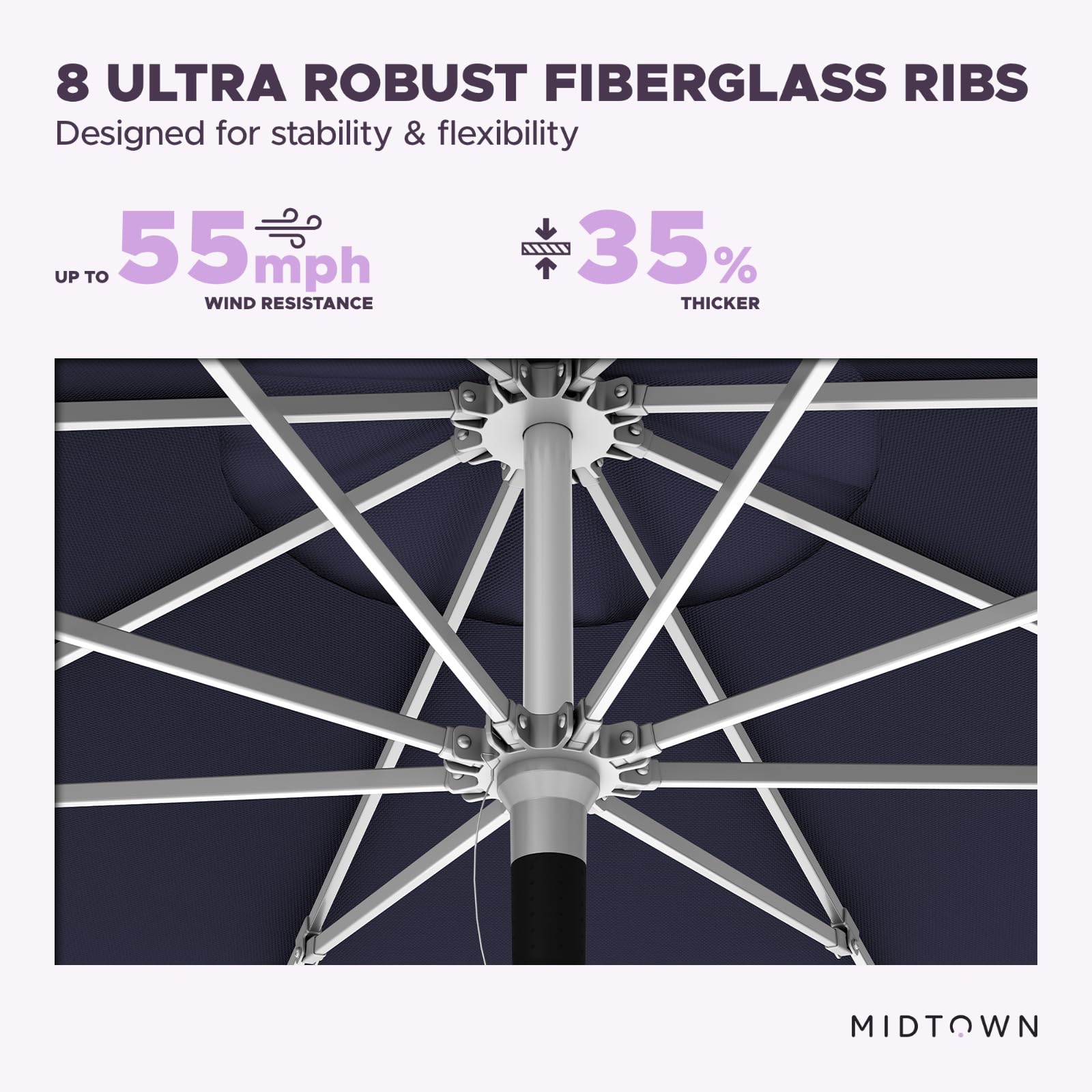 - [ PREMIUM QUALITY ]: Our Patented Push System: The idea of having a one piece pole instead of multiple smaller sections when buying a backyard umbrella with a crank mechanism makes this market umbrella the sturdiest of our lineup. A residential patio table umbrella at a commercial grade quality.