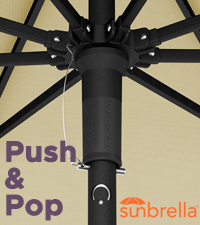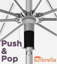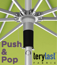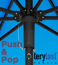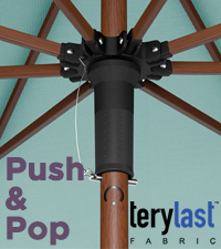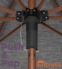 - [ WHAT YOU NEED ]: Easy and Sturdy Push To Open Push & Pop Mechanism. This deck umbrella is an outside umbrella that boasts an incredibly solid mechanical opening system that will keep working for the years to come. No more outdated rope and pulley system. Just push and pop it open. This sun umbrella features high quality fiberglass ribs for optimal flexibily against high winds, and is a great picnic umbrella.