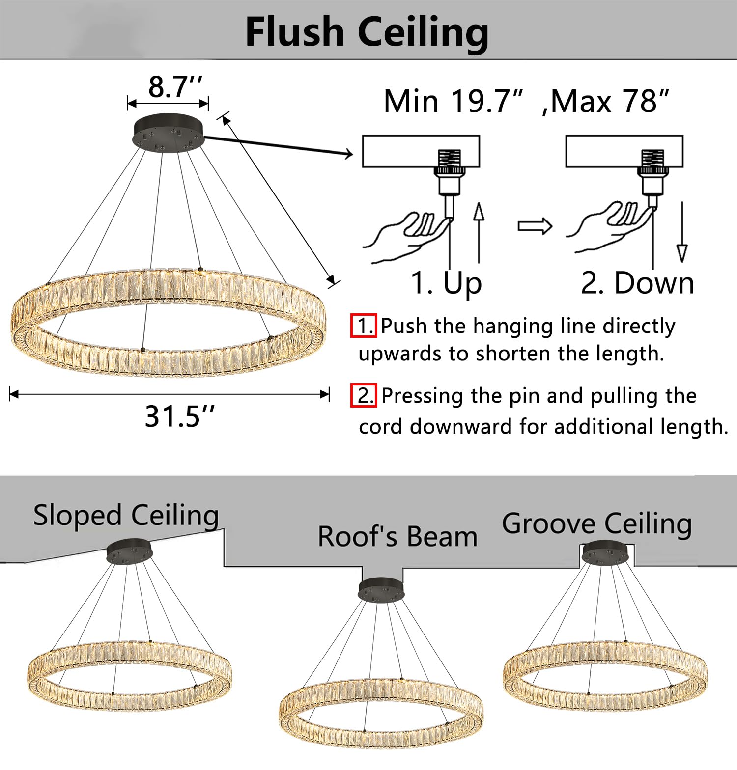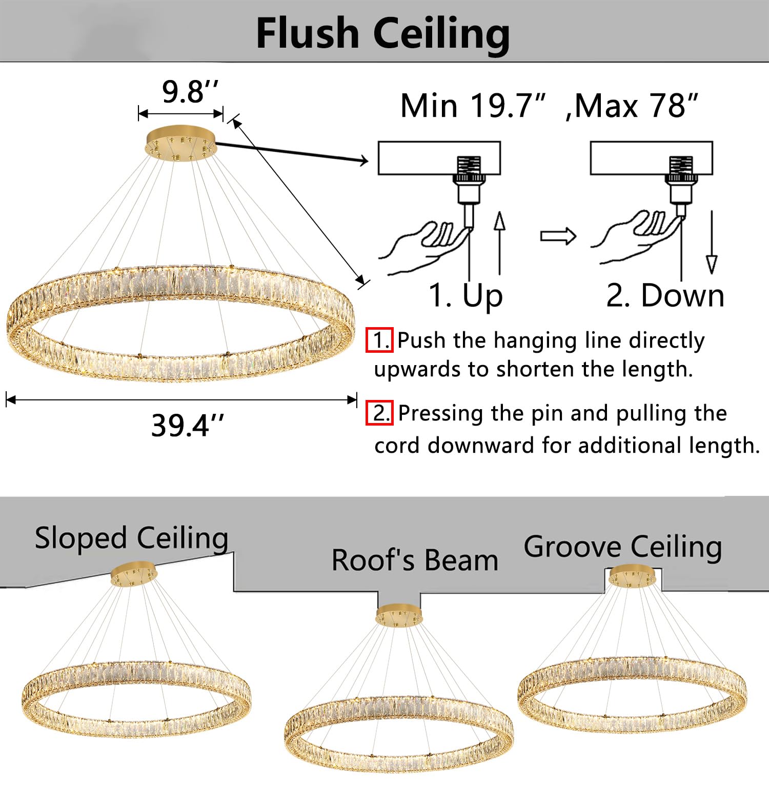 - Energy Saving Chandeliers with Pre-wired and Pre-threaded - One-piece metal ring, no assembly required, comes with all necessary hardware and straightforward instructions for hassle-free installation in living room, dining room, bedroom, kitchen, hallway, staircase, or any other indoor rooms