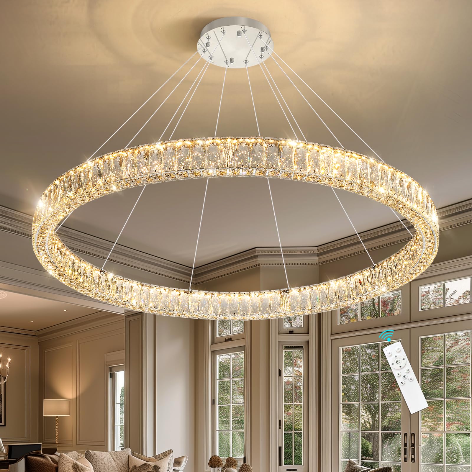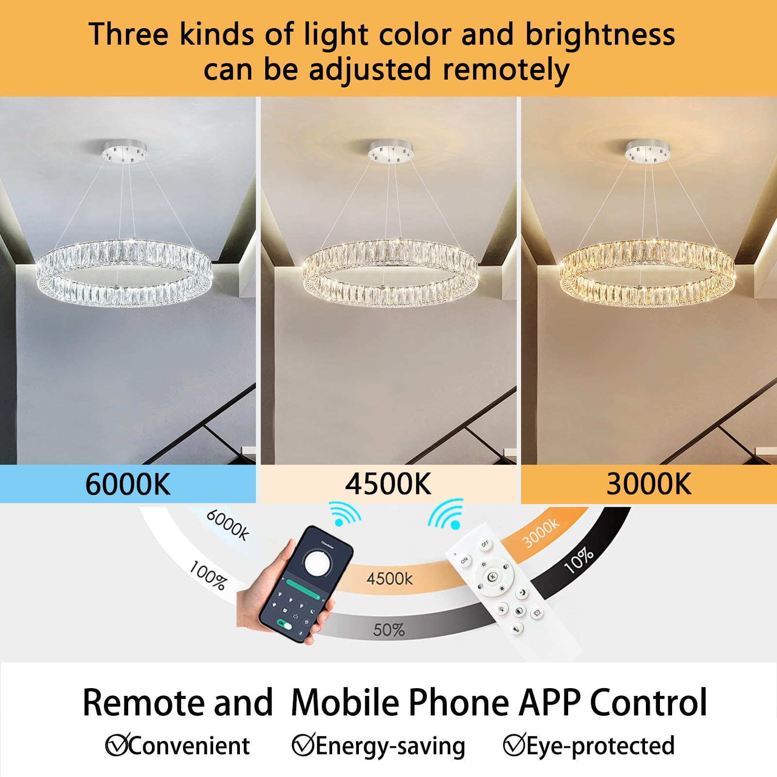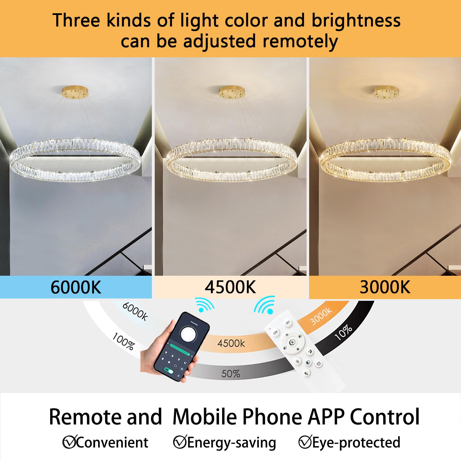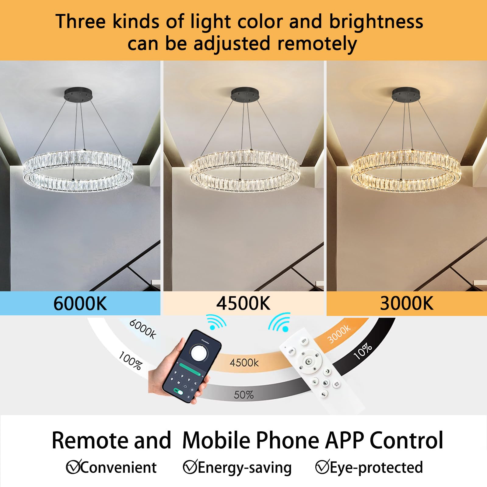 - Remote Dimmable Chandeliers - The chandelier can be used with voltages in the range of AC 110V to 240V. Set lighting color from warm light 2700K to day light 6000K, and dimming dark or bright any time (Note: Chandelier itself has a dimmer, Do not use with any dimming system or dimmer switch)