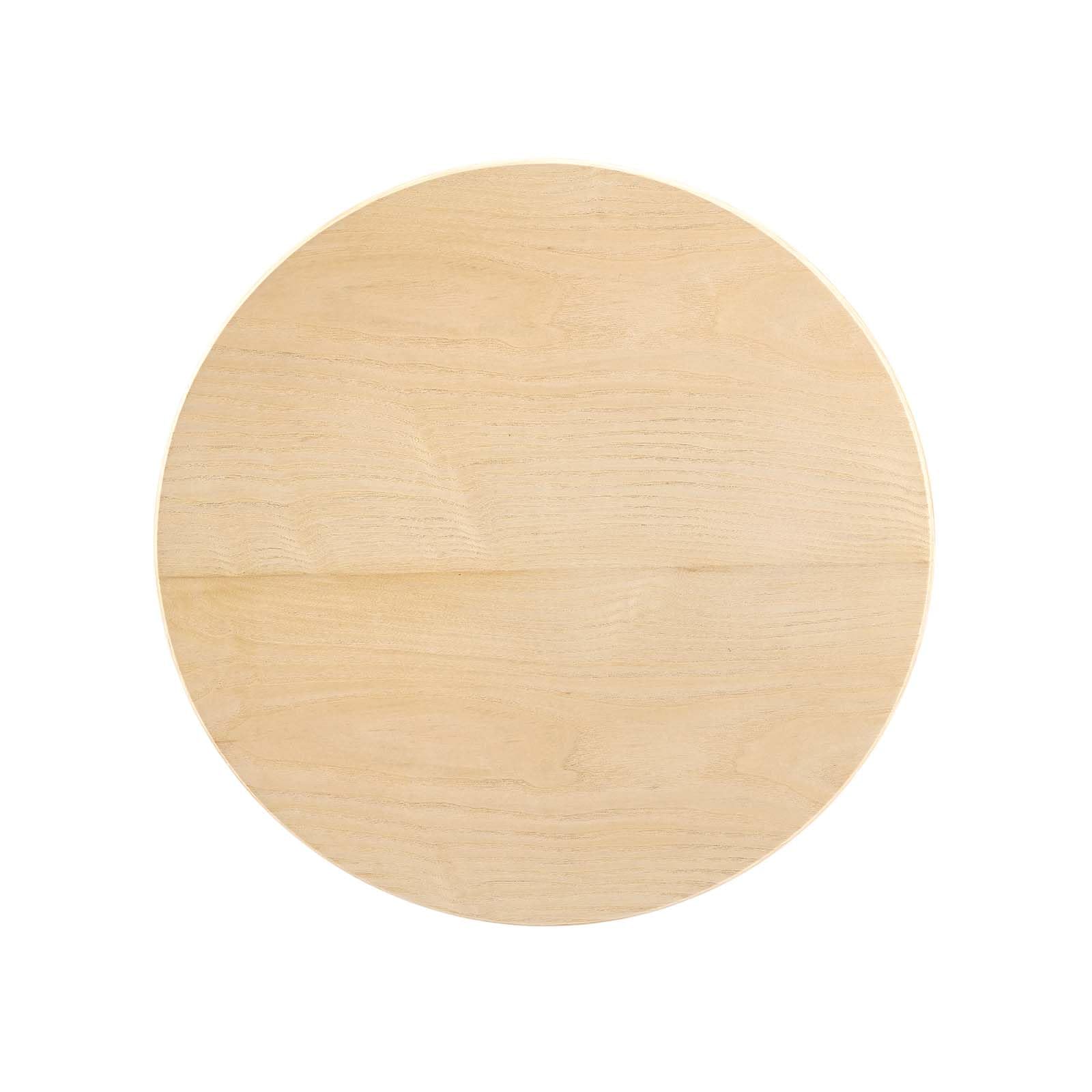 - PEDESTAL BASE - Floating atop a tapered metal base with a chip-resistant powder-coated finish, the round tabletop features a beveled edge and is crafted with durable MDF with wood grain veneer
