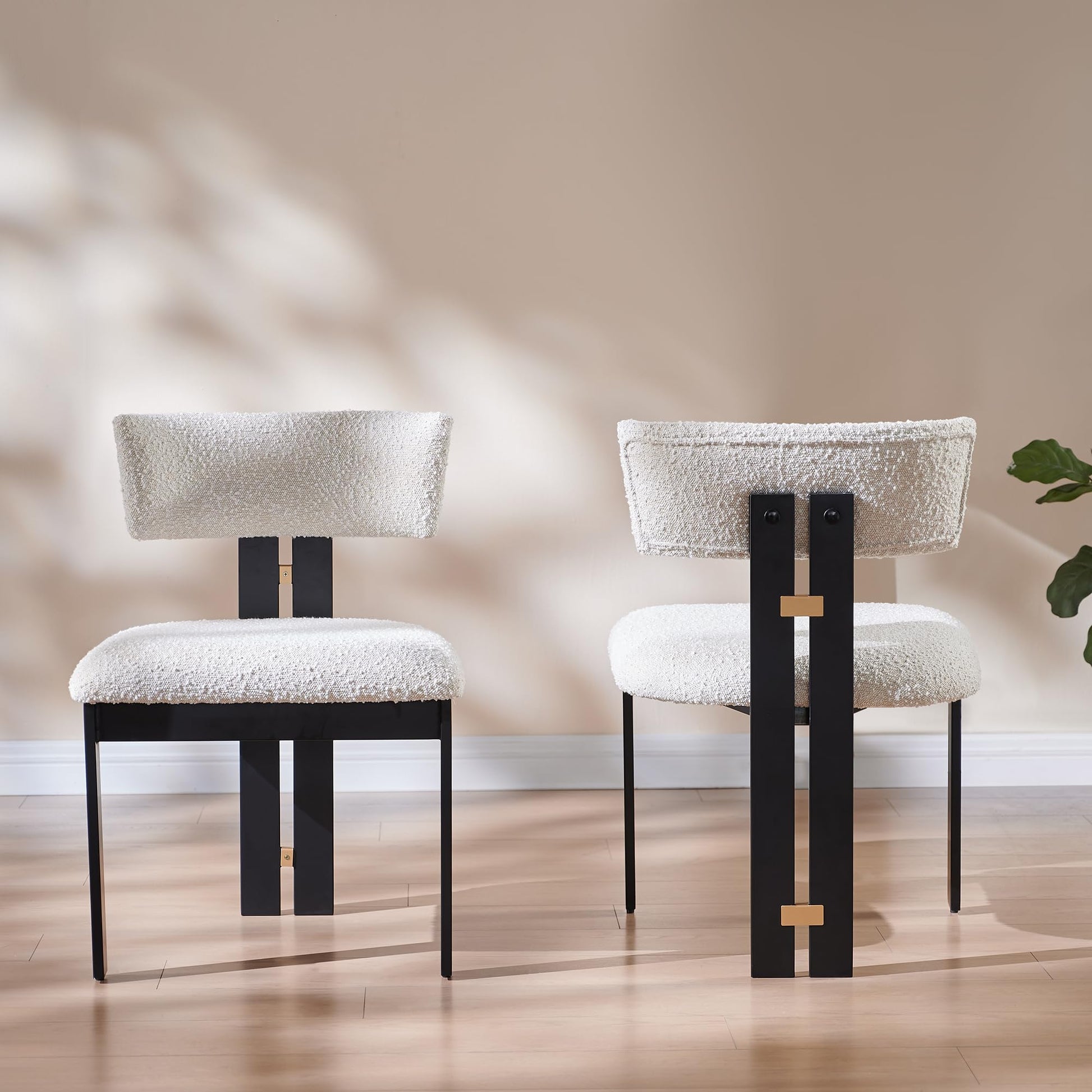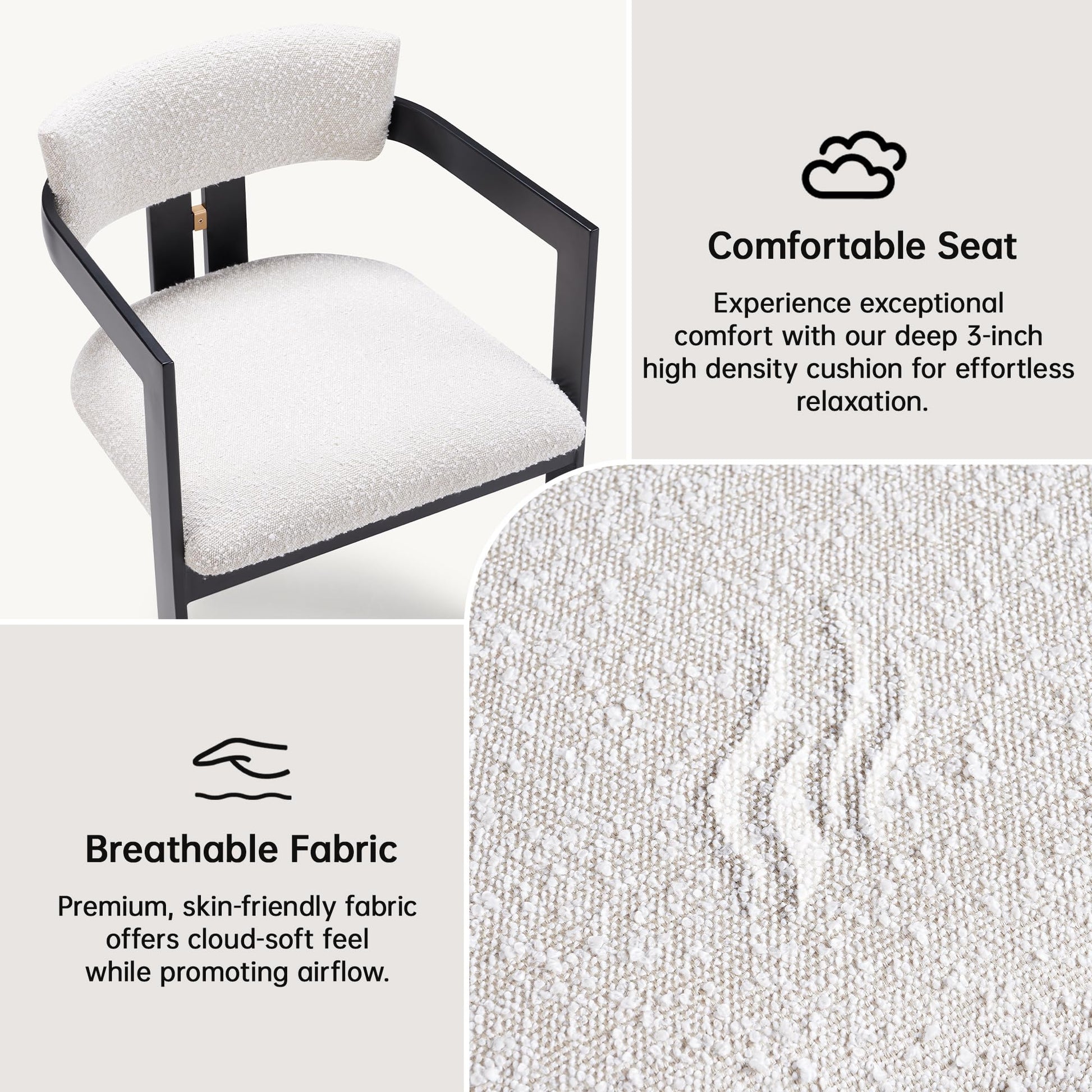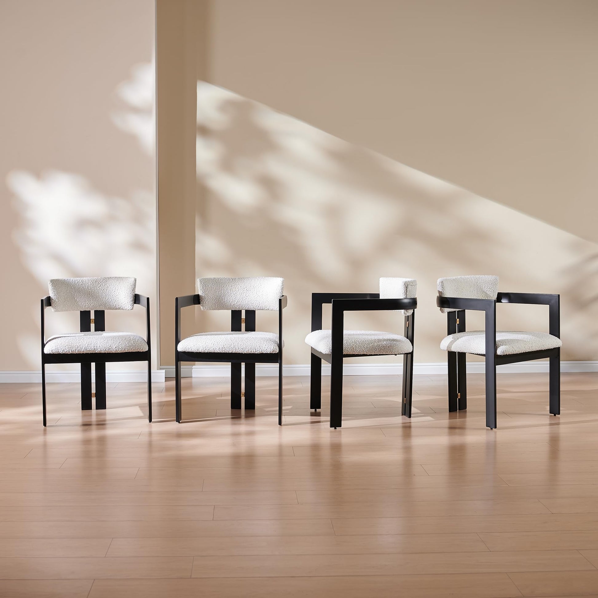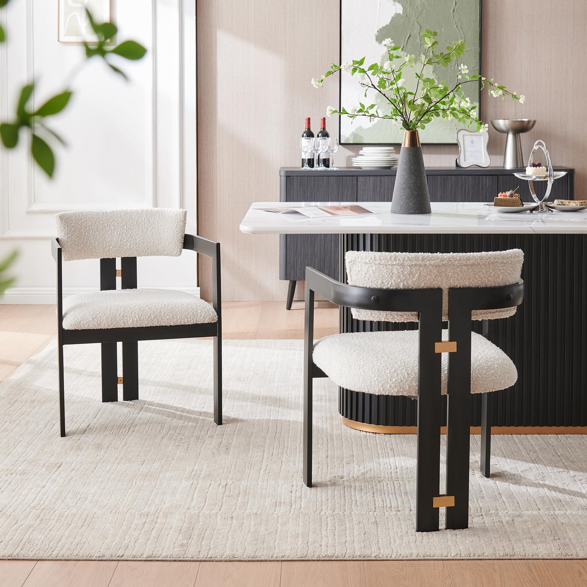 Morden Fort Boucle Dining Chair Set of 4, Upholstered Kitchen Chairs with Metal Frame & Round Back, Barrel Side Chair for Dining Room, Kitchen, Living Room, Apartments