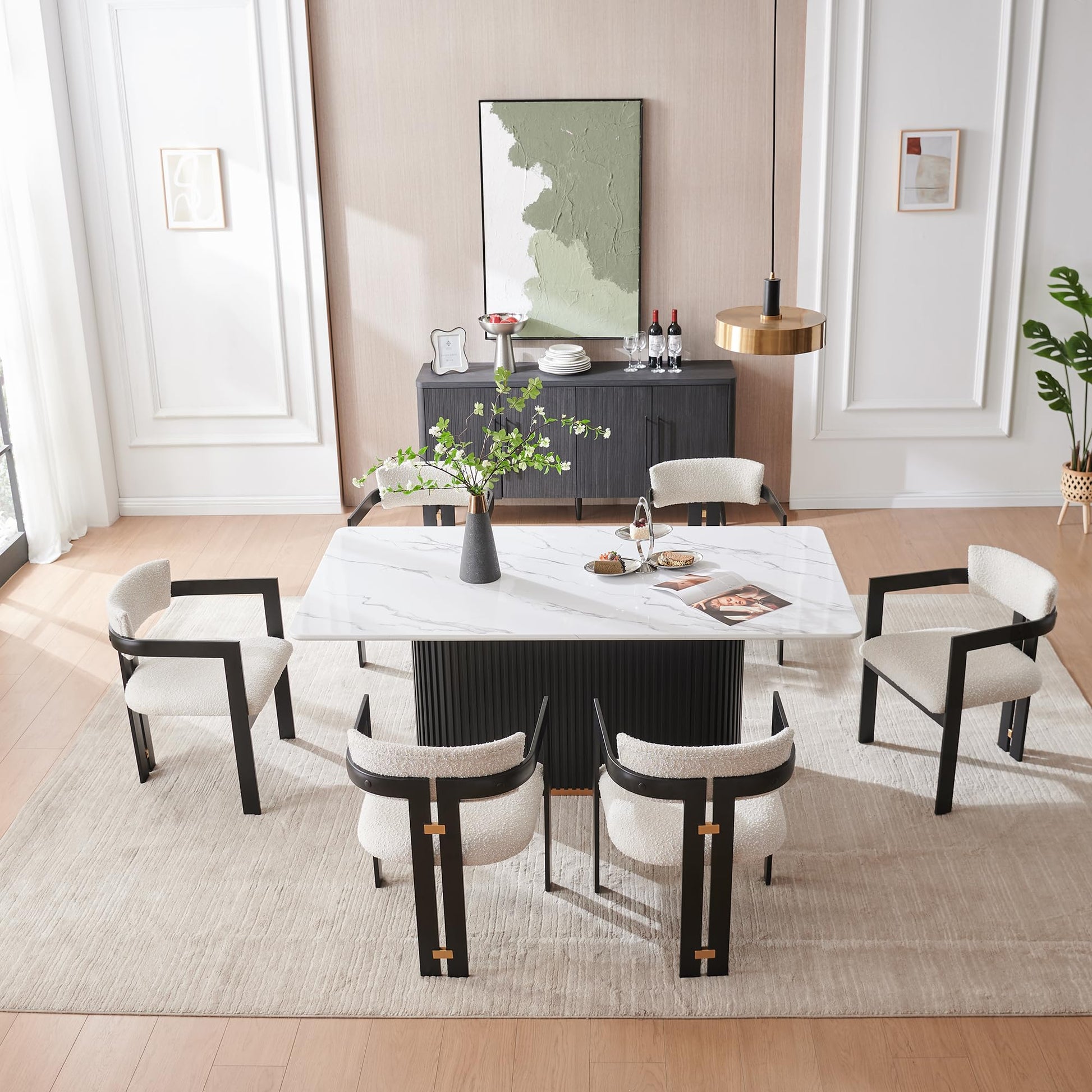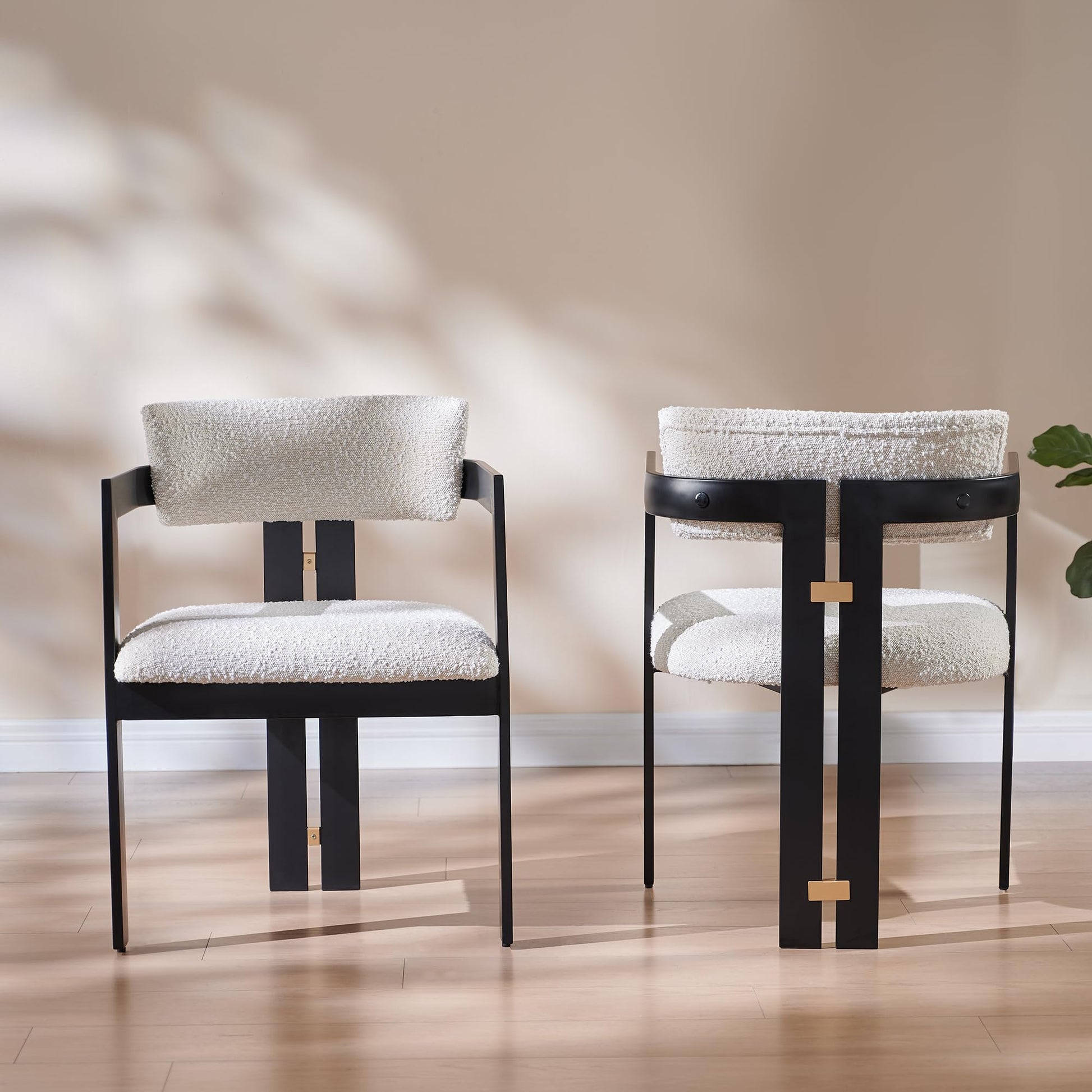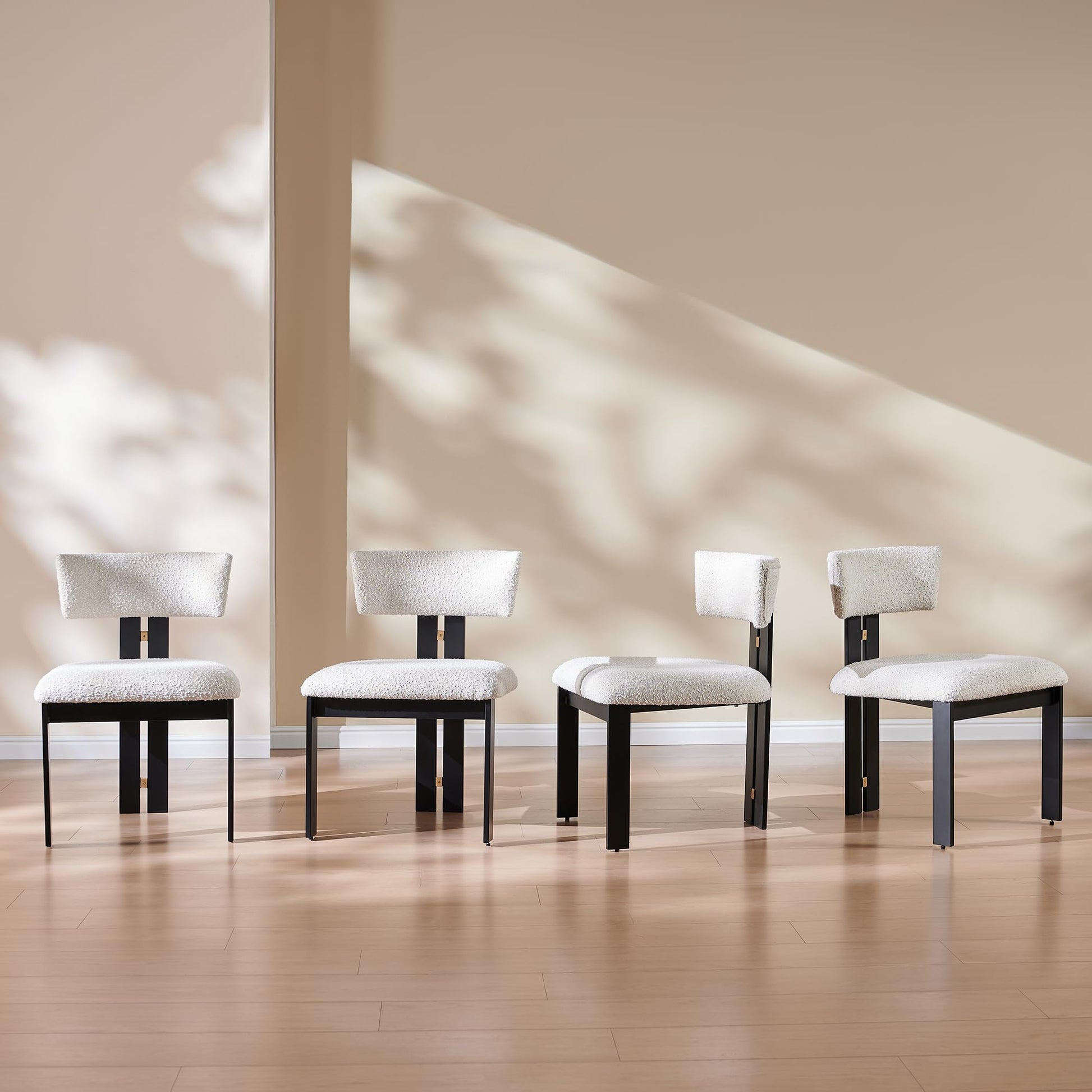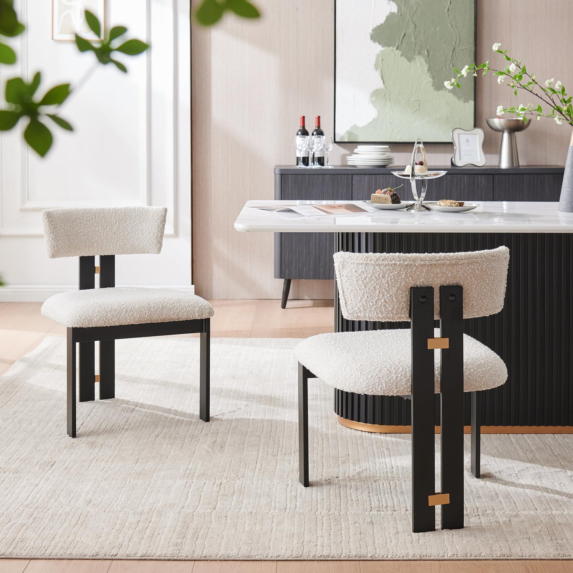 Morden Fort Boucle Dining Chair Set of 4, Upholstered Kitchen Chairs with Metal Frame & Round Back, Barrel Side Chair for Dining Room, Kitchen, Living Room, Apartments