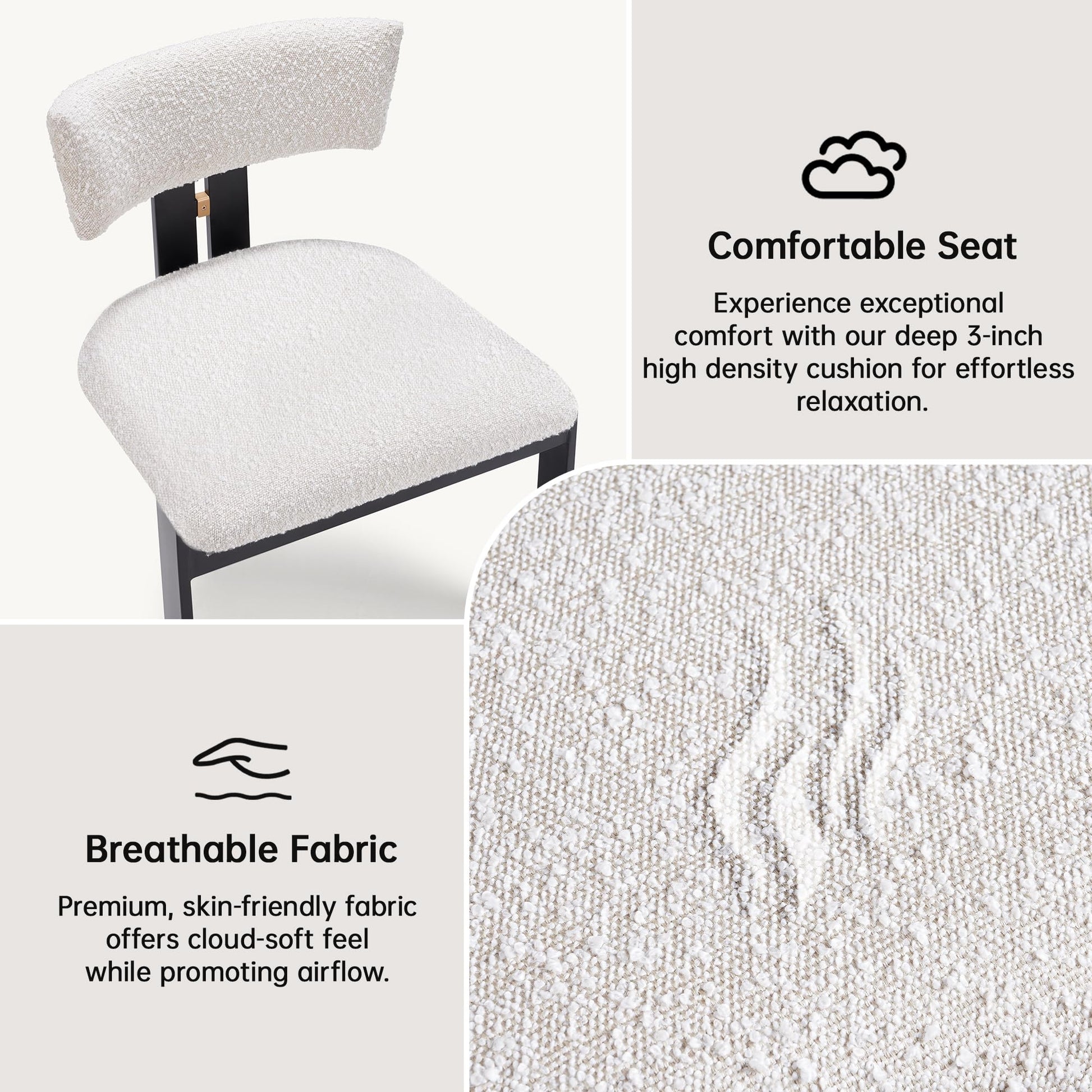 - Modern Minimalist Style: Clean lines and boucle upholstery give this accent chair a sleek, contemporary look that blends with mid-century décor; perfect as a slipper chair for bedroom, vanity or dining nook.