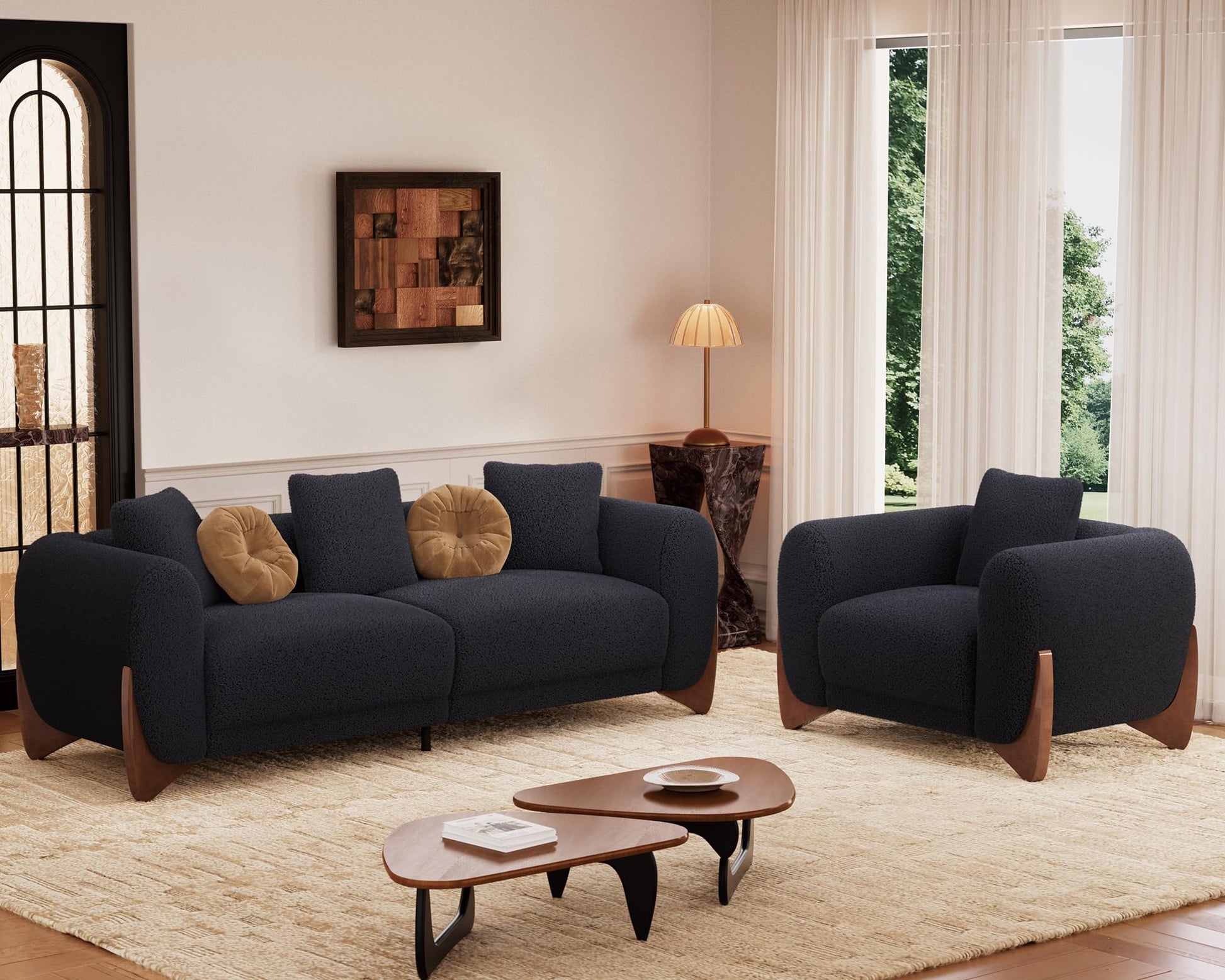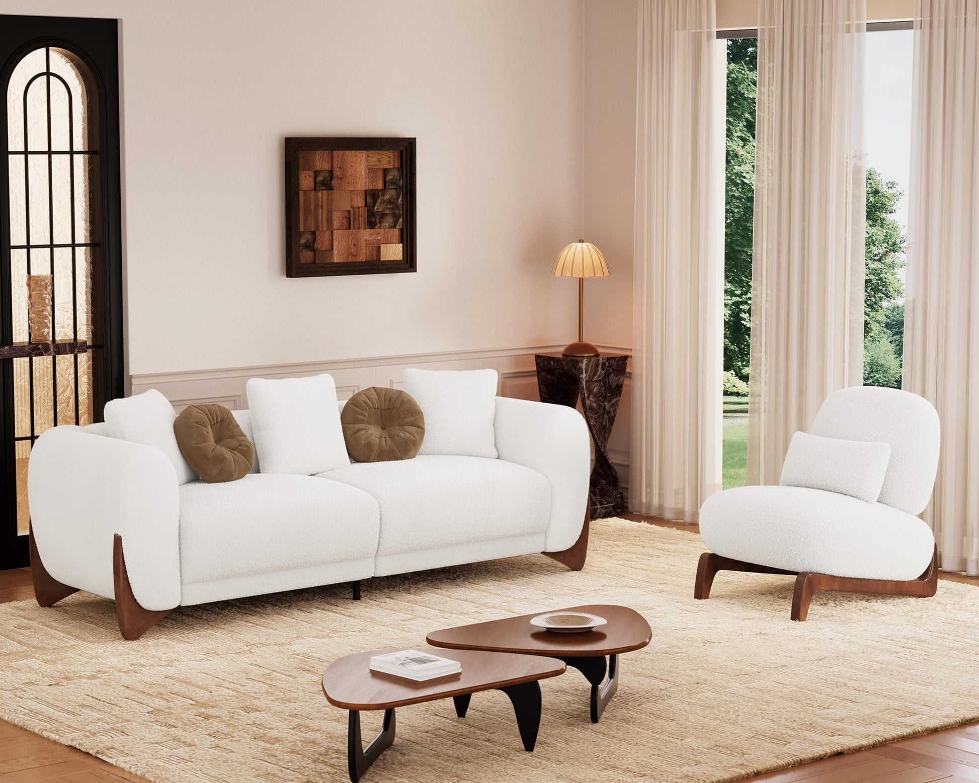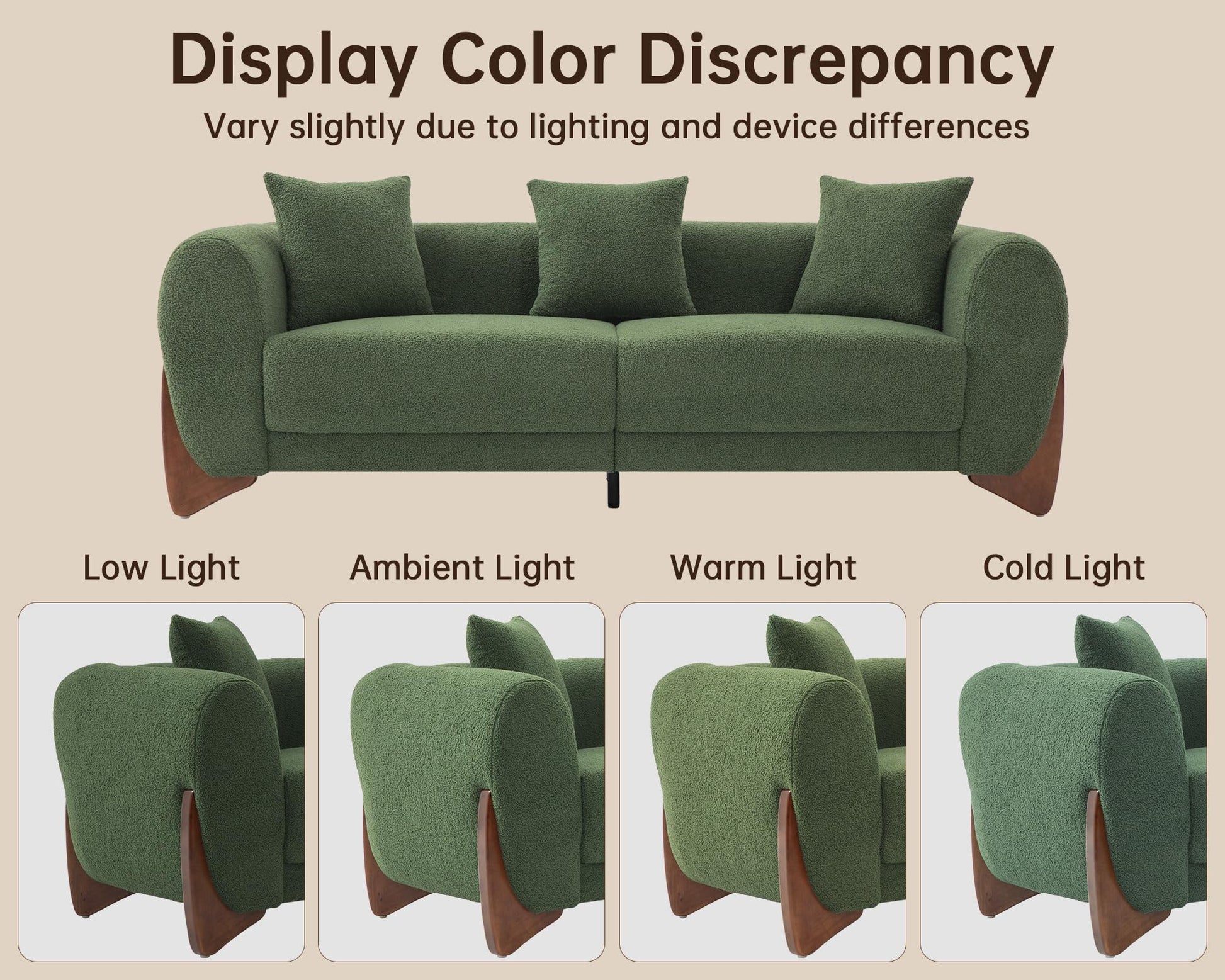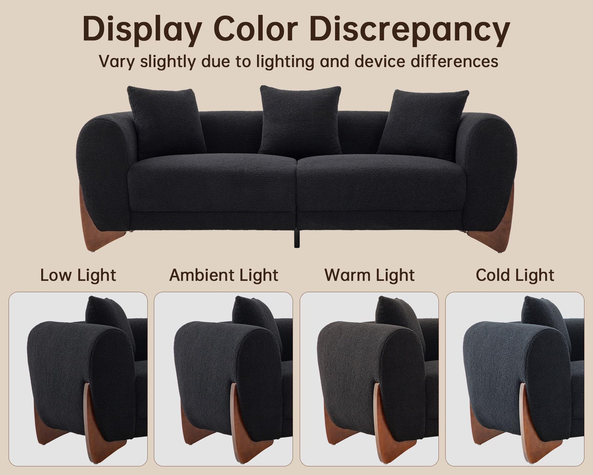 - 【Durable Construction for Long-Lasting Use】 Built to last, this 3-seater sofa features a robust wooden frame and legs for unwavering stability. The high-resilience foam maintains its shape, while the durable boucle fabric resists wear and tear. This sofa couch is designed to withstand daily use, ensuring your modern sofa remains stylish and functional for years.