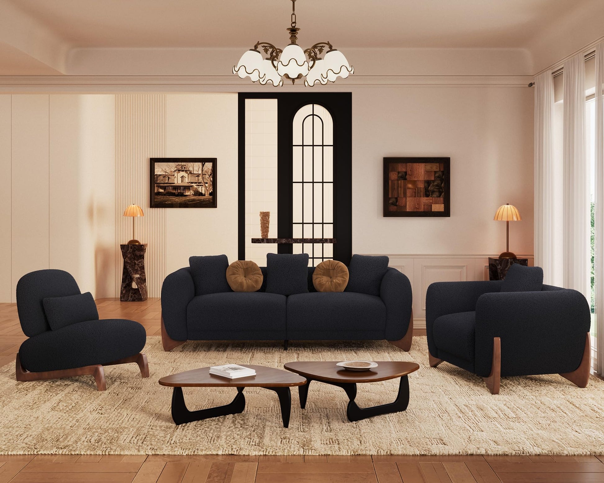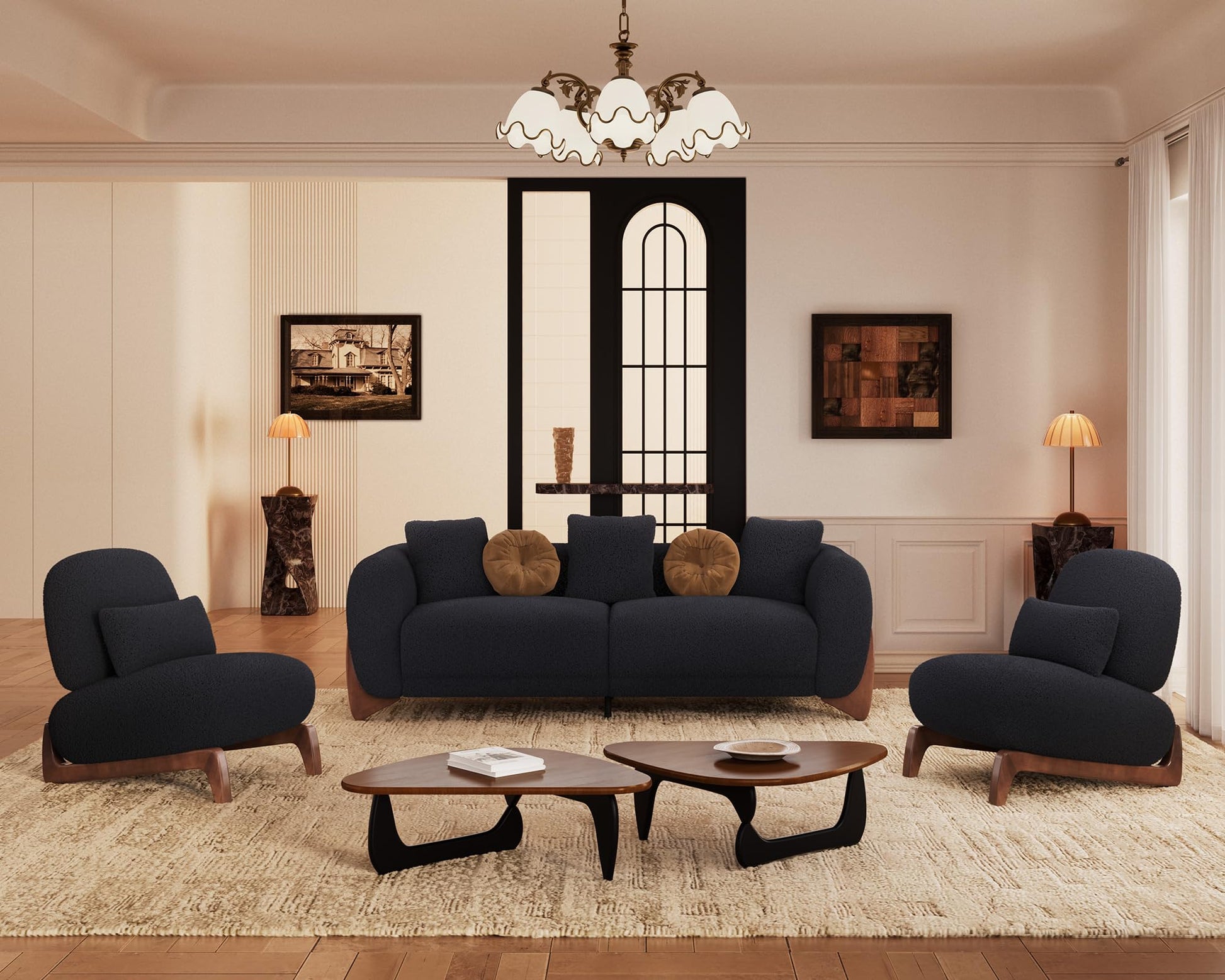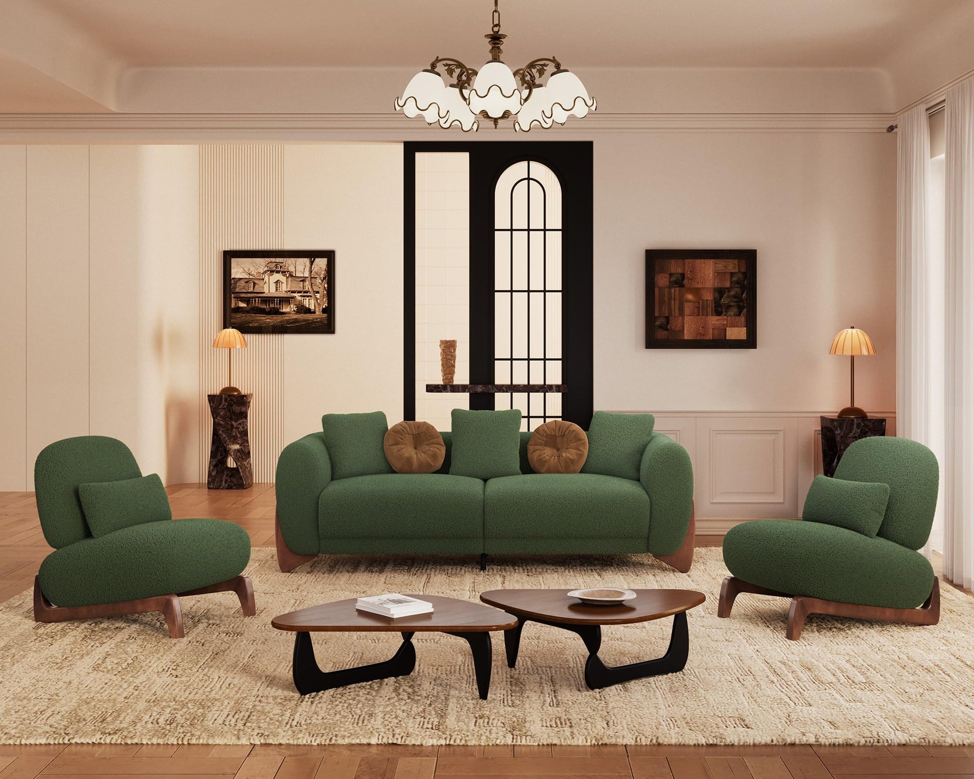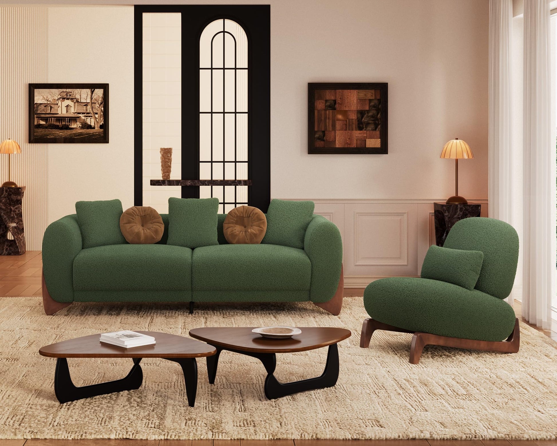 - 【Durable Construction for Long-Lasting Use】 Built to last, this 3-seater sofa features a robust wooden frame and legs for unwavering stability. The high-resilience foam maintains its shape, while the durable boucle fabric resists wear and tear. This sofa couch is designed to withstand daily use, ensuring your modern sofa remains stylish and functional for years.