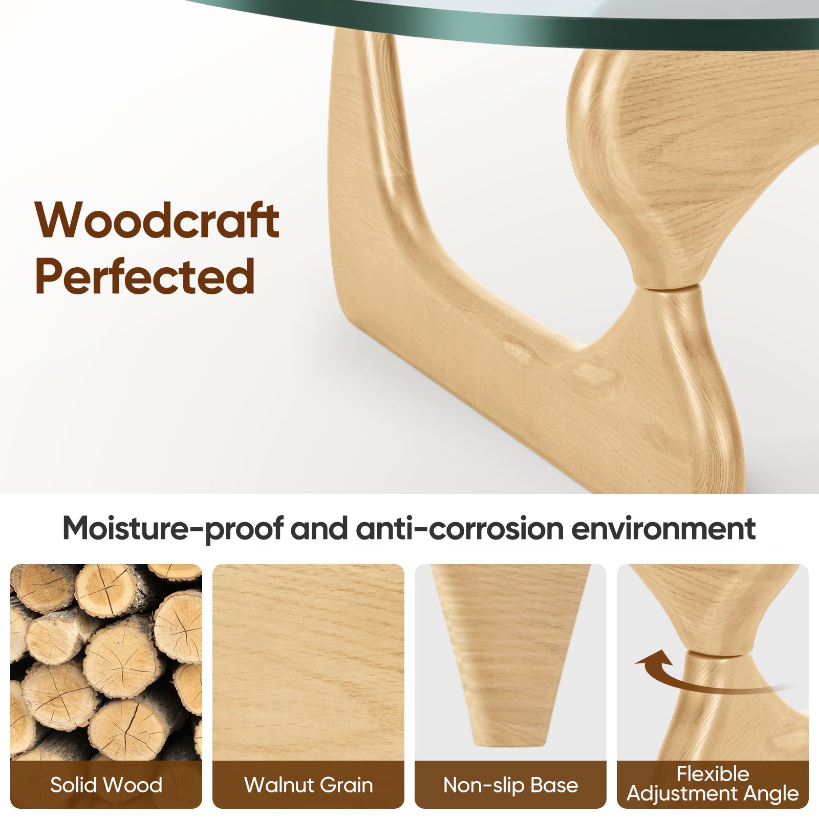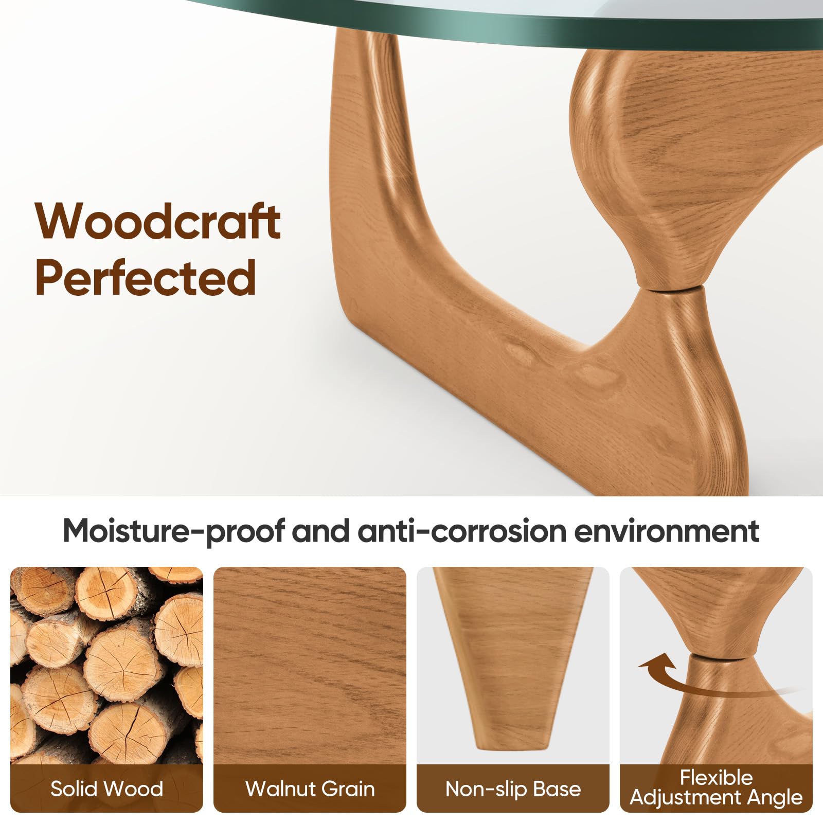 - Premium Glass & Wood Construction: A thick, clear tempered glass top is paired with a solid hardwood base for both elegance and strength. The glass surface is heat- and scratch-resistant and the interlocking wood frame provides sturdy support, ensuring durable everyday use.