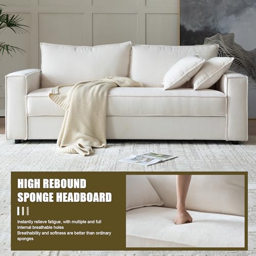PINJU Three Person Sofa with Wide Upholstered Chaise Lounge Sofa, Linen Fabric, Easy to Assemble, No Noise (Turquoise)