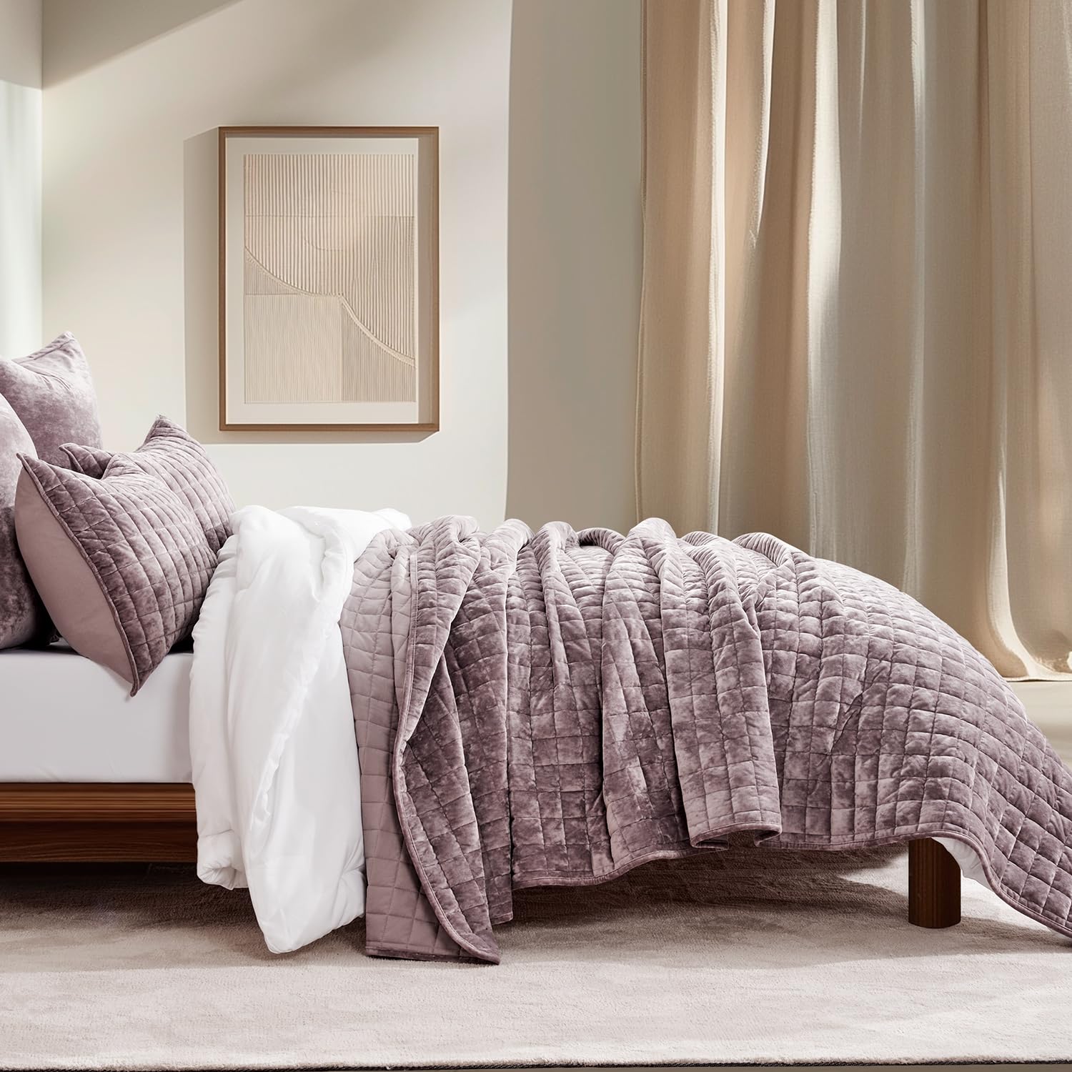 - EVER-STUNNING QUILT - RECYCO luxury velvet quilt sets present a sophisticated and chic look. With an ultra-plush soft texture, it creates a rich and inviting sheen that varies in shades of color depending on the angle and lighting. The classic channel stitch geometric pattern makes it an absolute must-have for adding a touch of elegance to any home decor.