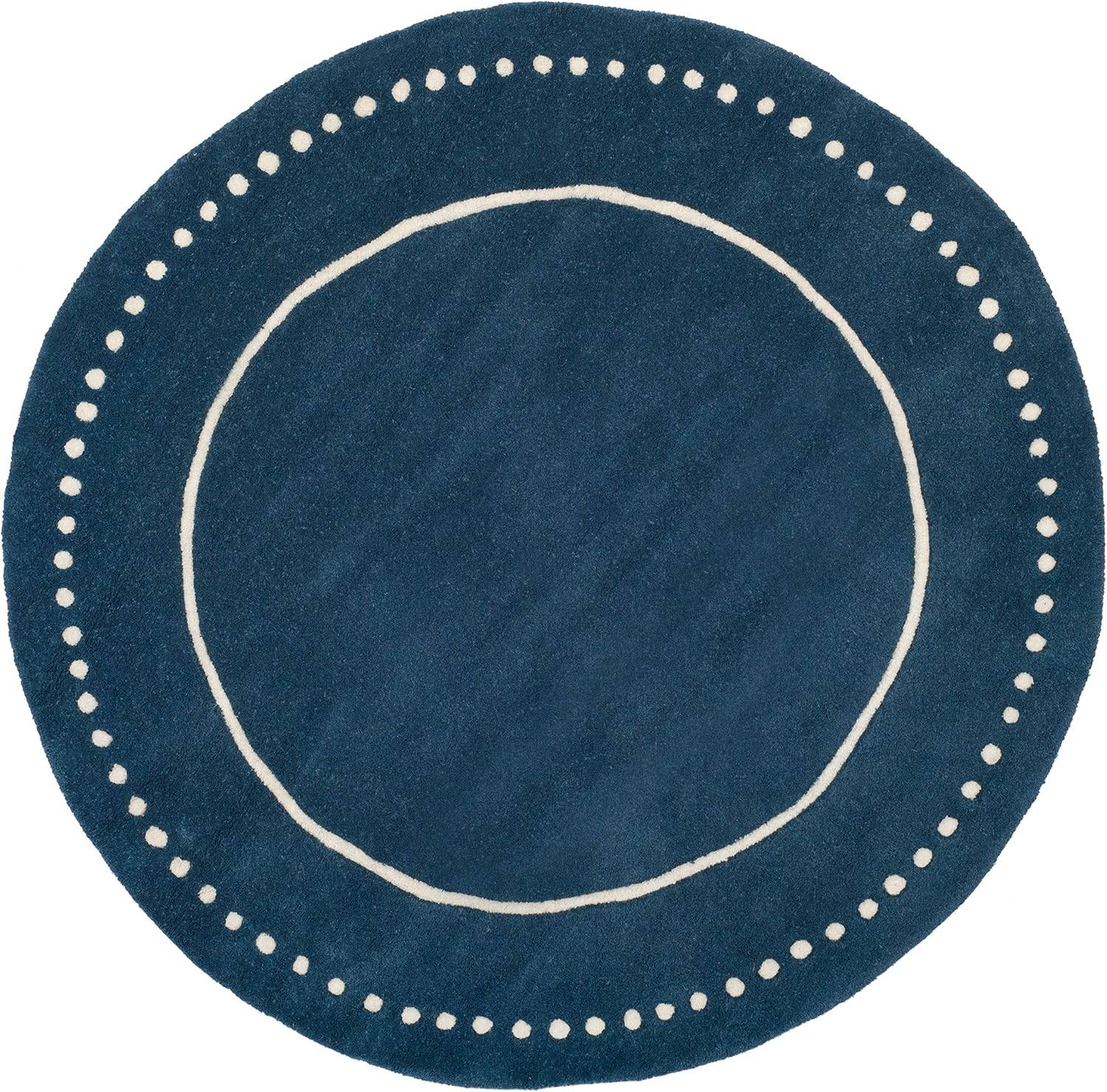 SAFAVIEH Bella Collection Area Rug - 5' Round, Black & Ivory, Handmade Dotted Border Wool, Ideal for High Traffic Areas in Living Room, Bedroom (BEL151E)